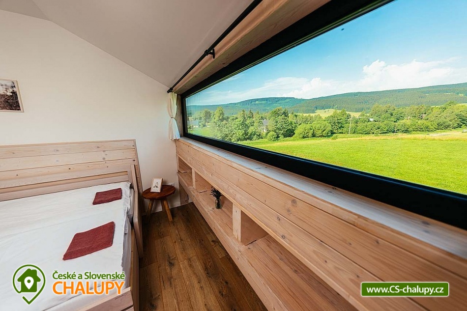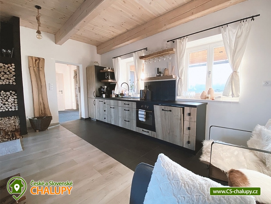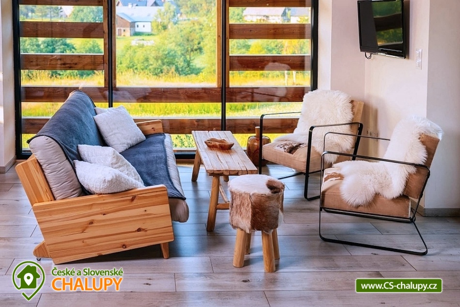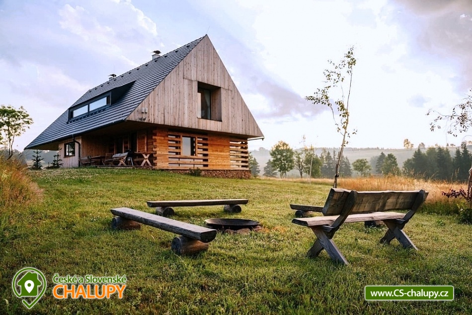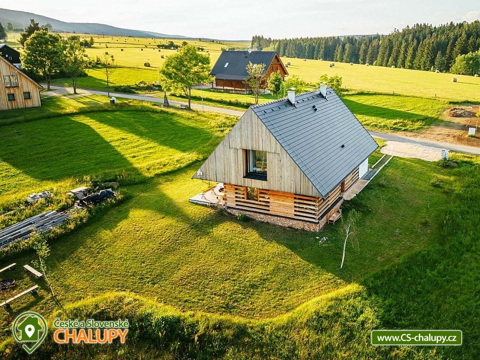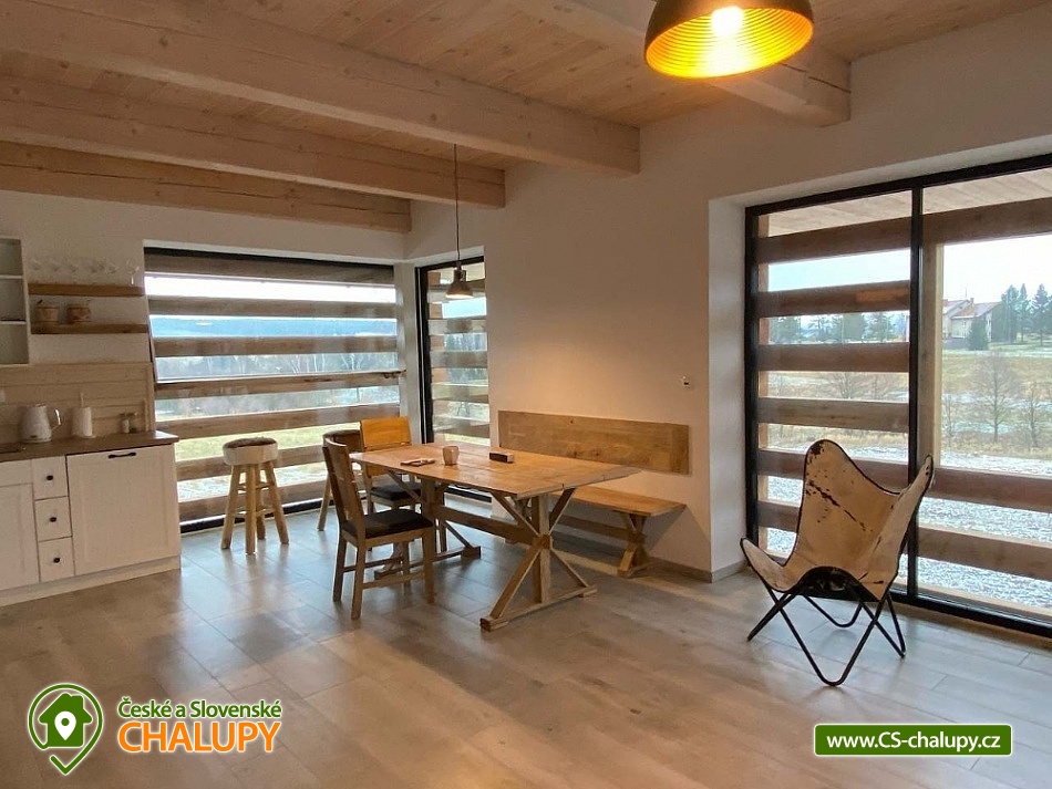 Stylová chalupa v CHKO Orlické hory nedaleko hory Šerlich a obcí Zdobnice a Deštné v Orlických horách. Chalupa u polské hranice je rájem pro každého milovníka přírody. Chalupa je rozdělena do 2 apartmánů, kdy každý apartmán má svůj samostatný vchod. Objekt je možné pronajmout 1 skupině klientů a obě části propojit spojovacími dveřmi, takže lze chalupu obsadit až 13-ti dospělými a 4-mi dětmi. Možný je i pronájem obou apartmánů samostatně. Apartmán 1 (Apartmán Deluxe) má 7 lůžek a 2 dětské přistýlky v podkroví, větší vstupní chodba a WC. Velká sednice s krbem a plně vybavenou kuchyní. V patře dvě ložnice s výhledem do krajiny, komfortní postele. Koupelna se sprchovým koutem, WC a bidetem a pračkou. Apartmán 2 (Rodinný Apartmán) má 6 lůžek a 2 dětské přistýlky v podkroví, větší vstupní chodba + WC. Velká sednice s krbem a plně vybavenou kuchyní. V patře dvě ložnice s výhledem do krajiny, komfortní postele. Koupelna se sprchovým koutem, WC a bidetem a pračka. V objektu je Wi-Fi internet, TV a satelitní programy. Interiér chalupy je koncipován v tradičním a osobitém stylu. Důraz je kladen na komfort a praktičnost - větší chodba, kde odložíte své lyže nebo kolo, poté vejdete do velké sednice, kde si připravíte něco dobrého k snědku, ohřejete se u krbových kamen, nebo si s rodinou či přáteli posedíte u dubového jídelního stolu. Klidová a spánková zóna je nahoře v patře, kde má každý apartmán koupelnu a dva pokoje s velikými okny s překrásným a luxusním výhledem do přírody. Všechny místnosti jsou světlé a útulné. Nejeden návštěvník nám řekl, že by zde chtěl bydlet, a to si myslíme že mluví za vše. To byl totiž náš cíl. Vytápění je podlahové v celém objektu (elektrické), k dispozici krb. Parkování hned u chalupy vedle udržované asfaltové silničky (pěší zóna). V zimě můžete lyžovat na přilehlých sjezdovkách všech kategorií. Běžkaři jistě využijí místní 5ti km osvětlený běžecký okruh. Od jara do podzimu zde objeví svůj ráj cyklisté, a to jak na horském kole, pro které je zde nepřeberné množství horských cest, stezek a umělých trailů, tak i silniční cyklisté na hladkých a nerozbitých asfaltových silnicích kde můžete často potkat i závodní běžkaře na kolečkových lyžích, kteří zde trénují prakticky celoročně.