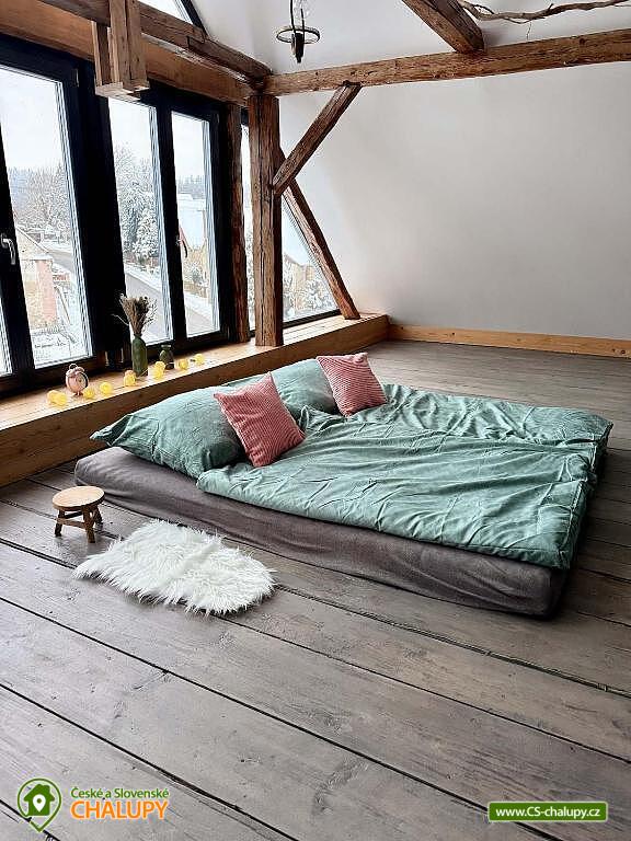 Chalupa Džbánsko se zahradou nabízí pohodlné zázemí pro víkendové pobyty, rodinné dovolené, oslavy, workshopy, svatby i rozlučky se svobodou. Chalupa s kapacitou až 16 osob v 6 ložnicích spojuje půvab historického stylu s moderním vybavením – nechybí útulné pokoje, prostorná kuchyně v italském stylu ani velký sál vhodný pro společenské akce, cvičení nebo přednášky. POPIS: Přízemí - kuchyň, obývací pokoj s rozkládacím gaučem (2 lůžka) a TV, ideální pro večerní posezení; Místnost s klavírem v historickém stylu, manželskou postelí a jedním jednolůžkem; Menší pokoj s palandou. Plně vybavená kuchyně v italském stylu s jídelním stolem, troubou, varnou deskou, myčkou, lednicí a veškerým potřebným nádobím. První patro: dvě ložnice – každá s manželskou postelí, jedna navíc s jednolůžkem. Velká společenská místnost vhodná pro oslavy, svatby, workshopy, taneční či jógové lekce. Prostor pojme až 40 osob a lze jej upravit podle potřeby (např. stoly, židle, jogamatky). Podkroví: otevřený prostor s dvěma dvojlůžky, ideální pro větší skupiny nebo rodiny s dětmi. Sociální zařízení - Koupelna s vanou a toaletou v přízemí, koupelna se sprchovým koutem a toaletou v 1. patře. Parkování u objektu. Chalupa leží v klidné krajině Džbánska. Okolí tvoří lesy a mírné kopečky, ideální pro procházky, výlety na kole, houbaření nebo sběr borůvek. Pokud máte rádi koně, v nedalekém okolí je možné domluvit projížďky nebo krátký jezdecký výcvik i pro začátečníky. V létě se můžete osvěžit na několika přírodních koupalištích v okolí – oblíbené je koupaliště u Rakovníka (asi 15 minut jízdy), dále koupaliště Krásný Dvůr (asi 20 minut) u krásného zámeckého parku nebo koupaliště v Jesenici (asi 30 minut). Pro menší děti je možné přivézt i nafukovací bazének – voda je v domě k dispozici bez omezení. Na koupání a relax se také hodí městské koupaliště v Žatci nebo přírodní areál Klůček, kde nechybí občerstvení a klidné prostředí. Dále: Zříceniny Džbán a Pravda. Za trochu delší cestu určitě stojí hrad Křivoklát, Karlštejn, Koněpruské jeskyně nebo Karlovy Vary, kde si můžete projít kolonádu a ochutnat lázeňské oplatky. V zimě můžete vyrazit na Klínovec nebo Boží Dar (asi 40 km), případně si jen užít sáňkování a běžkování na okolních loukách a lesních cestách. Těšíme se na Vás u nás.