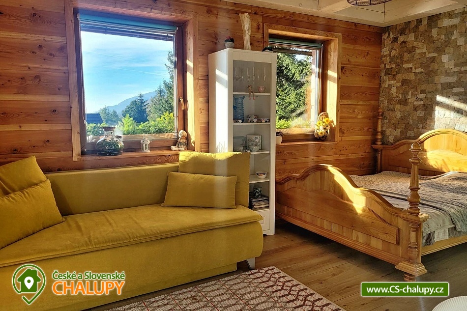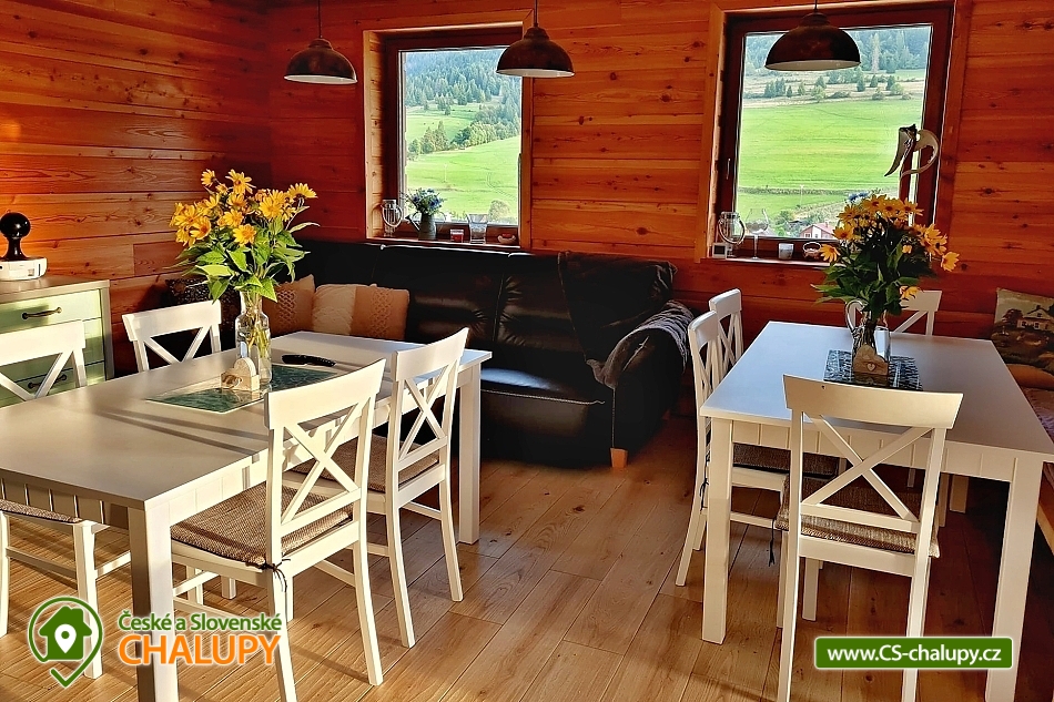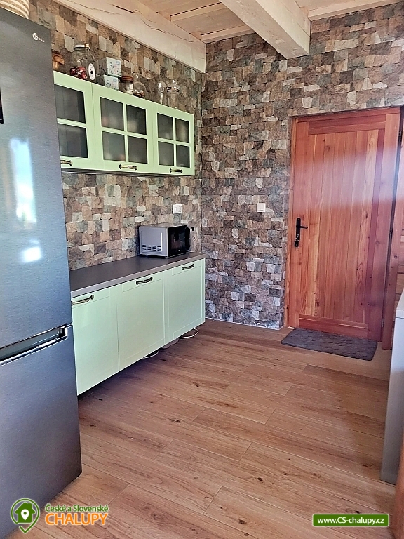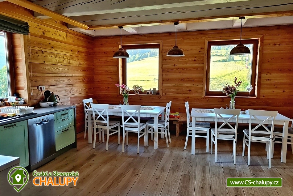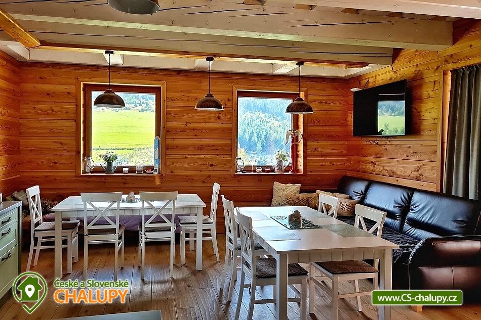 Chalupa Jánošíkove Diery s přímým výhledem na Velký a Malý Rozsutec. Navštivte Jánošíkovy Diery vzdálené 1 km od chalupy, nejkrásnější vrchy Velký Kriváň, Chleb, Velký a Malý Rozsutec, které vám poskytnou úžasný turistický zážitek. POPIS: Chalupa má kapacitu až 13 osob + 2 přistýlky + rozkládací dětská postýlka. V přízemí se nachází velká, plně vybavená kuchyň s lednicí a mrazákem, myčkou nádobí, elektrickou troubou, elektrickou varnou deskou, toustovačem, mikrovlnnou troubou, rychlovarnou konvicí, kávovarem, mixérem, váhou. Kuchyň je součástí obývacího pokoje ve které se nachází velký rozkládací rohový gauč, dva jídelní stoly a k dispozici je i dětská židle. Na patře jsou 3 pokoje: Pokoj Miška (manželská postel + 2 jednolůžkové postele, samostatná koupelna s wc, umyvadlem a sprchovým koutem). Pokoj Maťo (manželská postel + 2 jednolůžkové postele, samostatná koupelna s wc, umyvadlem a sprchovým koutem). Pokoj Vojo (manželská postel + přistýlka pro dítě, samostatná koupelna s wc, umyvadlem a sprchovým koutem). V přízemí samostatný apartmán Evka (manželská postel + rozkládací gauč - 2 lůžka. Samostatná kuchyně s rychlovarnou konvicí, kávovarem, elektrickou varnou deskou, lednicí, stolem pro 4 osoby, samostatný vchod na terasu s krásným výhledem na Rozsutce. Koupelna s wc, dvěma umyvadly a prostorným sprchovým koutem). U schodiště je dětský koutek s kuchyňkou, stolkem, hračkami, společenskými hrami a knížkami. Na terase jsou dvě lavičky se stolky na kávičku. K dispozici je wifi, TV, kotlík, u chalupy ohniště, pískoviště i sklep na uskladnění kol a lyží. V technické místnosti máme pračku se sušičkou, žehlící prkno se žehličkou, které umíme po dohodě s klientem poskytnout. V okolí: Děti se zajisté potěší výletu do Mini Zoo Terchová, do Lanového parku Dino Adventure a Adventure golf pro malé i velké v Zázrivé. Ideální místo pro děti je Pohádkový les v Nezbudské Lúčce, který je dlouhý cca 1km. V areálu je krásný výhled na hrad Strečno. Zajímavá je také noční prohlídka hradu Strečno nebo splav na raftech. Zimu si užijete lyžovačkou ve Vrátné. V tomto středisku se nacházejí tři lokality: Paseky, Polední Gruň a Chleb. Můžete navštívit relaxační centrum Terchovec, AquaRelax v Dolním Kubíně vhodný ke koupání v létě i zimě, Oravský hrad a Hrad Strečno. Těšíme se na Vás u nás.