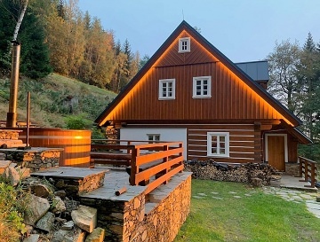 Roubená wellness chalupa Kajzrovka leží na samotě na svazích Lysé hory v Rokytnici nad Jizerou - komfortně vybavená roubenka s finskou saunou, vyhřívaným koupacím sudem a vlastní vinotékou pro Vaší pohodovou dovolenou, teambuilding nebo rodinné akce. Lyžařská sjezdová trať (ski areál Lysá hora) sousedí přímo s chalupou. Chalupa k pronajmutí poskytuje ubytování pro až 12 osob v 5 ložnicích. POPIS CHALUPY: Přízemí - vstupní chodba, úschovna lyžařského vybavení, chodba, technická místnost - sušák na obuv, obývací místnost + plně vybavená kuchyň (včetně myčky a kávovaru) a kachlová kamna s ležením, pokoj - ložnice, spíž, WC, koupelna - sprcha, sauna, pračka, sušička. Patro chalupy: 4x pokoj - ložnice, koupelna - vana, WC. Sociální zařízení: Přízemí - samostatné WC, bidet, umyvadlo. Koupelna - sprchový kout, umyvadlo, finská sauna. Patro: koupelna - vana, umyvadlo, WC. Vytápění: V celém objektu je podlahové vytápění. V obývací místnosti jsou v případě potřeby kachlová kamna na dřevo. K dispozici vybavení: 4x TV a SAT, WIFI internet, Wellness - Vyhřívaný koupací sud, Finská sauna, vinotéka, terasa s výhledem a posezením, gril, pro děti pískoviště a trampolína. Doprava k chalupě a parkování: Léto - k objektu se lze dostat po zpevněné komunikaci. Povolení k vjezdu již zahrnuto v ceně. Zima: přístup možný pouze pěšky, na lyžích, pásovými vozidly!!! Parkoviště vzdálené 1,5 km od objektu. Parkování zajištěno na soukromém parkovišti 250 m od nástupu lanové dráhy Horní Domky. V zimním období je doprava zahrnuta v ceně pobytu. Cena je u nás vždy konečná s kompletním servisem, nic se již nedoplácí. Ideální výchozí místo pro zimní i letní turistiku, samota, možnost zajištění osobní dopravy, možnost zajištění výletů, dopravy, catering, nápoje... V okolí cyklistika, sjezdové koloběžky, bikepark. Lyžování - na lyžích z chalupy přímo na sjezdovku, běžkařské trasy v okolí. Těšíme se na Vás u nás.