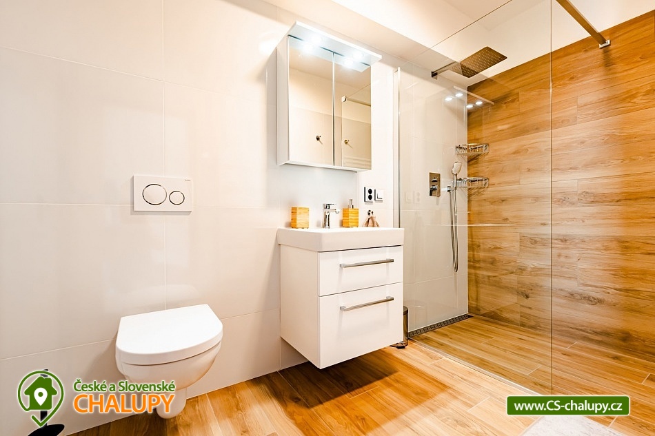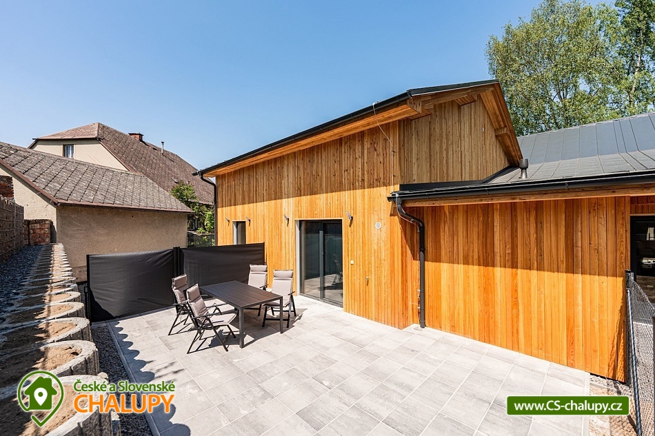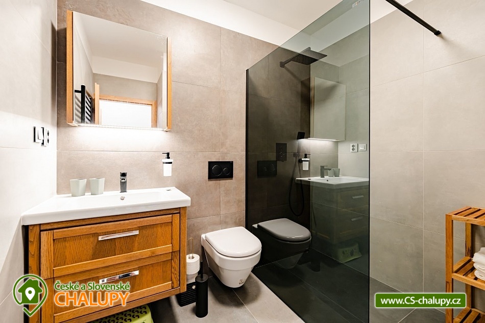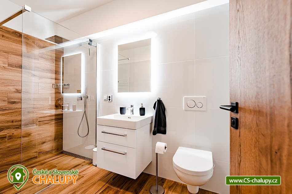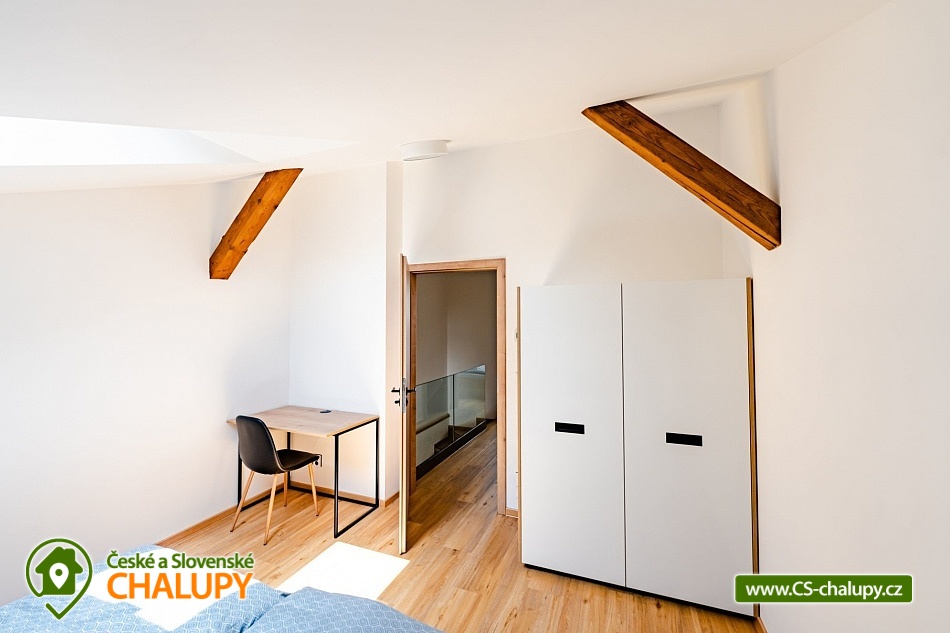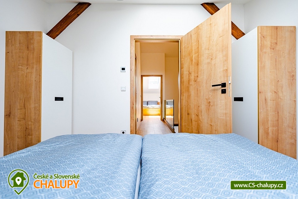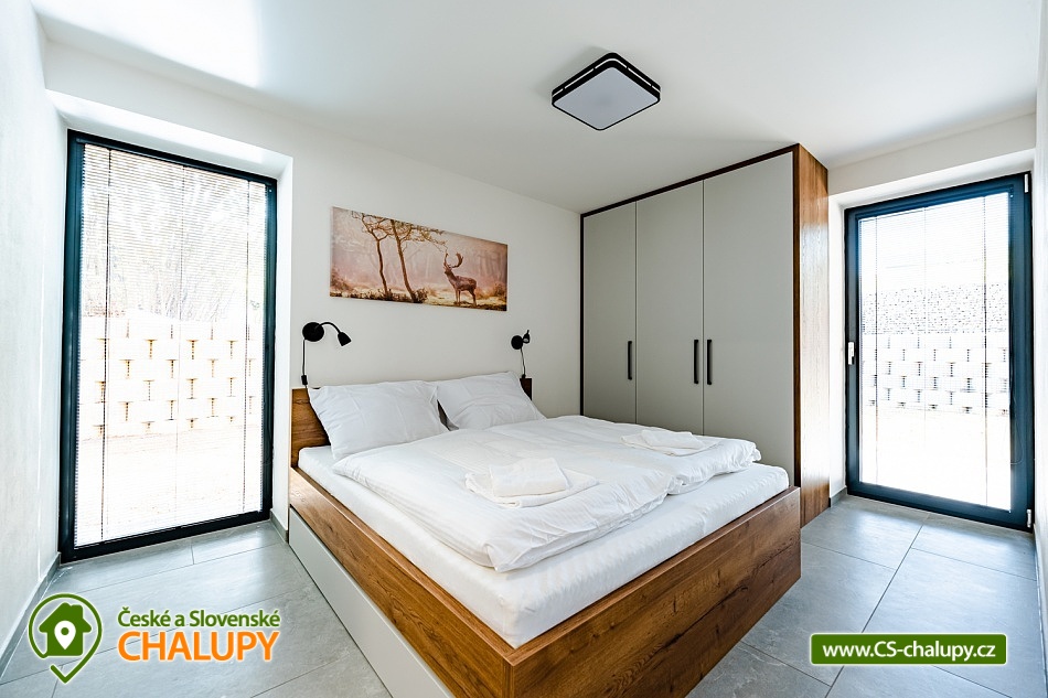 Luxusní chalupa Králický Sněžník nedaleko Dolní Moravy - Nabízíme moderní rodinné ubytování v chalupě se 3-mi apartmány (každý AP pro až 8 osob) nacházející se v podhůří Králického Sněžníku a v blízkosti vyhledávaného horského lyžařského střediska Dolní Morava. Jedná se o 3 samostatné a plně vybavené apartmány s vlastními vchody a předzahrádkami, které si můžete pronajmout samostatně, popř. celou chalupu jako celek. Každý apartmán má vlastní parkovací stání. Kromě toho máme také společnou kolárnu s lyžárnou. Apartmány je možné rezervovat samostatně v kapacitě 4 dospělí a 4 děti, případně kombinovat více apartmánů. Celková kapacita všech tří apartmánů je 24 lůžek (12x dospělí a 12 dětí). Každý apartmán má dvě samostatné ložnice vybaveny vždy po manželské posteli a přistýlkách (4x dospělí a 4x děti). V každém apartmánu je k dispozici minimálně jedna koupelna a dvě WC. Koupelny jsou vybaveny walk - in sprchovým koutem, samozřejmostí je fén. Objekt je vytápěný moderním podlahovým systémem na elektřinu. Vybavení apartmánů tvoří: kuchyňská linka s vestavnými spotřebiči (chladnička s mrazákem, velká myčka nádobí, elektrická trouba, indukční varná deska, mikrovlnka, digestoř), dalšími spotřebiče (kávovar, rychlovarná konvice, toustovač, multifunkční mixér). Veškerým vnitřním vybavením: nádobí, hrnce, příbory, pánvičky, dětské nádobí atd. K dispozici je WiFi pokrytí v celém apartmánu, smart TV s online vysíláním TV. Technická místnost je vybavena pračkou a sušičkou. Město Králíky je plně sociálně vybavené s centrem v podobě krásného náměstí v jehož okolí najdete pekárny, kavárny, restaurace a mnoho obchodů. Apartmány mají plně vybavenou kuchyň, kde si můžete připravit jídlo dle vlastních preferencí. Lokalita Kralického Sněžníku je známá velkým množstvím skiareálů v dojezdu kolem 10km. Např. Ski areál Větrný vrch, Dolní Morava, Králičák Kunčice, České Petrovice, Čenkovice, Proskil Branná, Ostružná, Přemyslov, Petříkov, Ramzová a Červenohorské sedlo. Dále upravenými běžeckými trasami a velkým množstvím cyklostezek.