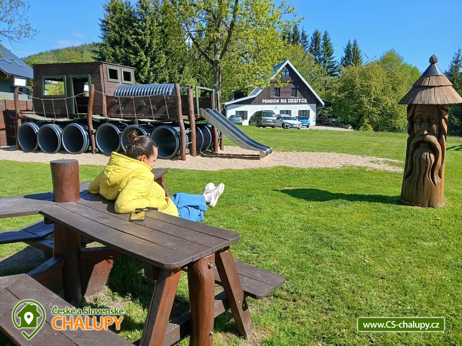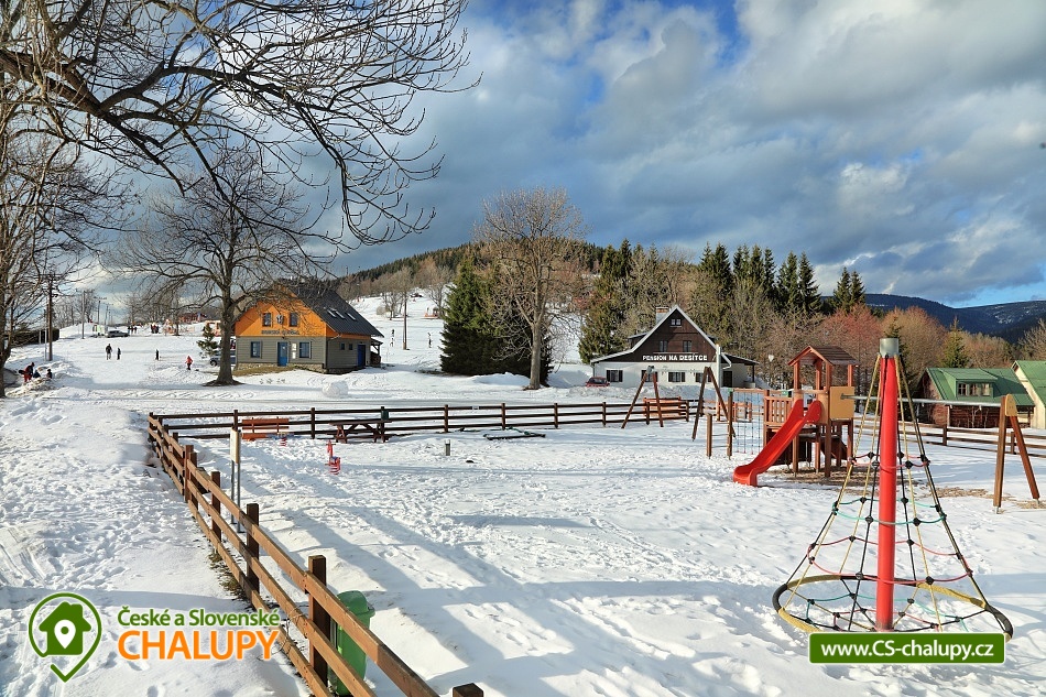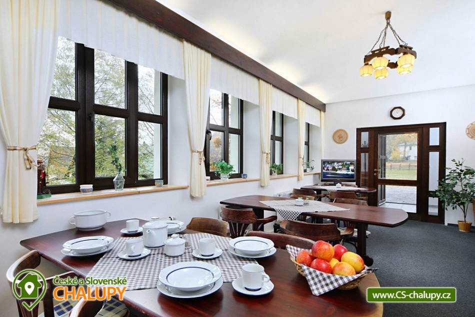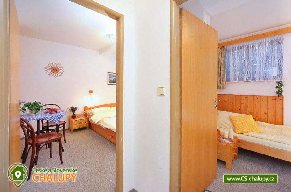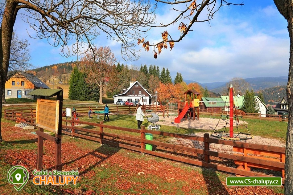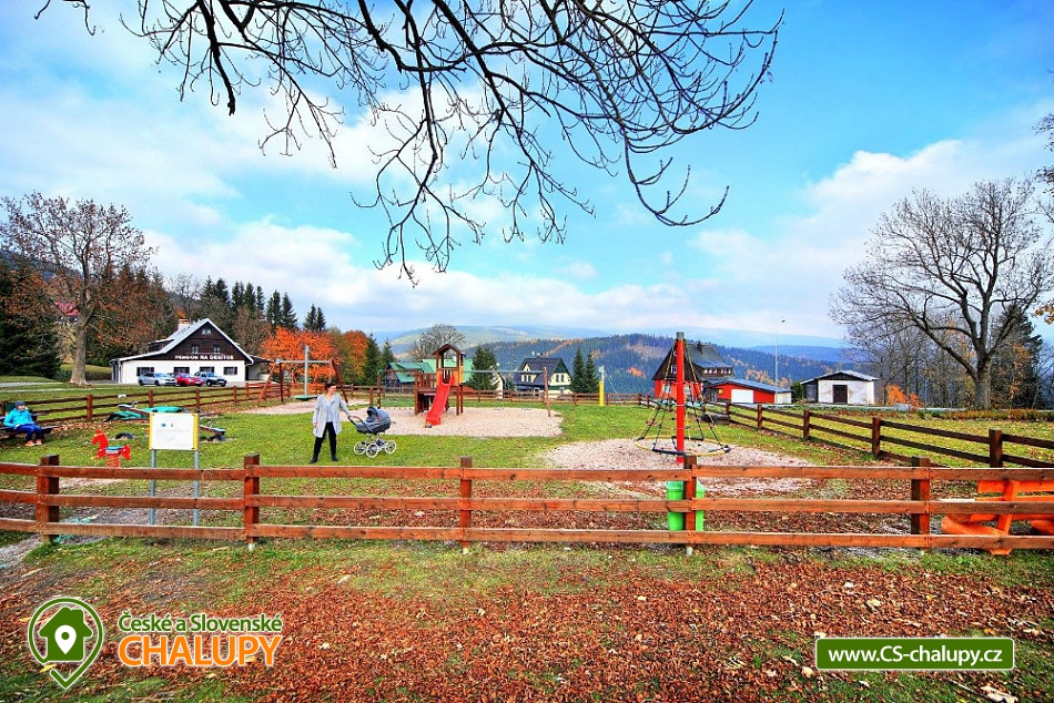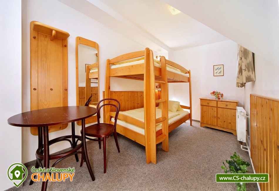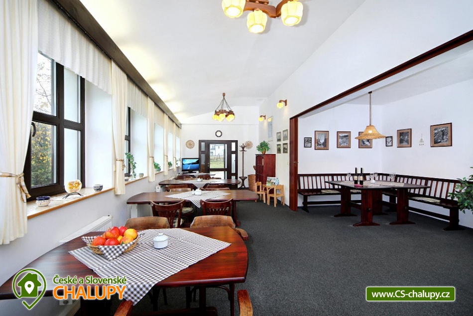 Chalupa Krkonoše má naprosto výjimečnou polohu, nachází se v samém centru malebné krkonošské obce Strážné, několik desítek metrů od obou sjezdovek a přesto je na klidném místě jen pár kroků od Krkonošského národního parku. Dětské hřiště se nachází přímo před objektem. Chalupa tak nabízí ideální podmínky jak pro rodinnou dovolenou, prázdniny s přáteli, tak pro firemní akce, školení, školy v přírodě aj. Velmi pohodlný a útulný interiér zajistí, že se budete v domě cítit jako doma. V Chalupě lze ubytovat až 27 osob v celkem 11 pokojích s vlastním sociálním zařízením. V přízemí chalupy je VIP pokoj s vlastním vstupem a obývákem, disponuje 2 oddělenými lůžky, dále rodinný apartmán až pro 5 osob, má 2 ložnice (manželské lůžko + patrová postel + jednolůžko) a dvoulůžkový pokoj s manželskou postelí. V prvním patře je dvoulůžkový pokoj s patrovou postelí, třílůžkový (manželská postel + jednolůžko), rodinný apartmán se 2 ložnicemi pro 4 osoby (manželské lůžko + 2 jednolůžka), rodinný apartmán se 2 ložnicemi pro 4 osoby (manželské lůžko + jednolůžko + dětské lůžko), dvoulůžkový s manželskou postelí a jednolůžkový pokoj. Ve druhém patře je 2x dvoulůžkový pokoj s oddělenými lůžky. Jídelna s televizí v přízemí poskytne prostor pro společné stolování, stejně tak místnost vhodnou pro večerní posezení, přednášku, hru i jinou zábavu. Kuchyň je nadstandardně vybavena troubou, myčkou na nádobí, mikrovlnou troubou, rychlovarnou konvicí, lednicí s mrazákem, pračkou a veškerým potřebným inventářem. Přízemí objektu je také vybaveno stylovou lyžárnou. Wifi připojení je zdarma. Obec Strážné je díky své poloze ideálním místem pro cykloturistiku i pěší turistiku. V Krkonoších jsou k dispozici cyklotrasy různých stupňů obtížnosti. Přes Strážné vede cyklotrasa Správy KRNAP "Krkonošská diagonála" dlouhá 69 km. Pro pohodlné přiblížení na konkrétní místa můžete využít Krkonošské cyklobusy. Pro návštěvníky, kteří dávají přednost pěší turistice je v Krkonoších připraveno množství turistických tras různé náročnosti a délky. Některé trasy jsou vhodné i pro vozíčkáře či pro výlety s kočárkem. Pěšky nebo na kole se pohodlně dostanete i do Špindlerova Mlýna. Rekreační středisko Strážné nabízí též přírodní cvičný horolezecký terén Hnědé skály, se stupni obtížnosti II - VII. Připraveno osvěžit Vás v horkém letním dni je množství restauračních zařízení. V blízkém Vrchlabí se nalézá koupaliště („Vejsplachy“) či letiště, odkud můžete vystoupat na nádherný letecký výlet nad hřebeny Krkonoš. Sportovní areál ve Strážném nabízí možnost pronajmutí tenisových kurtů nebo hřiště na malou kopanou, včetně zapůjčení potřebného vybavení.