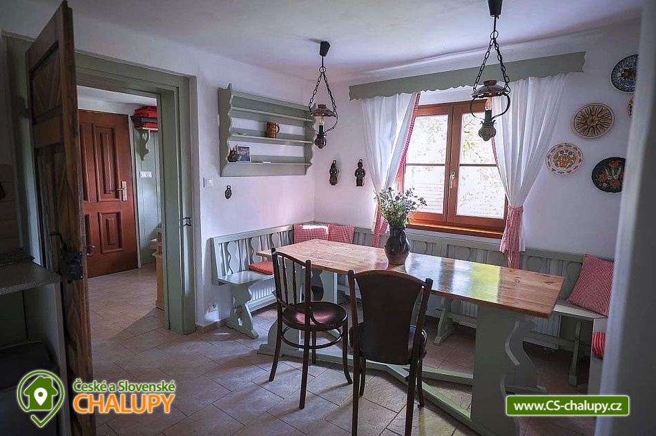 Chalupa se nachází v lokalitě Lázeňského trojúhelníku v Karlovarském kraji vymezená třemi lázeňskými městy - Karlovy Vary, Mariánské Lázně a Františkovy Lázně. Poloha nedaleko Jesenické přehrady v obci Salajna - Dolní Žandov. Lokalita je uznávaná pro svoji architekturu hrázděného zdiva, která je typická v tomto kraji. Chalupa k pronajmutí poskytuje ubytování pro až 6 osob ve 2 ložnicích. Chalupa je jednopodlažní průchozí budova. V přední části je zastřešená terasa s výhledem do kraje. V přední části je terasa, chodbička, první WC s umyvadlem. Následuje kuchyň s posezením, dále společenská místnost s televizí a krbem, za příčkou se nachází dvoulůžko. Následuje ložnice se čtyřmi lůžky, koupelna s WC a sprchovým koutem a dveře ven. Sociální zařízení: 2x WC (v přední a zadní části chalupy) a sprchový kout. Vytápění chalupy: Elektrokotel a krb s teplovodní výměníkem. Parkování přímo u objektu. U chalupy je zastřešená terasa s posezením, venkovní ohniště a gril. Okolí je ideální pro cykloturistiku, turistiku, poznávací výlety, houbaření, golf, koupání na blízké přehradě a vodáctví na řece Ohře. Blízké okolí chalupy je vhodné pro příjemné procházky v přírodě. Obec Salajna je zajímavá díky dochování typických hrázděných statků, které tvořily uzavřený dvorec. Obec Salajna byla prohlášena za vesnickou památkovou zónu. Ve vsi je možné domluvit vyjížďky na koních. památky v okolí: zámek Kynžvart, klášter premonstrátů Teplá, hrad a zámek Bečov, hrad Loket, Chlum sv. Maří, vesnická památková rezervace Doubrava, krásné historické město Cheb se známým Špalíčkem, hrad Seebert, hrad Vildštejn a památková rezervace Nový Drahov. Dále možnost koupání v nedaleké vodní nádrži Jesenice (5 km), kde je několik pláží (kempy Václav, Dřenice, Karel nebo Rybářská bašta). Jesenice patří každoročně mezi nejčistší vodní plochy v ČR. Těšíme se na Vás u nás.