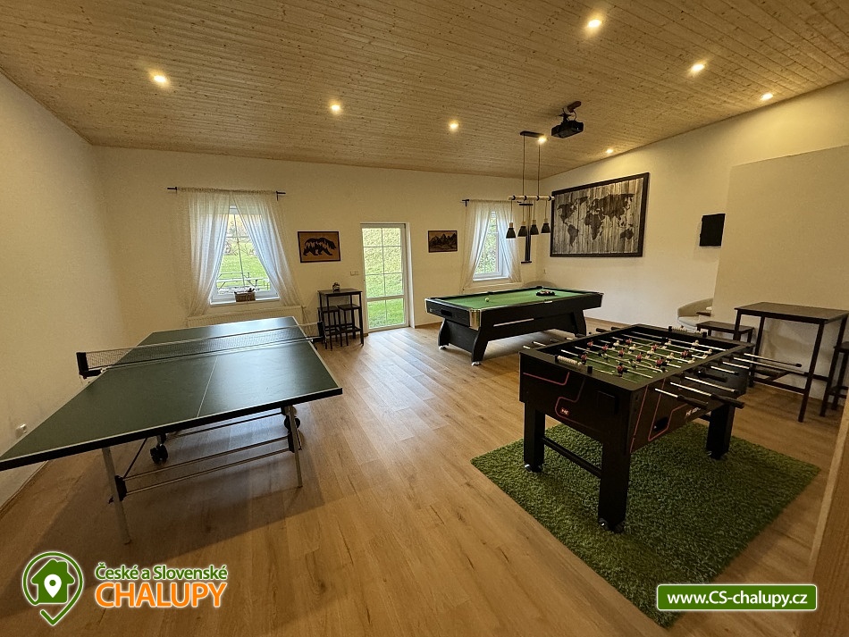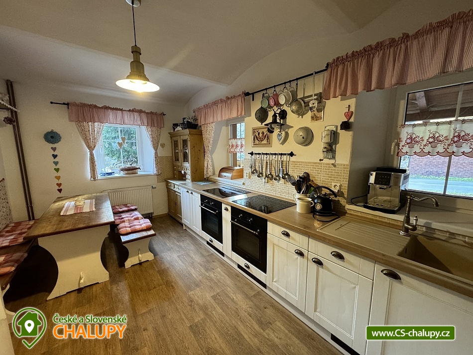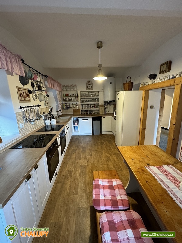 Chalupa v CHKO Krkonoše u Luisina údolí v malém horském středisku Dolní Dvůr u obce Strážné a Hořejšího Vrchlabí. Vzhledem ke své poloze a svému okolí je chalupa ideální pro rodinnou dovolenou s dětmi nebo pro větší skupiny osob. Chalupa je v blízkosti centra obce s výbornou dostupností a parkováním přímo před objektem pro až 10 aut. Jedná se o velmi klidnou lokalitu v těsné blízkosti areálu Family. Ubytovací kapacita chalupy je 24 - 33 osob v 8 - 10 pokojích, které se nacházejí v patře a jsou vybaveny stylovým nábytkem. Celkem je zde 8 pokojů pro 24 osob. Pokoje jsou 1x pětilůžkový, 2x čtyřlůžkový, 1x třílůžkový a 4x dvoulůžkový. Pro větší skupiny můžeme poskytnout ubytování i v podkroví, tj. pro dalších 9 osob. Po domluvě Vám rádi zapůjčíme dětskou postýlku a dětskou vaničku. Nové sociální zařízení: 2X WC pro pány a 2X WC pro dámy, 2X sprcha pro pány a 2x sprcha pro dámy - to vše se nachází v přízemí. Wc s umyvadlem a sauna v prvním patře. Koupelna se sprchovým koutem a 2X WC se nachází v podkroví. V přízemí je velká společenská místnost s TV a krbem, kterým lze vytápět celý objekt (topení je zajištěno také elektrokotlem), jídelna pro 24 osob a prostorná, vybavená kuchyně, velká herna s kulečníkem, stolním fotbalem, stolním tenisem, šipkami a projektorem. Dále je v přízemí sklad potravin/ studená spižírna/ a lyžárna. Plně vybavená kuchyně se dvěma elektrickými sporáky, mikrovlnou troubou, varnou konvicí, topinkovačem, lednicí a velkým mrazákem. Další lednice se nachází ve spižírně. Na různé druhy párty je v kuchyni výčepní zařízení pro čepování piva, které jsme schopni klientům zajistit po předchozím objednání za velkoobchodní cenu. WI - FI pokrytí zdarma. Vytápění: Komfortní vytápění krbem s výměníkem v obývacím pokoji, kterým lze vytápět celý objekt v kombinaci s elektrokotlem. Příjemné teplo z krbu navodí tu pravou chalupářskou atmosféru. V podkroví se topí pouze elektrokotlem. V okolí doporučujeme: Krásnou procházkou 4 km od naší chalupy je chata " Apalucha " kde se natáčela komedie "S tebou mě baví svět". Naproti od chalupy je kostel sv. Josefa s unikátní zvonkohrou, která hraje různé melodie charakterizující čtvero ročních období a Vánoce. V těsné blízkosti chalupy se nachází také tělocvična nebo přírodní dětské hřiště. Kouzelné jsou výlety na horských kolech po okolních krkonošských boudách. V Dolním Dvoře jsou 2 lyžařské areály s kompletním vybavením (sjezdovky, bar, půjčovna, servis, občerstvení), které nabízí lyžování bez front na denně upravovaných svazích za nejlepší ceny. Z Lánova jezdí cyklobus do okolních středisek. Zhruba 2 km od nás je Luisino údolí z typickými a nádhernými krkonošskými roubenkami. V zimě: Pro náročnější lyžaře je možné navštívit větší skiareály v dojezdové vzdálenosti do 20 minut. Nejbližší jsou Skiareál Luisino údolí (2 km), Skiareál Strážné (7 km). Skiareál Herlíkovice (12 km), Kněžický vrch ve Vrchlabí (8km) nebo Černý Důl (12 km) se sedačkovou lanovkou. Skiareál Jánské Lázně - Černá hora (17 km) s kabinkovou lanovkou nebo známý Skiareál Špindlerův mlýn (20 km). Celoročně: V nedalekém Vrchlabí je také letiště, kde si můžete zajistit vyhlídkové lety.