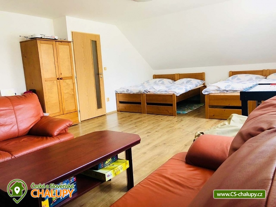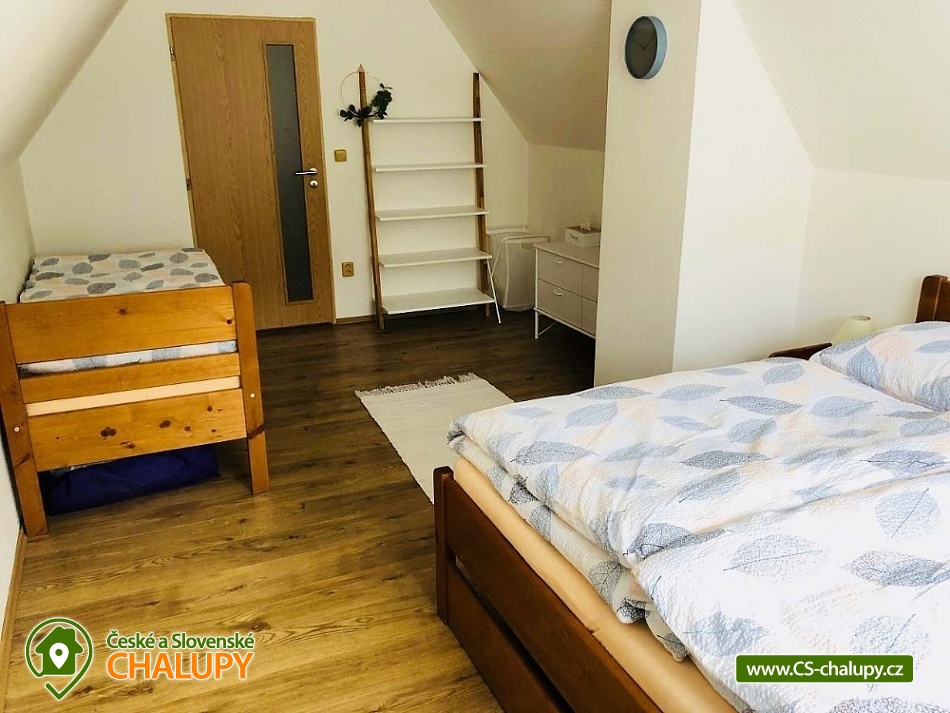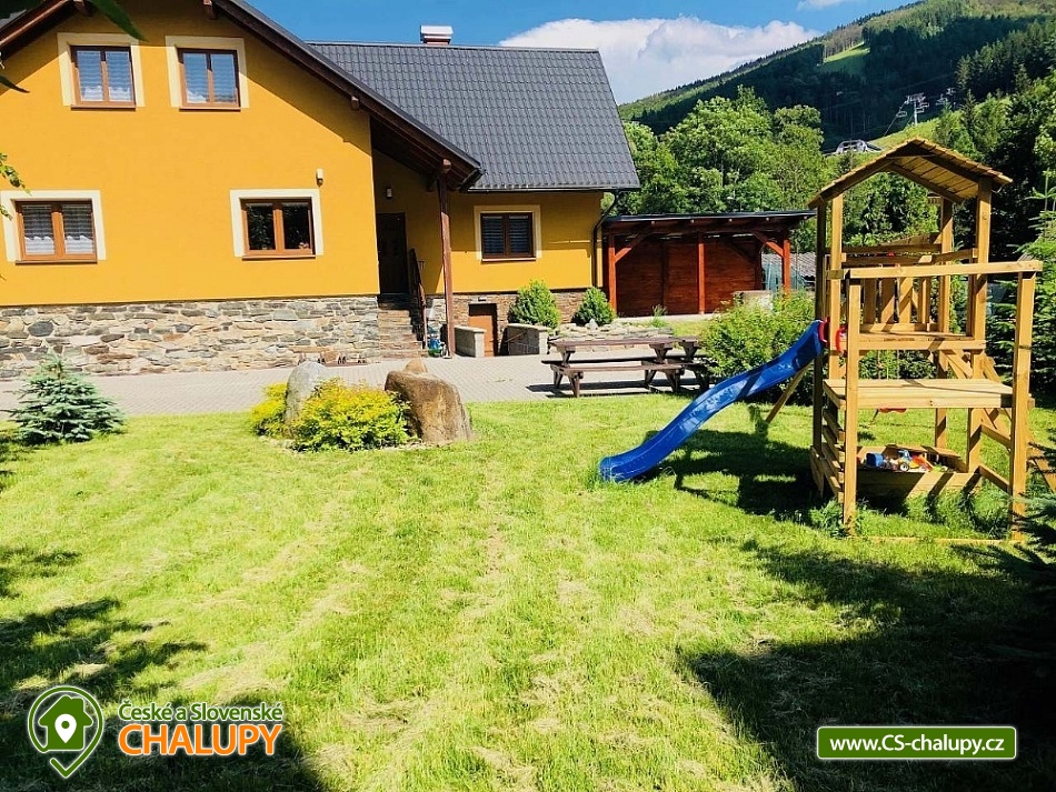 Chalupa Medvědí hora nedaleko nádrže Dlouhé stráně - Jeseníky. Ubytujte se s celou rodinou nebo přáteli v nově zrekonstruované chalupě v Koutech nad Desnou. K pronájmu je celý objekt s oplocenou zahradou a ubytováním až pro 16 osob. V chalupě se nachází: 5 samostatných neprůchozích pokojů z toho jeden velký pokoj určený především pro děti jako herna. Velká nadstandardně vybavená kuchyně včetně myčky, barový stůl, velký obývací pokoj spojený s jídelnou a velkým stolem. Vytápěná uzamykatelná kolárna/lyžárna s vyhříváním na lyžařské boty, prostor pro uskladnění potravin a velká lednice. Venkovní prostorná pergola s velkým grilem, ohniště a spousty her nejen pro děti včetně skluzavky a houpaček. K dispozici je plně vybavená kuchyně, lednice s mrazákem, myčka nádobí, trouba na pečení, mikrovlnná trouba, indukční varná deska, tlakový hrnec, toustovač, topinkovač, pákový pressovač, plastové nádobí pro děti, ponorný mixér apod. V chalupě KOUTY 43 se nachází dvě samostatné toalety a dvě koupelny. Koupelna v přízemí má vanu, a sprchový kout. Koupelna v prvním patře má sprchový kout, pračku a sušičku. Ústřední vytápění celého objektu i lyžárny. Pohodlné soukromé parkování přímo v oploceném objektu. Parkoviště pro 4 - 5 aut. Užijte si krásu přírody a zároveň nepřeberné množství letních i zimních aktivit, které Vám nabízí moderní areál KOUTY. Přijeďte si naplno užít sportovní i volnočasové aktivity, které jsou z naší chalupy doslova na dosah! V zimě či létě - s dětmi, rodinou, nebo partou přátel. Bavit se zde budete za každého počasí. Nejsme “na samotě u lesa”. Jsme v centru všeho dění. V Koutech je stále co dělat a proto si na zábavu nebo sport přijde opravdu každý. V okolí se nachází půjčovna a servis kol a lyží, nový Balanc park a trampolínová věž, několik sjezdovek (večerní lyžování), Černohorské Sedlo, Kareš, běžkařské dráhy, bobové dráhy, dětská lyžařská škola, bowling, Bike park, sjezd na koloběžkách, Dlouhé stráně, Koutecký les, Naučná stezka, Rozhledna na Medvědí hoře, Discgolf, Termály Velké Losiny, ruční papírna a mnohem více.