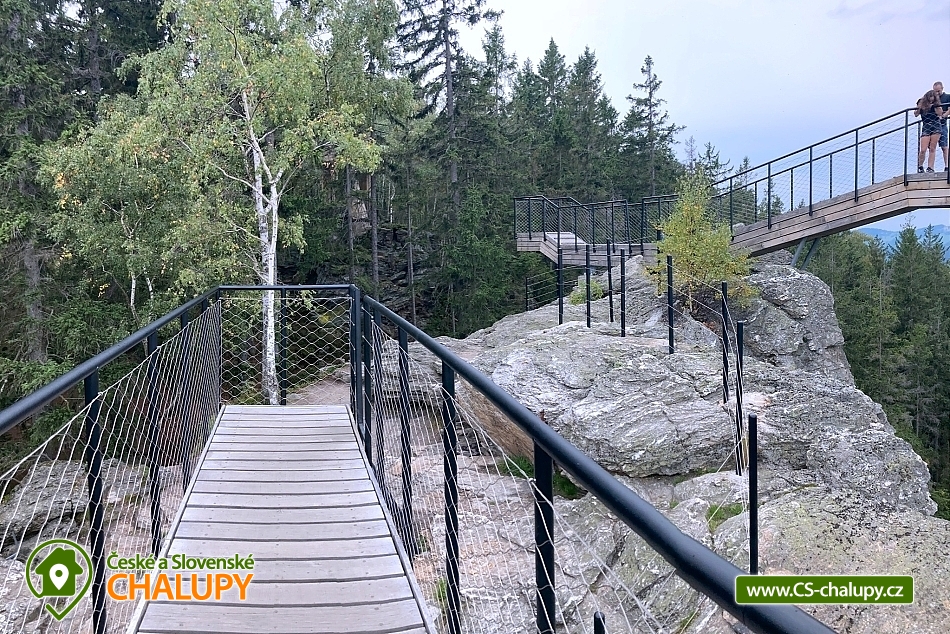 Komfortní chalupa na krásném a klidném místě u obce Rokytnice nad Jizerou - Krkonoše. Chalupa je ideální na dovolenou pro až 3 rodiny do 12 osob. Chalupa je moderně vybavená, nabízí celkem 4 samostatné ložnice a prostorné podkroví, 4 x koupelna, infrasauna pro 4 osoby. Pokud chcete vypustit děti na louku a při tom si v klidu popíjet kafíčko a nebát se, že vám děti někdo přejede, tak toto místo je ideální. Kolem jen louky a lesy, možnost výletů rovnou z chalupy. Krytá terasa zapuštěná do stavby s orientací VJZ nabídne sluníčko během celého dne. Velká jídelna je středobodem setkávání a ideální pro společné večery. V přízemí je velká koupelna s infra saunou pro 4 osoby, samostatným WC a dvěma umyvadly. Dále je zde ještě jedna toaleta vybavená i pisoárem. První patro nabízí celkem 4 ložnice s celkovou kapacitou 12 lůžek a dvou přistýlek. Dvě koupelny s toaletou a to jedna s vanou a druhá se sprchou nabídnou dostatek komfortu. Podkroví nabízí útulné posezení s výhledem na Jizerské hory, hernu pro děti a také místo pro spaní - dle zkušeností zde velmi rádi spí děti. Ložnice č. 1 a 2 - manželská postel 2x2 m s možností 1 přistýlky, Ložnice č 3 a 4 - dvě rozkládací lůžka s kapacitou celkem 4 lůžka. Podkroví - možnost spaní na matracích (ideální pro děti). Celkem kapacita ložnic 12 lůžek + 6 přistýlek. K dispozici je dětská postýlka s plnohodnotnou matrací. K dispozici: kuchyň s myčkou a kompletní výbavou, venkovní gril včetně otopu, venkovní zapuštěná trampolína, dvě televize 02, WIFI a hooodně místa na louce. V okolí: motokáry, bikepark, terénní koloběžky, lanové centrum a bobová dráha Harrachov. Jízda na koni - Farma Zlatá Podkova v Rokytnici 2 km a na Janové hoře 10 km. Aquapark ve Vrchlabí, Špindlerově Mlýně nebo v Liberci 40 km. Výlety: Dvoračky 2 km, Kotel 1435m n. m. 3 km, Zlaté navrší 4 km, Rezek 5 km, Mumlavský vodopád 9 km, pramen Labe 10 km, Sněžka 1602m n. m. 25 km, Bozkovské dolomitové jeskyně 20 km, Harrachov (Muzeum skla, Hornické muzeum a můstky pro skoky na lyžích) 5 km. Po Krkonošské diagonále můžete po hřebenu hor projít až na Horní Mísečky / Špindlerův mlýn cca 15km. Těšíme se na Vás u nás.