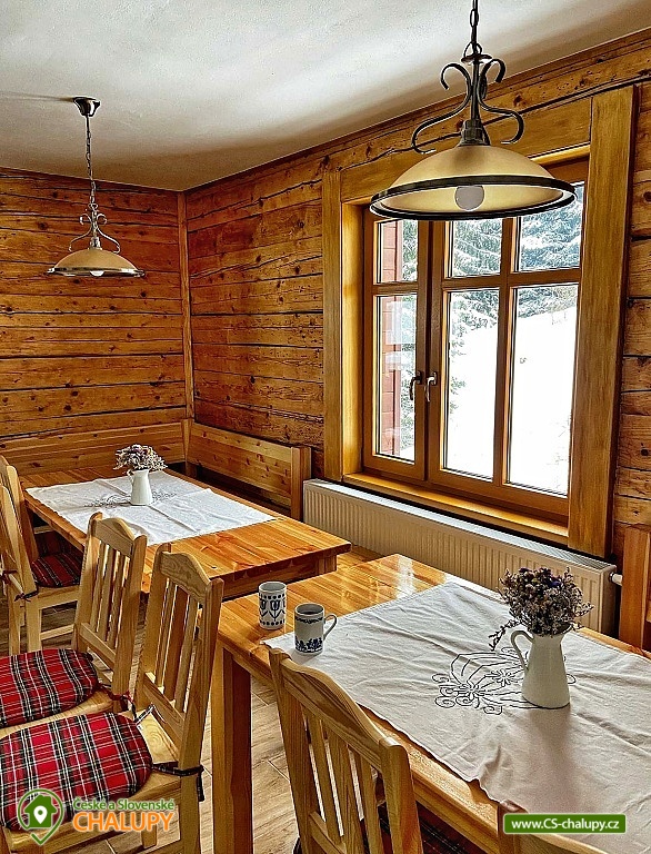 Chalupa v Údolí s koupacím sudem a vinným sklepem leží na samotě u lesa v obci Lipová - lázně, místo zajišťující klid a soukromí bez sousedů. Poloha v dobré dostupnosti všech zajímavých míst rekreační oblasti Jeseníků. V okolí lyžařské areály, běžkařské tratě i cyklotrasy. Pěší turisté ocení mnoho značených turistických a naučných stezek. Chalupa poskytuje ubytování pro až 16 osob v 5 ložnicích. POPIS: 3 ložnice s kapacitou pro 4 osoby a 2 ložnice pro 2 osoby. Ze společenské místnosti je vstup do zimní zahrady a dále ven na terasu vybavenou zahradním nábytkem, venkovním krbem, koupacím sudem pro 6 - 8 osob, lezeckou stěnou, pískovištěm a trampolínou pro děti. Plně zařízená kuchyně s vestavěnými spotřebiči, sklo - keramickou deskou, horkovzdušnou a mikrovlnou troubou, lednicí, mixerem, sendvičovačem, myčkou a rychlovarnou konvicí včetně kompletního vybavení. Společenská místnost vybavena dvěma stoly, rohovou lavicí a židlemi pro 16 osob, šipkami, stolním fotbálkem a televizí. V celém objektu je pokrytí Internet - WI - FI. V zimní zahradě další dva stoly se 16 židlemi, k dispozici je také vinný sklep. Místnost pro ukládání kol a lyží, sušák na boty. Sociální zařízení: 2 koupelny se sprchovým koutem, umyvadlem a WC. Jedna koupelna umyvadlo a WC. Objekt je vytápěn ústředním elektrickým topením. Ve společenské místnosti je možnost využít krb na dřevo. Parkoviště pro 5 vozidel u chalupy. Koupací sud v provozu duben - říjen. Zvířata máme rádi, ale pobyt se zvířaty v chalupě není možný! V okolí je mnoho značených turistických tras, lyžařských vleků, udržovaných běžeckých tras. Výlety jako je Lesní bar, Faunapark, Stezka Johanna Schrotha, lanovka na Šerák, Jeskyně Na Pomezí a další. Možnosti koupání: bazén Jeseník - Priessnitz, lom Žulová - Brankopy, lom Vycpálek a koupaliště Jeseník. Blízká lyžařská střediska: Ramzová - Bonera, Kovárna - Horní Lipová, Lázeňský vrch a Ski klub Ramzová pod Klínem. Těšíme se na Vás u nás.