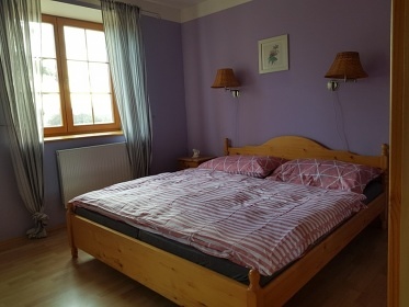 Chalupa Polosamota u Anenského vrchu - Andělská Hora - CHKO Jeseníky. Nabízíme Vám chalupu, která je skoro na samotě, poslední stavení v obci mezi pastvinami. Nabízí velký prostor vnitřní i venkovní s možností ubytování i malé skupinky osob (jen v přízemí, nebo jen v patře a podkroví) a vždy obsazujeme jen 1 skupinou pro větší soukromí. Velmi vhodná je jak pro více rodin, tak pro menší skupiny. Ubytování je variabilní. Přízemí nabízí 8 lůžek a přistýlku, zahrnující dvě samostatné ložnice s přístupem do společné koupelny. V každé ložnici jsou 4 lůžka, z toho 3 manželské postele a dvě samostatné postele. V obývacím pokoji možnost přistýlky na rozkládací pohovce - max. dvě osoby. K dispozici infrasauna. V patře se nachází druhý apartmán v dalších 3 ložnicích v patře (celkem 5 ložnic) s kuchyní a koupelnou. Výhodou je možnost pronajmout jen přízemí pro až 10 osob jako apartmán za výhodnou cenu. Kuchyňská linka je plně vybavená: sporák, trouba, konvice, myčka, kávovar, lednička. Dále je v objektu TV, WIFI, žehlička, pračka a sušička. V přízemí chalupy je velká koupelna s vanou, sprchovým koutem, WC, bidetem a 2x umyvadlo, ve vedlejší místnosti je druhé WC. V patře je k dispozici další koupelna s WC dle obsazenosti. Vytápění je zajištěno otopnými tělesy a plynovým kotlem, v obývacím pokoji je také krb. Teplá voda je zajištěna elektrickým bojlerem. Parkování pro 7 aut je přímo u chalupy. Výhled z oken je na louky a pastviny. Před chalupou se pasou koně a krávy. Umístění poskytuje velké soukromí s uzavřenou zahradou. V okolí najdete vše co potřebujete - obchod, hospodu a další aktivity na lyže, cyklistiku a turistiku. Také bobovou dráhu za kopcem. Nad Andělskou Horou je Anenský vrch s poutním kostelem a křížovou cestou v aleji stromů. Na tomto vrchu nad městečkem se protínají všechny turistické trasy okolí. Andělská Hora patří k nejmenším městům v ČR, má jen 371 obyvatel. Je to místo malebné bez zásahu průmyslu a s velmi čistým ovzduším. Je to klidné místo na Zemi. Lyžování na místním svahu, běžky, cyklistika, turistika, možné výlety po okolí Jeseníků. V okolí je lázeňské město Karlova Studánka, nejvyšší hora Praděd, Karlov, Malá Morávka a další části Hrubého Jeseníku. Dále město Bruntál, zámek Bruntál, místní rybník, bazén Karlova Studánka a vodní nádrž Slezská Harta.