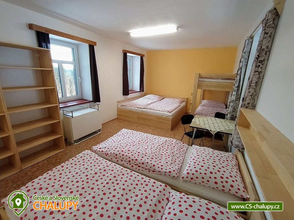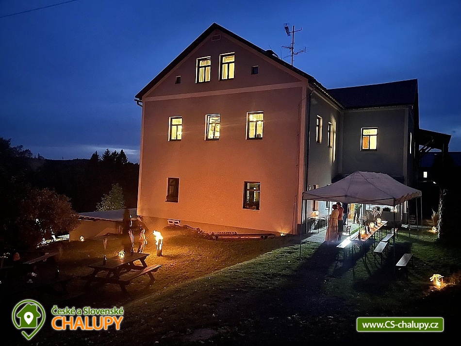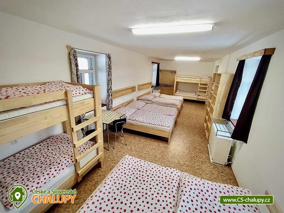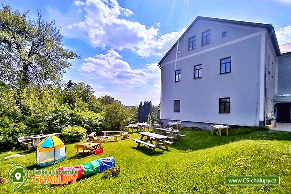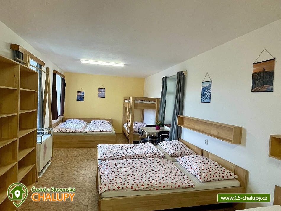 Chalupa Pod Javorníkem v Jizerských horách s výhledem na Krkonoše se nachází v centru obce Paseky nad Jizerou, má kapacitu až 45 osob celkem v 5ti pokojích a je možné ji pronajmout jako celek 1 skupině klientů v soukromí, případně i jednotlivé pokoje samostatně. Nejčastěji je využívána pro lyžařské kurzy, školy v přírodě a další různé zájmové skupiny a často jezdí i rodiny s dětmi. V každém z pokojů jsou úložné prostory, stůl, židle a akumulační kamna pro vytápění. Velká společenská místnost s kuchyňkou slouží také jako jídelna. Větší skupiny a školy si zde zvládají příležitostně vařit. Jinak je možnost domluvit stravování s restaurací. A momentálně domlouváme také dovoz jídel ze školní jídelny. V kuchyni je 2x mikrovlnná trouba, 2x lednice, mrazák, trouba, sporák, 2x rychlovarná konvice, myčka, topinkovač, běžné nádobí na vaření i pro skupiny osob. Je zde také TV a dětský koutek. Pro dospělé terč a šipky. Ve společenské místnosti pořádáme oslavy, přednášky i promítání. Celý objekt vytápíme akumulačními kamny. Koupelny jsou společné. Dámské koupelny mají dvě sprchy a pět umyvadel a stejně tak pánské. Dámské toalety a pánské jsou také společné pro všechny pokoje. V horním patře (pro menší pokoje č. 3+4+5) je samostatná koupelna se sprchovým koutem a toaletou. Parkování je možné zdarma na dvou obecních parkovištích vzdálených 250 m a 300 m. U chalupy je zahrádka s ohništěm, grilem a venkovním posezením. Poloha je výhodná pro start výletů pěších i na kole, protože zde vedou turistické i cyklistické stezky. Pro cyklisty máme uzamykatelnou kolárnu. Ačkoliv se chalupa nachází na okraji centra, je zde klid. Pod budovou jsou louky a lesy. V těsné blízkosti se nachází restaurace a muzeum. Obchod s potravinami je vzdálený 300 m. Horská obec Paseky nad Jizerou leží na pomezí Krkonoš a Jizerských hor. Při toulkách Pasekami můžete objevit lidové roubené chaloupky, některé z nich jsou zapsané v seznamu kulturních památek. Za zmínku stojí také památník Zapadlých vlastenců. Blízká lyžařská střediska: Skiareál Paseky nad Jizerou, PAŠÁK - Vilémov, Metlák - Sklenařice, lyžařský vlek TJ Sokol Sklenařice, Kamenec - Jablonec nad Jizerou nebo například Kořenov - Rejdice. Těšíme se Vás u nás.
