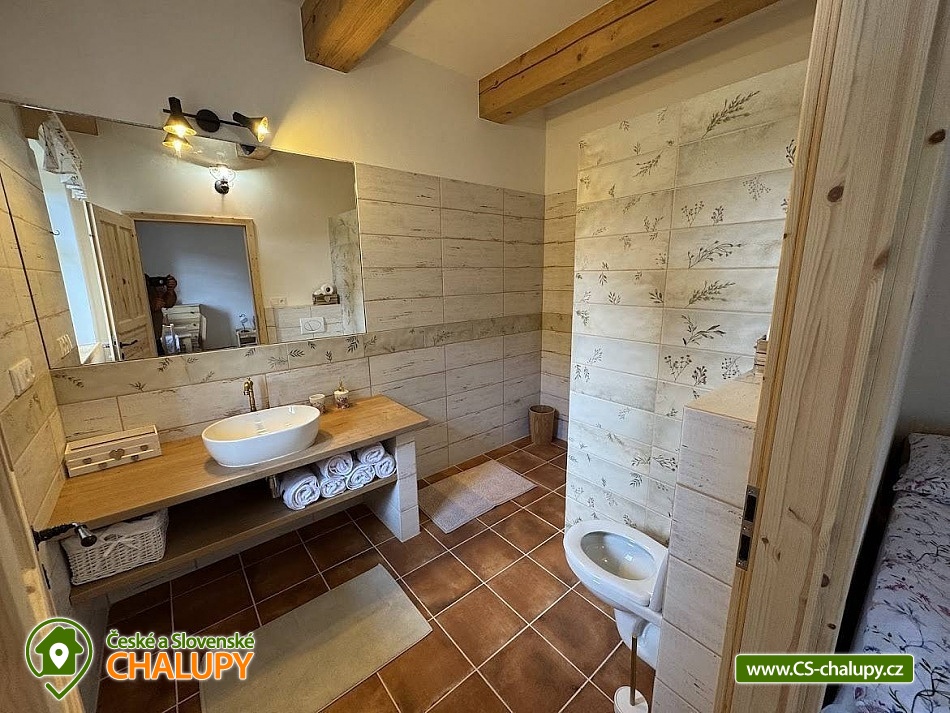 Chalupa u lesa Žďárské vrchy - Nové Město na Moravě se nachází v krásné přírodě Vysočiny, v obci Zubří. Leží nedaleko Nového Města na Moravě a nabízí ubytování s krásnými výhledy na Žďárské vrchy pro 16 osob ve třech pokojích. Objekt lze pronajmout jako celek pro 16 osob nebo každý pokoj zvlášť. K dispozici je POKOJ LUČNÍ pro 4 osoby (1x dvoulůžko, 1x jednolůžko a 1x přistýlka), POKOJ LESNÍ pro 6 osob (1x dvoulůžko, 2x jednolůžko a 2x přistýlka) a POKOJ CHRPOVÝ pro 6 osob (1x dvoulůžko, 2x jednolůžko a 2x přistýlka). Každý pokoj má vlastní koupelnu se sprchovým koutem a WC a stůl se židlemi. V chalupě je k dispozici vstupní roubená místnost se stolním fotbálkem, X-boxem a sušárnou na boty a oděvy. Dále pak chodba se společným WC. K dispozici je také prostorná jídelna se stoly, lavicemi a židlemi, pohovkou, TV, kachlovými kamny a plně vybavená kuchyň (nádobí, lednice, mrazák, elektrická trouba, sklokeramická varná deska, mikrovlnná trouba, kávovar, rychlovarná konvice, myčka). K dispozici Wi-Fi připojení. Objekt je vytápěn podlahovým topením a kachlovými kamny. Parkování možné přímo u chalupy pro 4 auta. Součástí chalupy je zahrada pro různé aktivity jako badminton, fotbal nebo stolní tenis a terasa s posezením a grilem. Chalupa leží na krásném, klidném místě u lesa a nedaleko místního rybníka, kde je možnost koupání. Tipy na výlety: Pasecká skála, Japonská zahrada, zřícenina hradu Dalečín, Drátenická skála a skalní útvar Dráteničky, zábavní areál Šikland, rozhledna Karasín, Devět skal a Čtyři palice. Možnosti koupání: Zuberský rybník kousek od chalupy, Městské lázně Nové Město na Moravě, Skalský rybník, přírodní koupaliště Nové Město na Moravě, Domanínský rybník. Blízká lyžařská střediska: Harusův kopec - Nové Město na Moravě, Jimramov, Dalečín. Těšíme se na Vás u nás.
