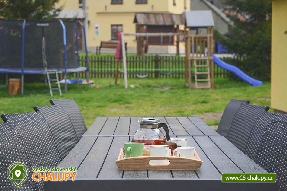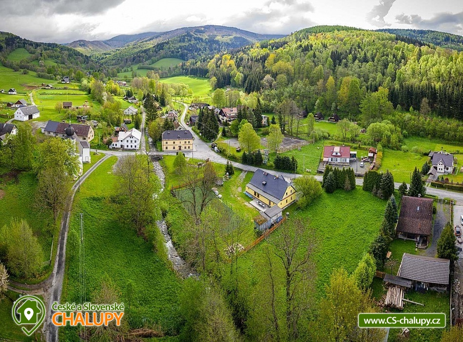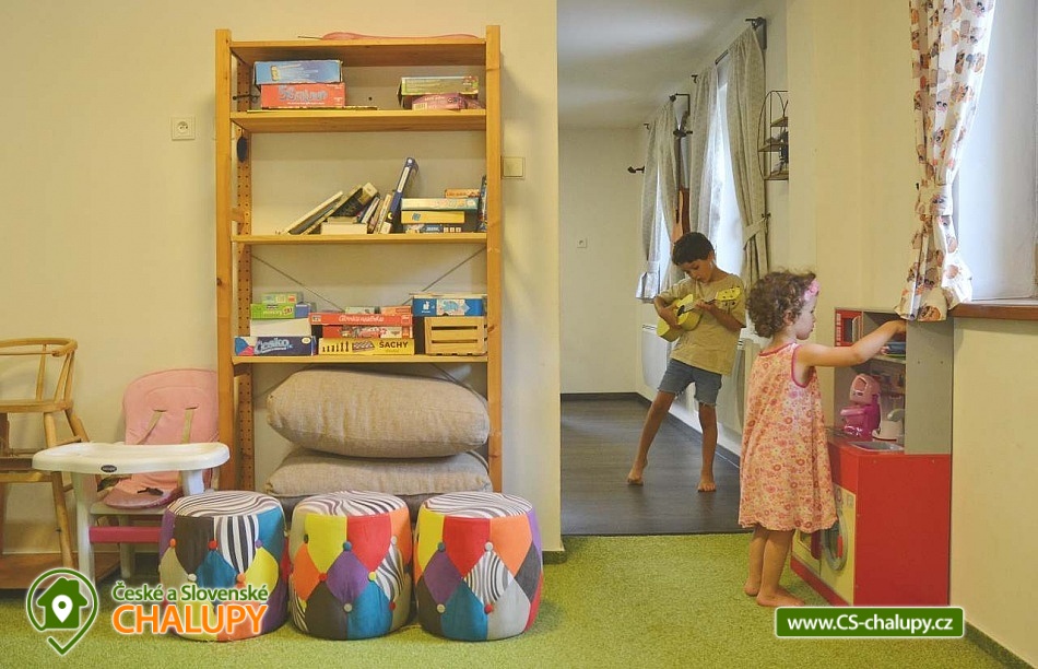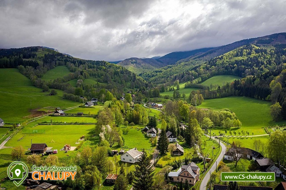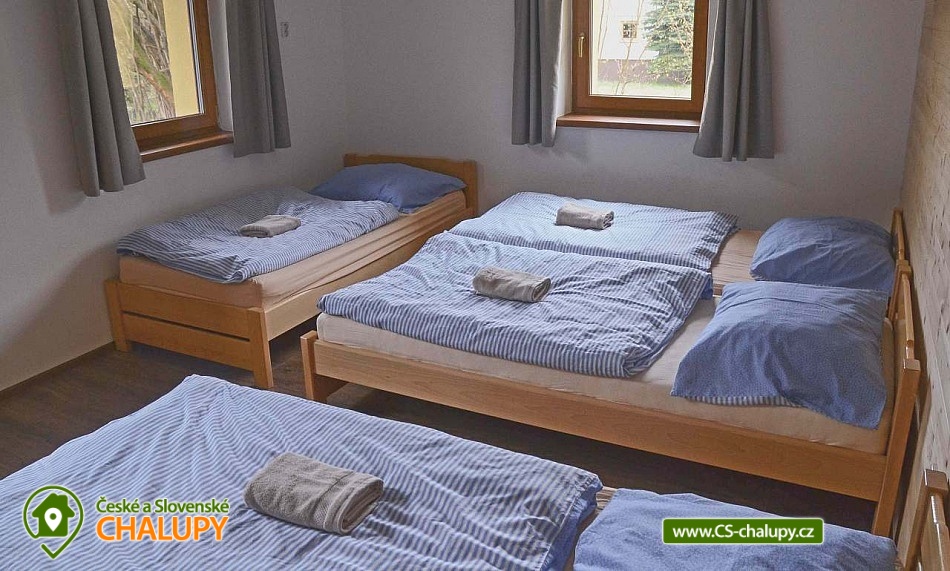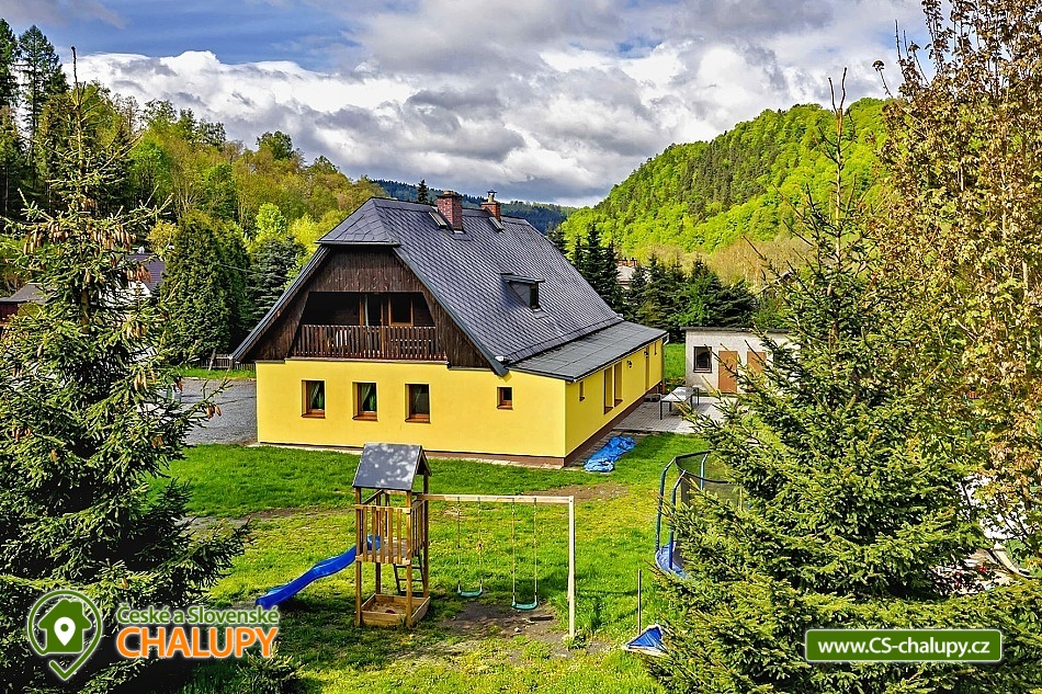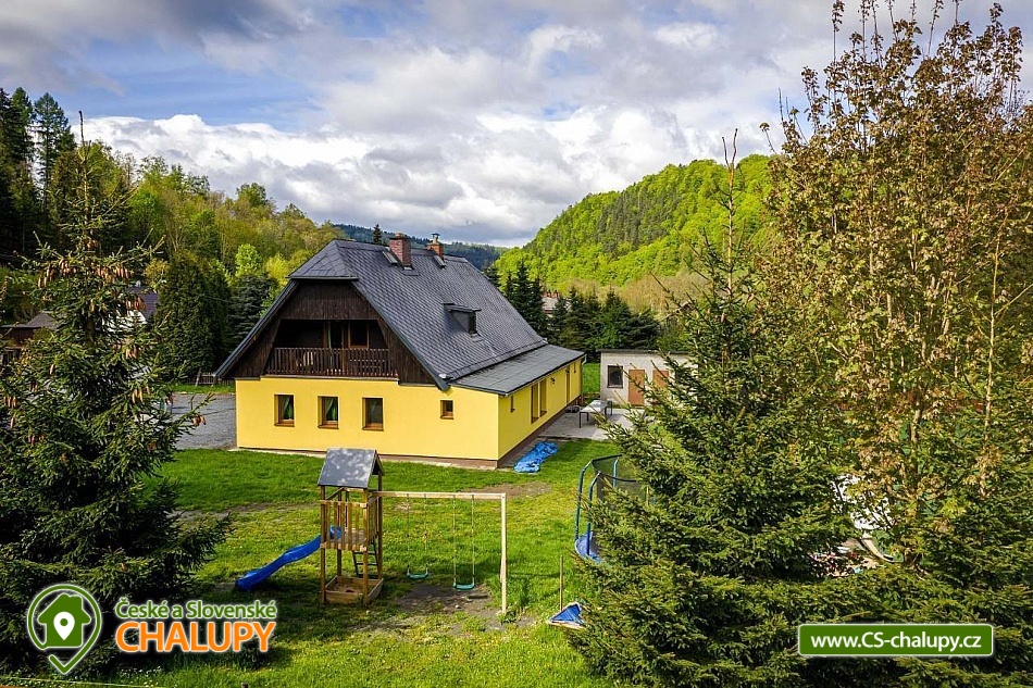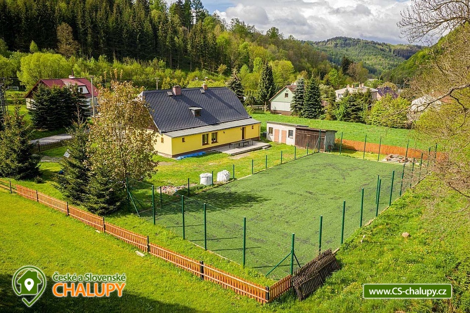 Rodinná Chalupa pro děti a hřiště nedaleko termálního koupaliště ve Velkých Losinách. Zveme Vás na příjemnou dovolenou. K dispozici je vám prostorná chalupa s kapacitou až 19 lůžek + 1 přistýlka + dětská postýlka (v 6-ti ložnicích), zahrada s vlastním hřištěm s umělou trávou, venkovním posezením, ohništěm a dětským hřištěm. V obci je velké dětské hřiště a povodňový park s balneem a plytkými potůčky (ideální na hraní pro děti). POPIS: Objekt poskytuje kapacitu pro až 20 osob v několika velikostně odlišných pokojích: 3x třílůžkový (v jednom je možná přistýlka), 1x dvoulůžkový a 2x čtyřlůžkový pokoj. K dispozici je jedna dětská cestovní postýlka. V každém pokoji jsou závěsy a síť proti hmyzu. Ložní prádlo i ručníky jsou v ceně. Prostorná společenská místnost s krbem, dětská herna a kuchyně s veškerým vybavením: 2x lednice, toustovač, mikrovlnka, topinkovač, rychlovarná konvice, myčka, varná deska, tyčový mixér, moka konvička, překapávač kávy, dolce gusto (kapsle nejsou k dispozici), velkokapacitní hrnce, pánve, struhadlo, koření, tácy, konvice, hrníčky, talíře i příbory.. no prostě vše, co je v kuchyni běžně potřeba. Sociální zařízení: Dvě koupelny se sprchovým koutem a dvě toalety. Vytápění: Elektrické přímotopy a krb na dřevo - v zimních měsících 2 koše se dřevem na otop v ceně. Další vybavení: Televize s přístupem na internet. Stolní a společenské hry v dětské herně. Fotbálek, šipky, stolní hry, hřiště se sítí, balóny, badminton, petanque, florbalové hole, boby a lopaty na sníh, a spousta dalšího. Parkování: 6 parkovacích míst na zahradě, další na parkovišti u kostela asi 50m od chaty. U chaty: 2x houpačka, klouzačka, pískoviště, gril, ohniště, bodce na špekáčky. Je zde i uzamykatelná garáž na vaše kola a lyže. Nedaleko se nachází několik sportovních středisek, termální bazén Velké Losiny, přečerpávací vodní elektrárna Dlouhé Stráně a hřeben Hrubého Jeseníku. O aktivity zde nebude nouze. Cyklistika: Jeseníky jsou prošpikovány hustou sítí lesních cest. Přímo z Vernířovic se můžete na kole dostat do všech zajímavých lokalit: Dlouhé stráně, Praděd, Karlova Studánka, Vrbno pod Pradědem, Rabštejn a další. V areálu Kouty je také vyhledávaný bike park s veškerým zázemím. Lyžování: V obci se nachází 2 lyžařské vleky a další střediska jsou v krátké dojezdové vzdálenosti. Najdete tady sjezdovky všech obtížností. Těšíme se na Vás u nás.
