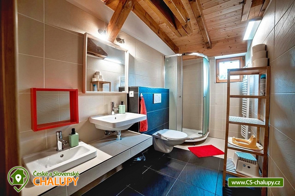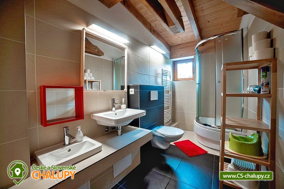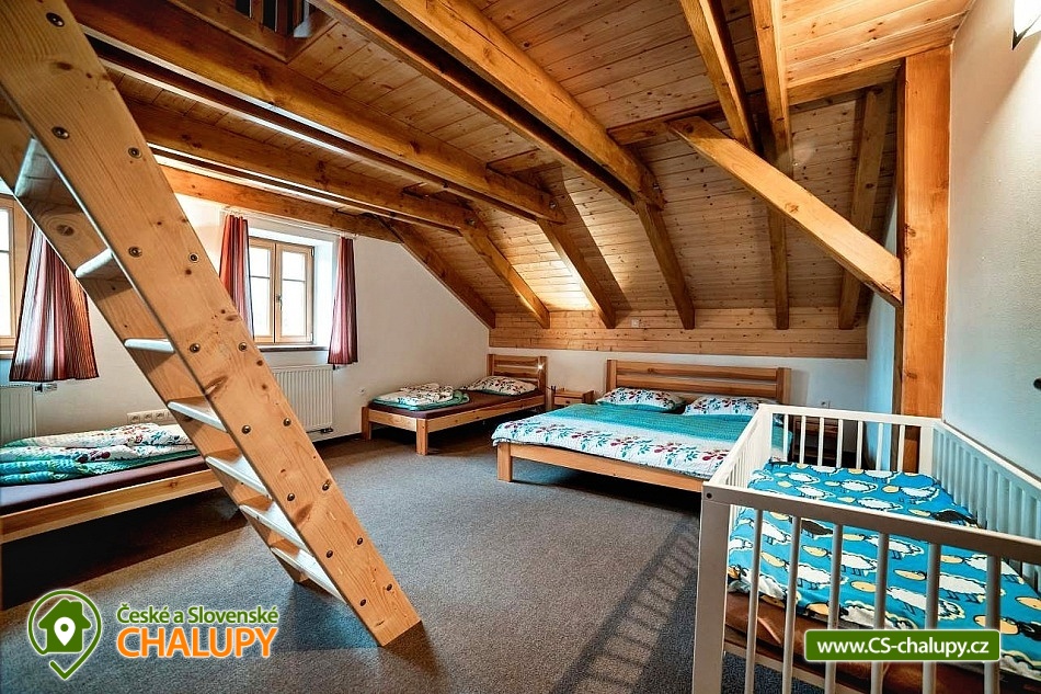 Chalupa s bazénem na zahradě je vhodná i pro rodiny s dětmi - k dispozici je velká vnitřní herna pro děti s tobogánem z podkroví, tedy i ve špatném počasí si děti užijí velkou zábavu, v herně je spoustu hraček. Chalupa leží na samotě s velkým prosluněným pozemkem u obce Nebeská Rybná a cca 1 km od obce Rokytnice v Orlických horách. Ubytování ve 4 prostorných pokojích +2 menších pokojích, celkem až 25 osob. U chalupy je upravená zahrada s pískovištěm, prolézačkami, skluzavkou, houpačkami a nadzemním bazénem průměr 3,6 m se solárním ohřevem. Součástí zahrady je i posezení u ohně a grilu. POPIS: Pokoje - dva 4-lůžkové, dva 3-lůžkové, a dva 2-lůžkové se sníženým stropem (vhodné pro 1 rodinu 2dospělí + 2děti), z toho 3 pokoje jsou mezonetového typu, spaní v podkroví je pro až 7 osob. K dispozici jsou 4 dětské postýlky a další potřeby pro děti. Velká společenská místnost, plně vybavená kuchyň (dvě lednice a 2 mrazáky, dostatek nádobí, varná konvice, kávovar Tchibo a myčka). V chalupě jsou celkem tři koupelny, jedna v přízemí, dvě v podkroví. V přízemí je vana se sprch. koutem a wc, v podkroví sprch. kout s wc. V každé koupelně jsou i snížená dětská umyvadla, nočníky, přebalovací pulty, prkénka pro děti, stupátka. Chalupa je vytápěna centrálně elektrokotlem v kombinaci s krbovou vložkou na dřevo. Celé přízemí má podlahové topení, horní koupelny mají taktéž podlahové vytápění. Součástí chalupy je též kolárna - lyžárna. Dostatečný prostor pro parkování přímo u objektu. V letních měsících turistika, cyklistika, golf, válečné opevnění, hrady a zámky. V zimě mnoho lyžařských vleků (Rokytnice, skiareál Říčky, Deštné v Orlických horách, vynikající areál Červená voda), běžkařské trasy 200 m od chalupy. Možnosti koupání: koupaliště Rokytnice v Orlických horách, koupaliště Kunvald, koupaliště Rychnov nad Kněžnou, bazén Rychnov nad Kněžnou, aquapark Žamberk a přehrada Pastviny. Těšíme se na Vás u nás.