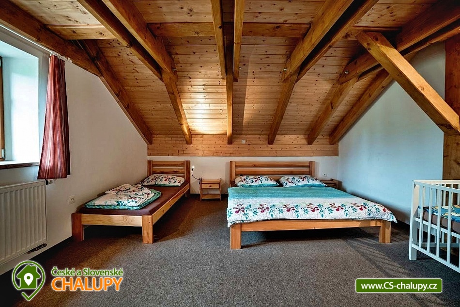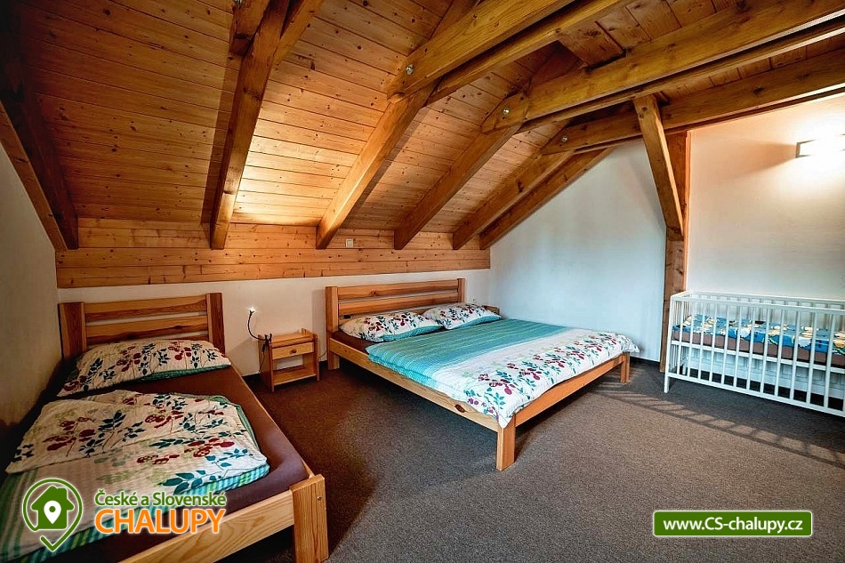 Chalupa s bazénem na zahradě je vhodná i pro rodiny s dětmi - k dispozici je velká vnitřní herna pro děti s tobogánem z podkroví, tedy i ve špatném počasí si děti užijí velkou zábavu, v herně je spoustu hraček. Chalupa leží na samotě s velkým prosluněným pozemkem u obce Nebeská Rybná a cca 1 km od obce Rokytnice v Orlických horách. Ubytování ve 4 prostorných pokojích +2 menších pokojích, celkem až 25 osob. U chalupy je upravená zahrada s pískovištěm, prolézačkami, skluzavkou, houpačkami a nadzemním bazénem průměr 3,6 m se solárním ohřevem. Součástí zahrady je i posezení u ohně a grilu. POPIS: Pokoje - dva 4-lůžkové, dva 3-lůžkové, a dva 2-lůžkové se sníženým stropem (vhodné pro 1 rodinu 2dospělí + 2děti), z toho 3 pokoje jsou mezonetového typu, spaní v podkroví je pro až 7 osob. K dispozici jsou 4 dětské postýlky a další potřeby pro děti. Velká společenská místnost, plně vybavená kuchyň (dvě lednice a 2 mrazáky, dostatek nádobí, varná konvice, kávovar Tchibo a myčka). V chalupě jsou celkem tři koupelny, jedna v přízemí, dvě v podkroví. V přízemí je vana se sprch. koutem a wc, v podkroví sprch. kout s wc. V každé koupelně jsou i snížená dětská umyvadla, nočníky, přebalovací pulty, prkénka pro děti, stupátka. Chalupa je vytápěna centrálně elektrokotlem v kombinaci s krbovou vložkou na dřevo. Celé přízemí má podlahové topení, horní koupelny mají taktéž podlahové vytápění. Součástí chalupy je též kolárna - lyžárna. Dostatečný prostor pro parkování přímo u objektu. V letních měsících turistika, cyklistika, golf, válečné opevnění, hrady a zámky. V zimě mnoho lyžařských vleků (Rokytnice, skiareál Říčky, Deštné v Orlických horách, vynikající areál Červená voda), běžkařské trasy 200 m od chalupy. Možnosti koupání: koupaliště Rokytnice v Orlických horách, koupaliště Kunvald, koupaliště Rychnov nad Kněžnou, bazén Rychnov nad Kněžnou, aquapark Žamberk a přehrada Pastviny. Těšíme se na Vás u nás.