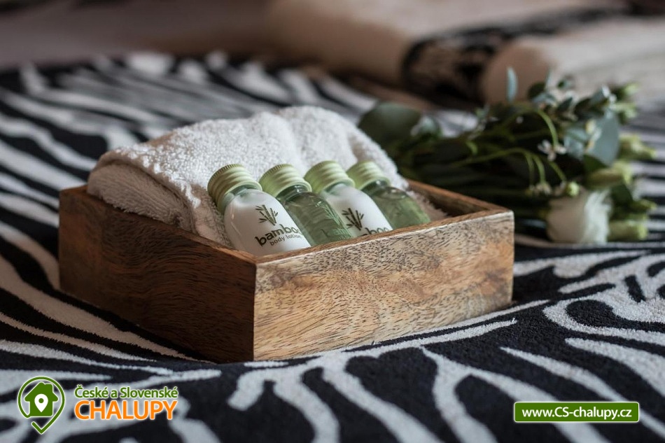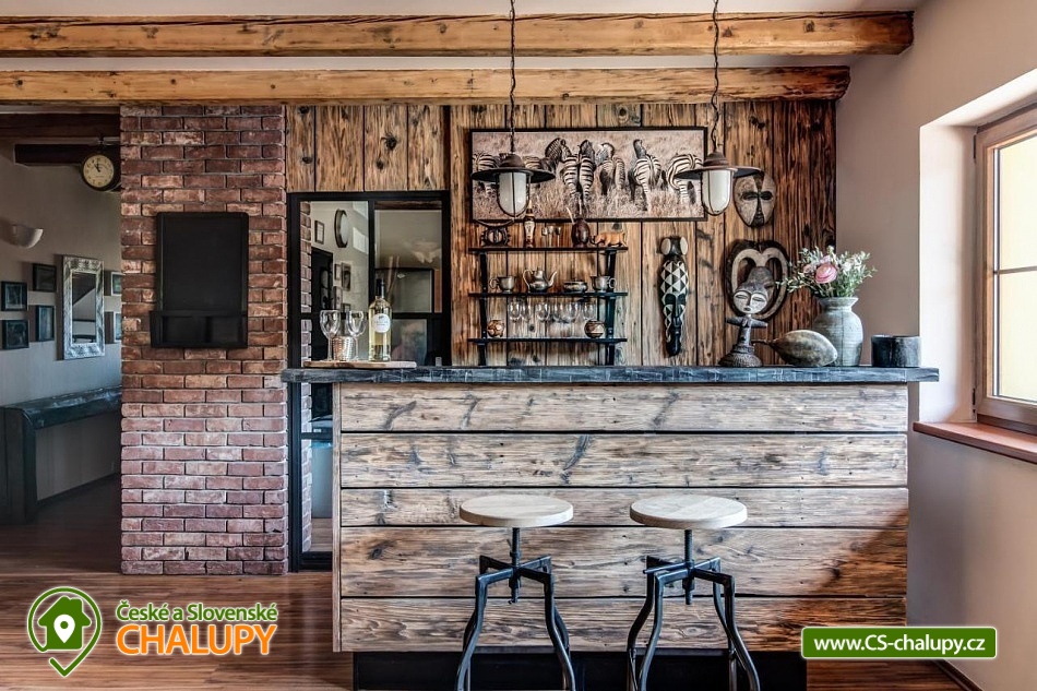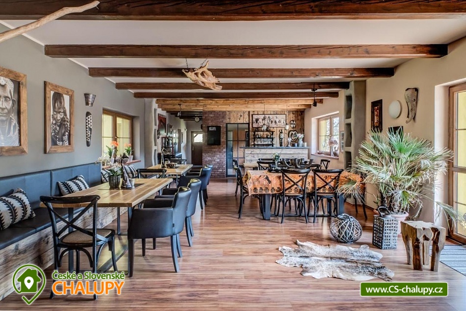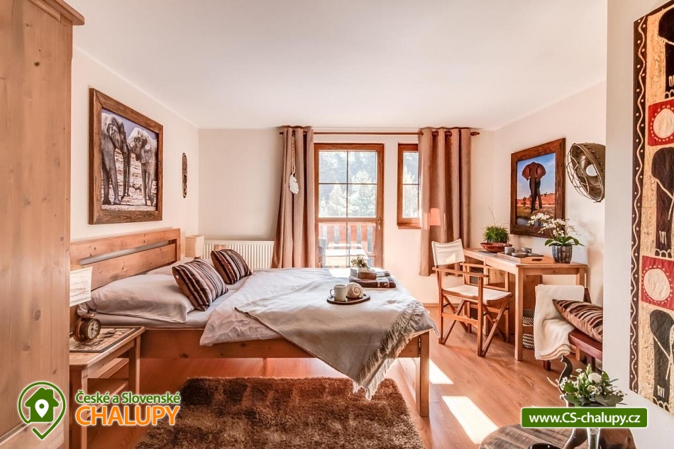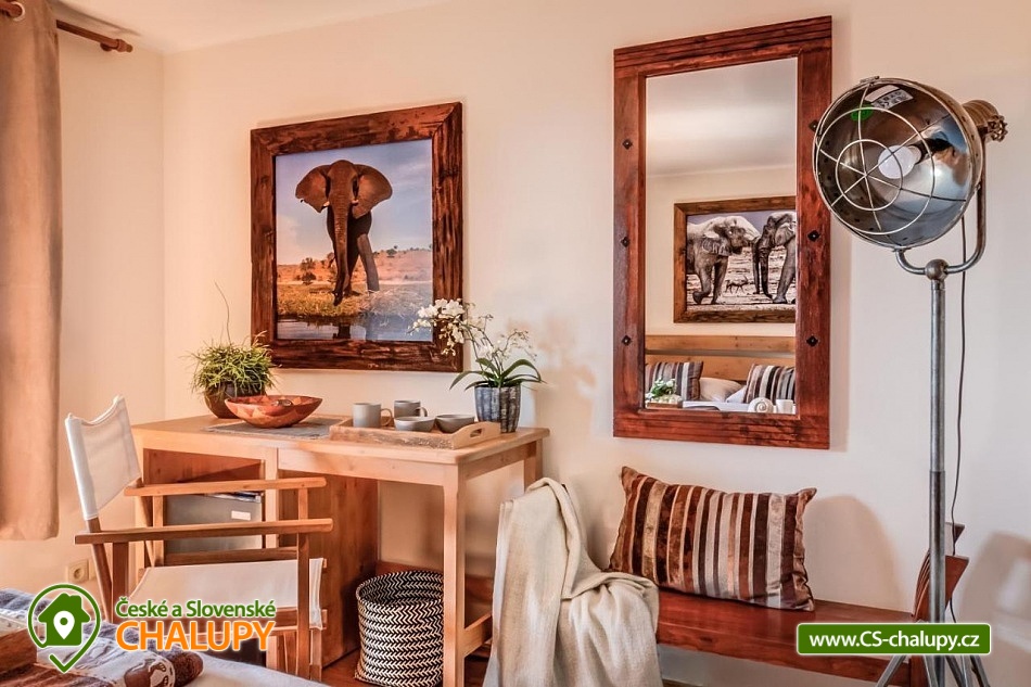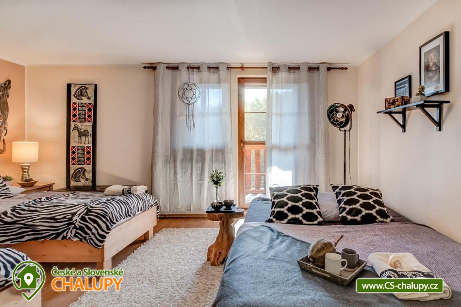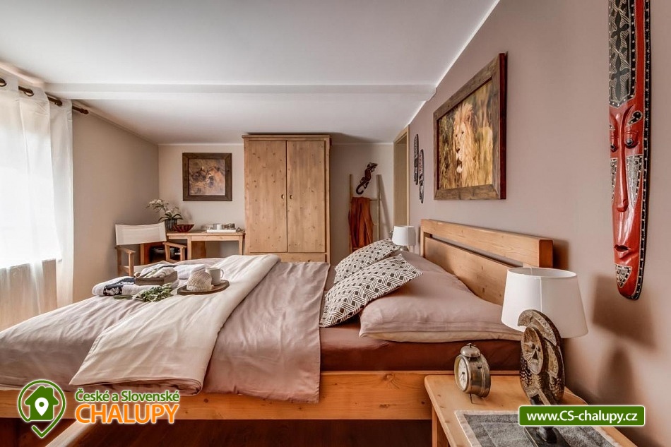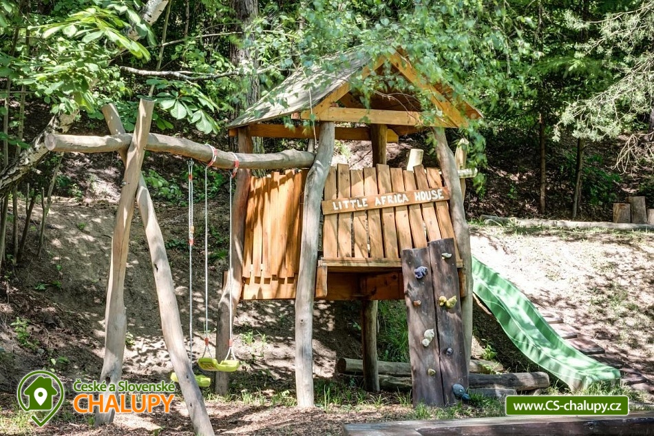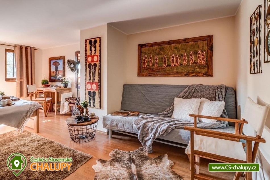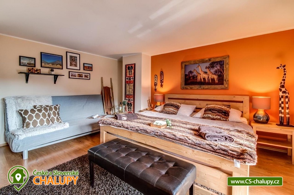 Chalupa pro rodiny s dětmi nedaleko od ZOO Zlín Lešná (druhá nejnavštěvovanější zoologická zahrada v ČR) a hradu a skal Lukov. Chalupa je kompletně vybavena v originálním africkém stylu včetně mnoha fotografií a artefaktů, které si majitelé přivezli ze svých cest po Jihoafrické republice, Mosambiku, Namibii, Botswaně, Zimbabwe, Zambii a dalších zemích afrického kontinentu. Chalupa je vzhledem ke své poloze vhodná pro rodiny s dětmi, ale i ostatní skupiny ocení velký uzavřený areál u rybníka, na okraji lesa, stranou civilizace. Chalupa k pronájmu poskytuje ubytování pro až 19 osob v 5 ložnicích. Vyberte si z pěti pokojů s motivy afrických zvířat. Tedy 4x čtyřlůžkový pokoj (Gepard, Žirafa, Zebra a Slon) plus 1x Třílůžkový pokoj (Lev). Hostům jsou k dispozici 4 koupelny, každá se sprchovým koutem a WC, nacházející se na stejném patře jako pokoje plus dvě samostatná WC ve společenské části objektu. K dispozici je plně vybavená kuchyně s velkou lednicí a myčkou nádobí, společenská místnost s krbem, WIFI a TV. U chalupy je kryté venkovní posezení, gril a ohniště na opékání, dětské a sportovní hřiště a parkování u chalupy v areálu. Budeme rádi, když si u nás uspořádáte nevšední setkání, narozeninovou oslavu, firemní večírek či nazapomenutelnou svatbu v africkém prostředí. V okolí: ZOO Zlín, Hrad a skály Lukov, Koupaliště a Lázně Kostelec, Tenisové hřiště Vršava, Větrný Mlýn Štípa, Rybník Ostrata, Dětské centrum Galaxie, Baťův kanál - rekreační vodní cesta, Baťův mrakodrap a Obuvnické muzeum Zlín. Těšíme se na Vás u nás.