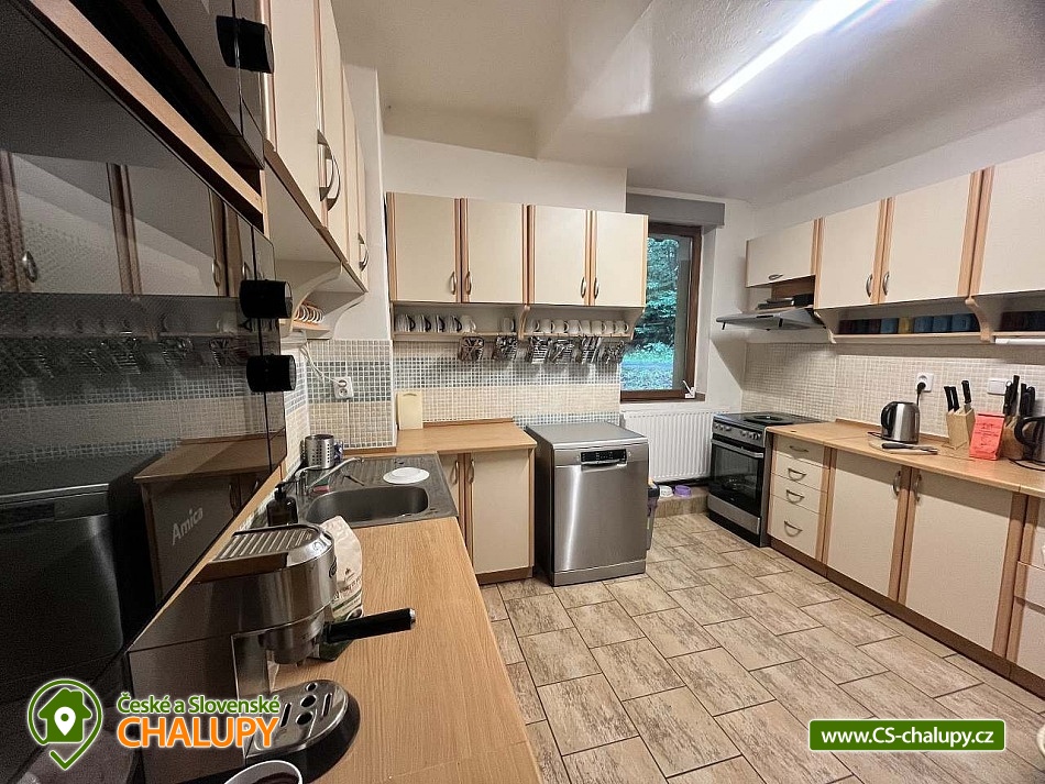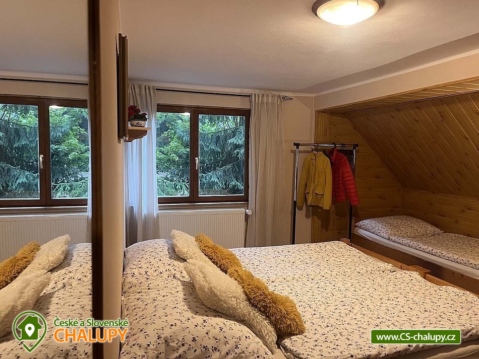 Chalupa na polosamotě v Jizerských horách je ideální pro skupinu přátel, sportovců nebo několik rodin, kteří si chtějí užít dovolenou v soukromí a v pohodě. Poloha: Chalupa u osady Pustiny, obec Černá Říčka, Kořenov a Desná. Kapacita chalupy je až 22 lůžek v 6 ložnicích (5x čtyřlůžková ložnice a 1x dvoulůžková). Možnost půjčení dětské postýlky. K dispozici je prostorná společenská místnost, kde najdete krb, smart TV, několik jídelních stolů se židlemi, dětský koutek na malování, hraní a stolní fotbálek. Dále je tu plně vybavená kuchyň (nádobí, dvě lednice, dva mrazáky, dvě rychlovarné konvice, mikrovlnná trouba, myčka, dva sporáky s troubou, kávovar a dva topinkovače). Sociální zařízení zahrnuje celkem tři koupelny a tři WC (dámská koupelna se dvěma sprchovými kouty, dvěma umyvadly a odděleným WC, pánská koupelna se stejným vybavením a jedna samostatná koupelna se sprchovým koutem, umyvadlem a WC). Objekt je vytápěn tepelným čerpadlem. Ve společenské místnosti jsou krbová kamna. Wi-Fi připojení v celém objektu. Parkování možné přímo u chalupy až pro 8 aut. Venku u chalupy je pro hosty připravena terasa s venkovním posezením, ohniště a venkovní krb s grilem. Součástí ubytování je také lyžárna a úschovna kol. V okolí se můžete věnovat turistice, cykloturistice, houbaření, lyžování a běžkování. Možnosti koupání: koupaliště Tanvald, Harrachov, Zlatá Olešnice, Lučany nad Nisou. Tipy na výlety: Rozhledna Štěpánka, Vyhlídka Jizerka, Rozhledna Tanvaldský Špičák nebo Vodopády Jedlová a Vodní nádrž Souš, zřícenina hradu Návarov, Mumlavský vodopád. Lyžařská střediska: Černá Říčka, Kořenov, skiareál U Čápa - Příchovice, Detoa - Albrechtice, skiareál Tanvaldský Špičák. Těšíme se na Vás u nás.