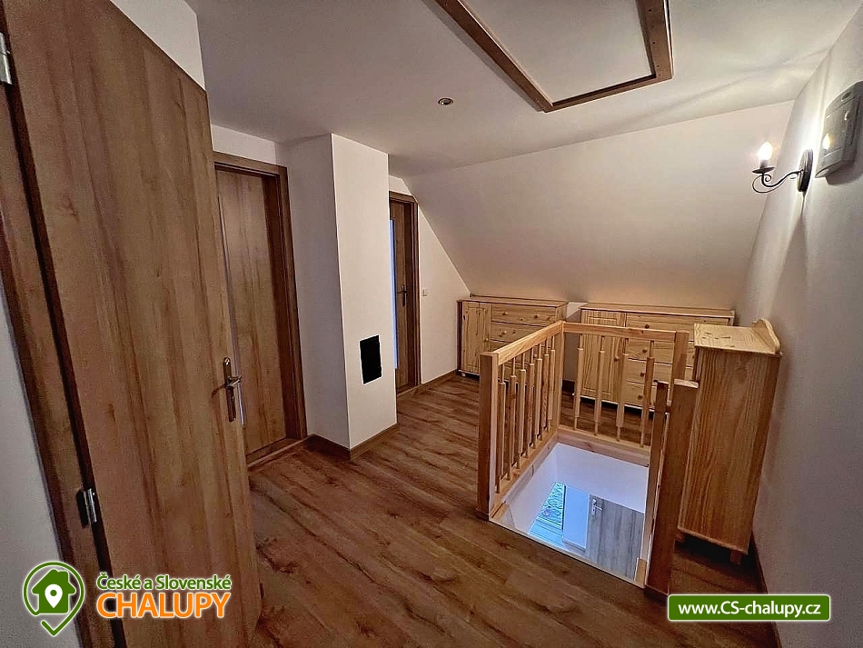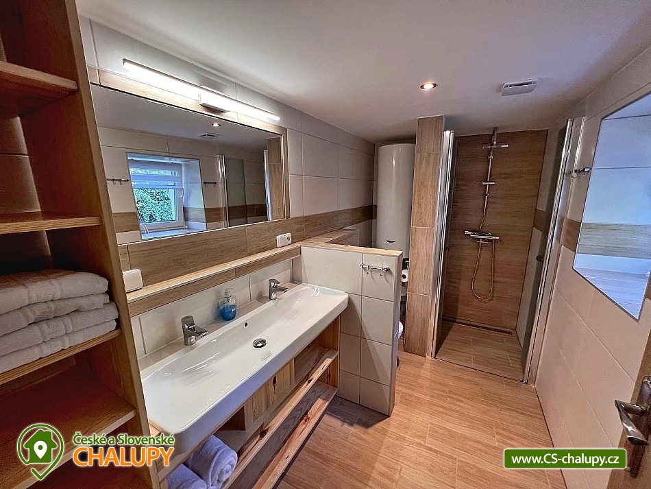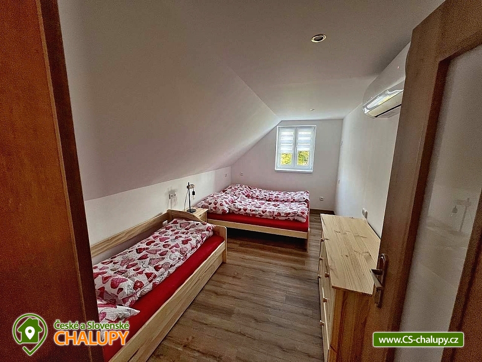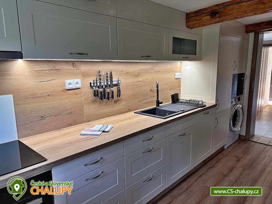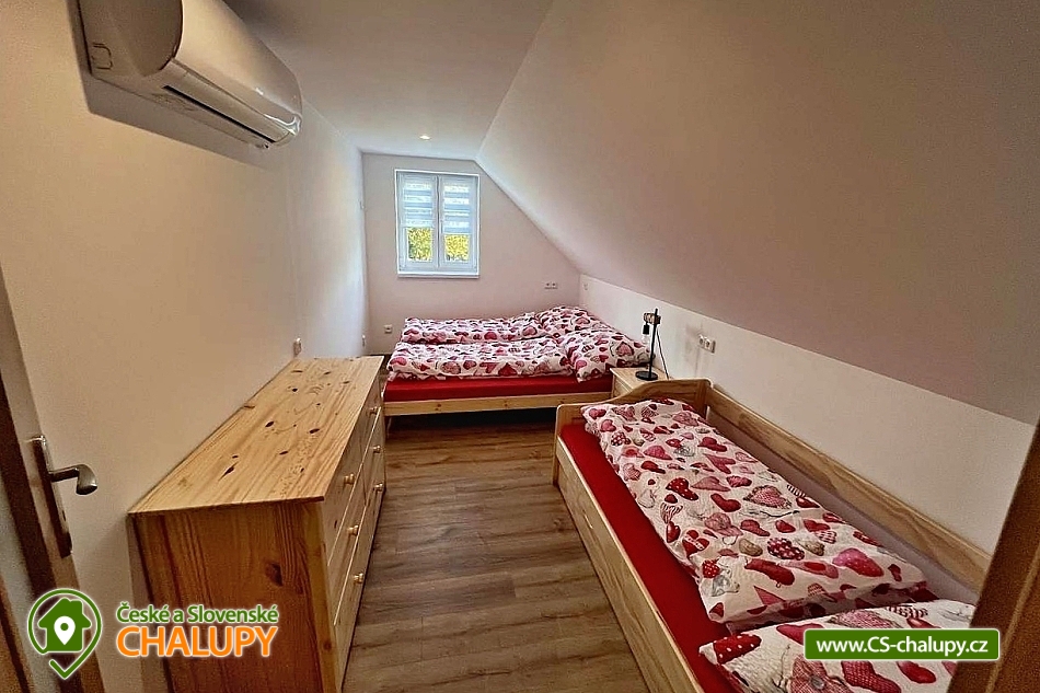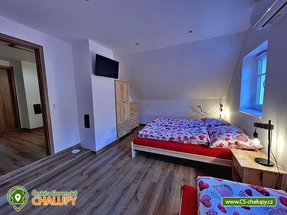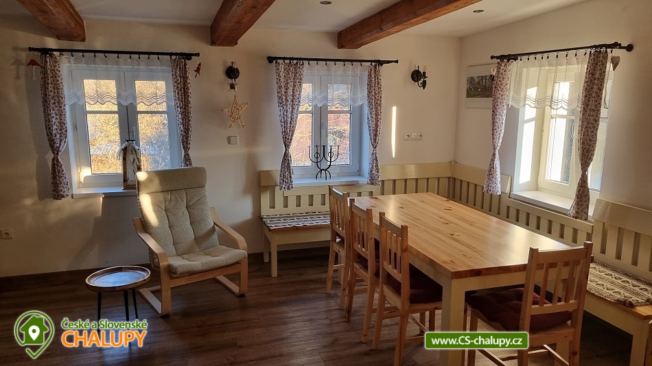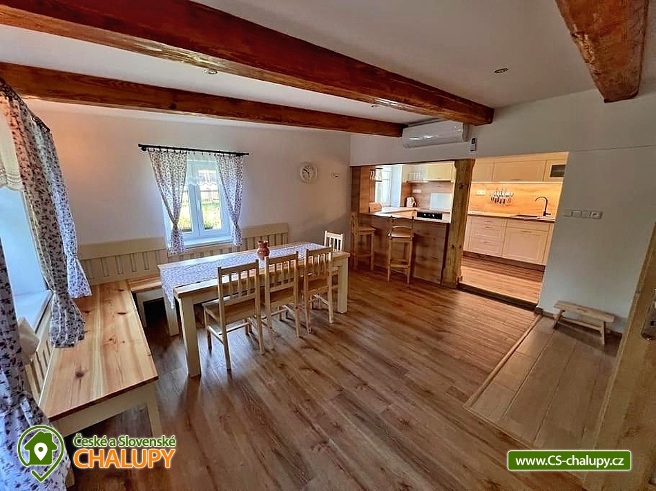 Chalupa s bazénem a hernou se nachází v Moravskoslezském kraji, v malebné vesničce Kozlovice, dědině valašských Vojvodů v podhůří moravskoslezských Beskyd, jež je klidnou zastávkou v dnešní uspěchané době. Chalupa leží 3 km od zříceniny hradu Hukvaldy, 10 km západně od města Frýdlant nad Ostravicí, 12 km jihovýchodně od Příboru a 14 km jihozápadně od Frýdku - Místku. Nabízíme týdenní a víkendové pobyty. Chalupa je po celkové rekonstrukci a poskytuje ubytování pro až 12 osob ve 3 ložnicích. Je kompletně zařízená pro chvíle pohody a odpočinku, a to především během rodinných dovolených v letním či zimním období. Každý host se u nás bude cítit jako doma. V plně vybavené chalupě najdete vše, co potřebujete pro ničím nerušený pobyt. Chalupa disponuje plně vybavenou kuchyní (sklokeramická deska, trouba, myčka, mikrovlnná trouba, varná konvice, veškeré nádobí a pračka). V přízemí se dále nachází stylově vybavená jídelna, obývací pokoj pro 10 až 12 osob s velkým stolem, televizí a plně funkčním krbem. V přízemí se dále nachází koupelna se sprchovým koutem a toaletou a také společenská místnost se stolem a krbem, která je také až pro 12 osob. Na patře jsou tři samostatné ložnice. Jedna s manželskou postelí, a dvěma samostatnými postelemi. V dalších dvou jsou vždy tři samostatné postele a možnost jedné přistýlky. Na patře je také k dispozici druhá toaleta. Vstup do všech třech ložnic je možný jen po Mlynářském schodišti. Koupelna s toaletou v přízemí, a druhá toaleta v patře. Vytápění: Vytápění je možné tepelným čerpadlem a krbem s rozvodem do všech pokojů. Zahrada chalupy disponuje krytým posezením pro 12 osob, ohništěm s posezením a grilem s kompletním vybavením. Čas na prostorné zahradě si můžete zpestřit hraním kuželek. K chalupě také patří stodola, která je vybavenou vířivkou a hernou, skládající se z kulečníku, profi fotbálku, stolního tenisu či nástěnných šipek. Celá chalupa je klimatizovaná a pokrytá signálem WIFI. Výlety: Z Kozlovic se můžete vydat na tři krásné Ondřejníky – Skalku, Solárku a Starou Úboč, ze kterých je vidět do širého okolí i na nejvyšší horu Beskyd – Lysou horu. Vesnička oplývá mnohými stráněmi, pastvinami a každý domeček je do ní pěkně zasazen. V okolí je mnoho turistických cílů, ke kterým se dostanete i na jízdním kole, např. zřícenina hradu Hukvaldy 3 km, kopřivnické automobilové muzeum 10 km, jeskyně Šipka 13 km, rozhledna Štramberská Trúba 14 km, Pustevny se sochou boha Radegasta, Lanový park Tarzánie 14 km a Valašské muzeum v přírodě 20 km. Těšíme se na Vás u nás.
