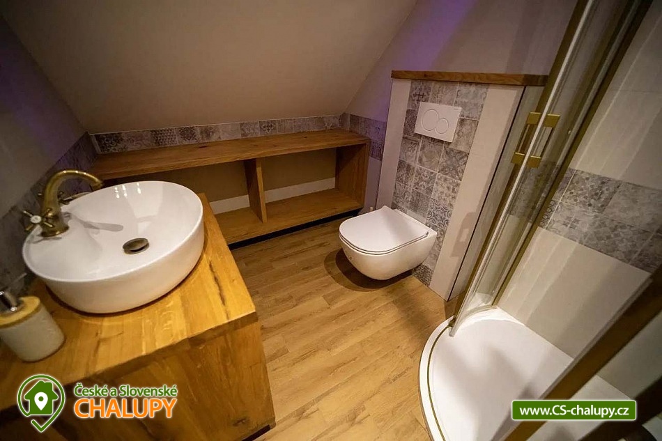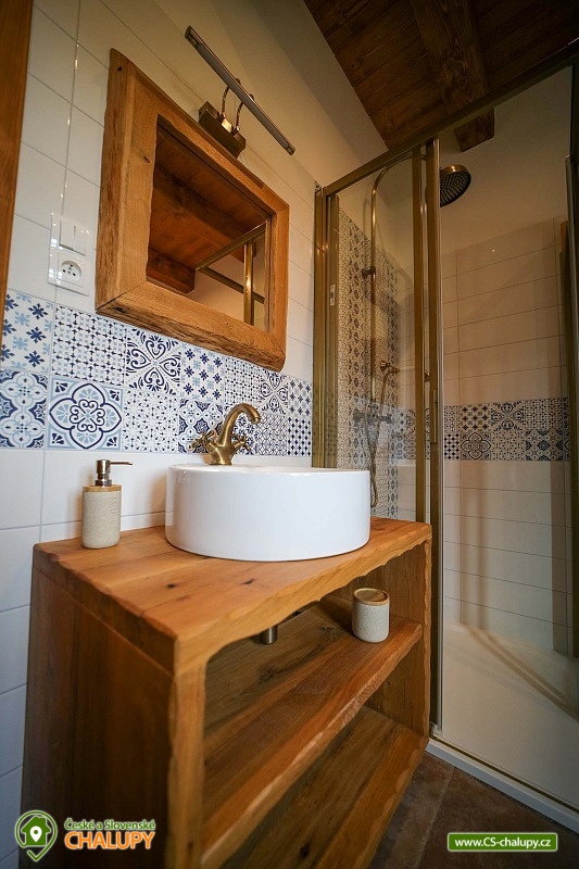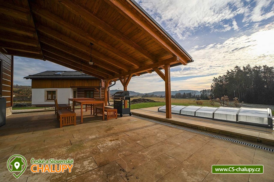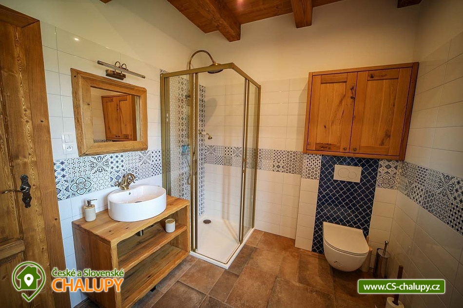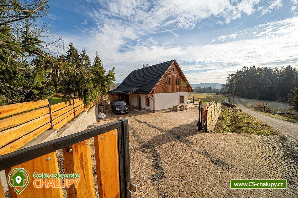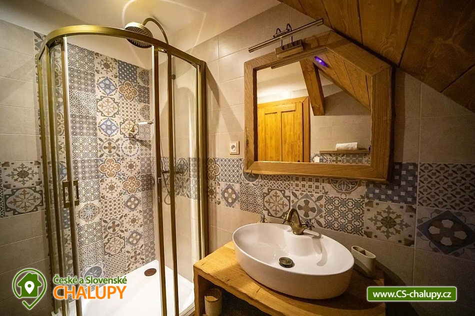 Luxusně zařízená chalupa se nachází v samotném srdci Českého ráje, v malebné části obce Mladějov, nedaleko Prachovských skal. Svoji lokalitou je tak ideálním místem pro turistiku, cyklistiku i zasloužený odpočinek. Těšit se můžete na vyhřívaný bazén, terasu, rozlehlou zahradu i dostatek soukromí. Chalupa poskytuje ubytování pro 15 osob ve 4 ložnicích. V prvním patře se nacházejí tři prostorné ložnice. Modrá a červená ložnice jsou 4-lůžkové (1x manželská postel, 1x jednolůžko, 1x přistýlka) a žlutá ložnice je 2-lůžková (2x samostatné jednolůžko) s možností přistýlky pro dítě. Dále je k dispozici obytné podkroví se čtyřmi matracemi (pohodlně se zde vejdou čtyři dospělé osoby nebo více dětí), které je navrženo jako zábavný prostor pro děti, kde si mohou hrát. K dispozici je dětská postýlka. Každá ložnice je vybavená TV a vlastní koupelnou se sprchovým koutem, umyvadlem a toaletou. V přízemí je navíc velká koupelna s toaletou, pračkou a žehličkou. Pro společné chvíle je k dispozici prostorný obývací pokoj, jehož dominantou jsou stylová kachlová kamna, která dodávají chalupě příjemnou atmosféru. Dále je zde k dispozici pohovka, využitelná jako přistýlka pro jednu osobu, TV a společenské hry. Na obývací pokoj volně navazuje plně vybavená kuchyň (indukční varná deska, elektrická trouba, mikrovlnná trouba, rychlovarná konvice, lednice, mrazák, myčka a nádobí) s posezením u masivních dubových stolů a TV. Vytápění celé chalupy je řešeno podlahovým topením, v obývacím pokoji kachlovými kamny s krbem. V celém objektu je k dispozici WI-FI připojení na internet. Chalupu obklopuje rozsáhlý travnatý pozemek s možností parkování na oploceném, kamerami střeženém parkovišti přímo u objektu (max. 6 aut). Společný volný čas je možné trávit ve velké zčásti zastřešené terase s dřevěným posezením a zahradním grilem. Možnost využít i ohniště. Dominantou zahrady je vyhřívaný krytý bazén s protiproudem a vířivkou zabudovanou ve schodech bazénu (k dispozici od dubna do září). Relaxovat můžete na venkovních lehátkách. Ve volných chvílích si můžete zahrát badminton a pétanque. Ti nejmenší ocení hřiště s houpačkou, skluzavkou a trampolínou, dospělí ocení výčepní zařízení. Pro cyklisty je zde možnost úschovy kol v kolárně. V okolí chalupy možnost turistiky, cykloturistiky, koupání, lyžování, běžkování, rybaření či houbaření. Mezi možnosti koupání patří např.: koupaliště Sobotka, rybník Nebákov, koupaliště Sklář - Ostružno, Jinolické rybníky, rybník Věžák, koupaliště Kníže - Jičín, Roudenský rybník, Aqua Centrum Jičín nebo koupaliště Sedmihorky. V zimě jsou výhodou blízká lyžařská střediska např.: Ski areál Kozákov, Ski areál Zvičina, Ski areál Paseky nad Jizerou, Ski areál Šachty, běžecký areál v Lomnici nad Popelkou atd. K výletům v okolí láká: Prachovské skály, zřícenina hradu Trosky, rybníky Nebákov a Podsemín, zámek Humprecht, hrad Kost, zámek Hrubá Skála, Šolcův statek nebo Jičín - město pohádek. Těšíme se na Vás u nás.