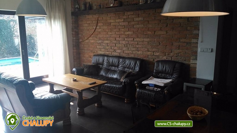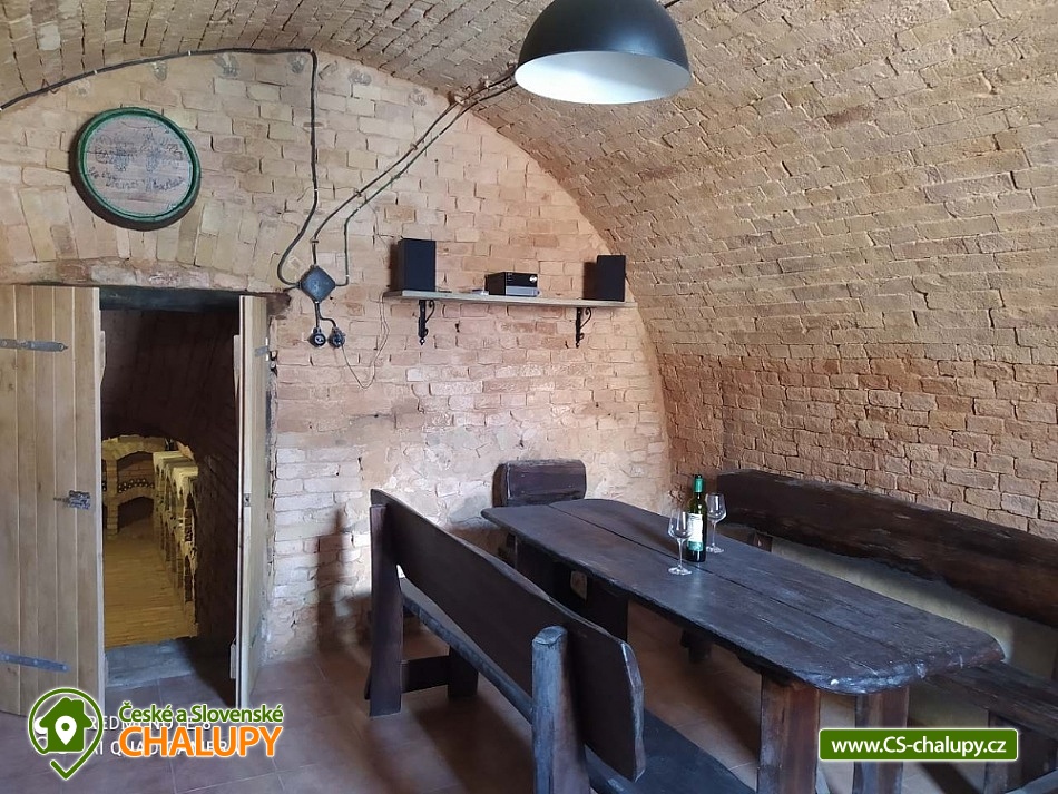Chalupa s bazénem a vinným sklepem se nachází v samém srdci vinařské oblasti jižní Moravy. Součástí pronájmu chalupy je venkovní bazén se slanou vodou, vinný sklep s posezením (a skvělým vínem) a 2 terasy (prosluněná terasa u bazénu a severní stinná terasa s grilem). Chalupa poskytuje ubytování pro až 10 osob ve 3 ložnicích. POPIS: V přízemí se nachází ložnice s manželskou postelí a s vlastním vstupem na terasu k bazénu. V patře jsou dvě ložnice o kapacitě 5 a 3 lůžka. Součástí přízemí společných prostor je plně vybavená kuchyně, jídelna a obývací pokoj se vstupem na terasu k bazénu. Sociální zařízení: V přízemí je koupelna se sprchovým koutem a vanou. Samostatné WC. V patře je koupelna se sprchovým koutem a WC. Vytápění: V přízemí je podlahové vytápění a také krb. V patře radiátory. Parkování: 3 parkovací místa na pozemku u chalupy. Okolí Čejkovic je protkáno sítí cyklostezek. Po nenáročné trase vhodné i pro rodiny s dětmi můžete projet celý Lednicko - valtický areál. Dále doporučujeme navštívit: Masarykovo muzeum - domek T.G.M., Zámecká Galerie vín - Hotel Zámek, Prohlídka Templářských sklepů, Větrný mlýn - 5 km, Němčičky - venkovní koupaliště, Mikulčice - národní památník "Velká Morava", Lednický zámek a zámecký park, Valtický zámek a Národní salón vín - Valtice, Strážnický zámek a skanzen, Petrov - areál vinných sklepů Plže, Milotický zámek a Aqua park Pasohlávky. Těšíme se na Vás u nás.