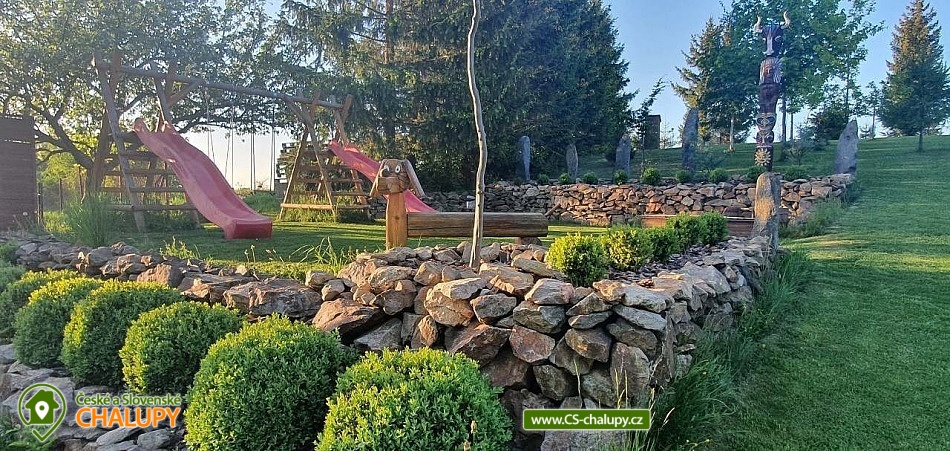 Chalupa s bazénem a vířivkou - Toulovcovy Maštale se nachází na kopci nad vesnicí s krásným výhledem na okolí v malebném prostředí Žďárských vrchů, kde je panenská příroda, čerstvý vzduch a klid. Leží v obci Česká Rybná a nabízí ubytování pro až 9 osob ve 3 ložnicích (1x dvoulůžková, 1x třílůžková a 1x čtyřlůžková). Všechny ložnice se nacházejí v prvním patře chalupy. Po domluvě předem lze zaopatřit také dětskou postýlku. Chalupa má plně vybavenou kuchyň s vestavěnou troubou, mikrovlnkou, americkou lednicí s výrobníkem ledu a myčkou nádobí. Jsou zde samozřejmě k dispozici příbory, talíře, hrnky, skleničky a vše co potřebujete na vaření. Kuchyň je propojena s obývacím pokojem s TV, DVD přehrávače a krbovými kamny. Wi-Fi Internet v celém objektu. Sociální zařízení se nachází v přízemí, kde je umyvadlo, rohová vana a toaleta. Vytápění chalupy zajišťuje krb, ze kterého proudí teplo po celém objektu i do ložnic v patře. Dostupnost autem je možná po celý rok a parkoviště pro až 5 aut je k dispozici u chalupy. V létě je k dispozici zapuštěný bazén o velikosti 6,5 m, prostorné zastřešené posezení s grilem, vířivka, dětské hřiště a trampolína. Vše je na svažitém pozemku o velikosti 3000 m, který je dostatečně velký pro různé aktivity. Okolí je jako stvořeno pro turistiku, cyklistiku a relax. Krajina Žďárských vrchů je protkána stovkami kilometrů turistických i cyklistických tras. Chalupa je určená pro klidnou a ničím nerušenou dovolenou. V letních měsících máte možnost využít zapuštěného bazénu. V zimním období je snadno dostupných několik sjezdovek Svratka, Polička, Jimramov a SKI Hlinsko. Za chalupou ve vzdálenosti 3 km se nachází Toulovcovy maštale - malé skalní bludiště vytvořené z několika rozsedlin a skalních bloků je výbornou volbou pro celodenní výlet ať už na kole či pěšky. V okolí do 5 km je nespočet rozhleden, rokokový zámek - Nové Hrady s překrásnými zahradami. Dále pak 10 - 20 km známá Litomyšl, Polička, Veselý kopec a pohádková vesnička Podlesíčko. Chalupa je určená jak pro rodiny s dětmi, tak i pro partu přátel. Zajisté zde zažijete krásné chvíle a doufáme, že se k nám budete rádi vracet. Těšíme se na Vás u nás.