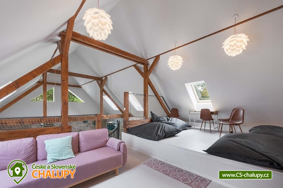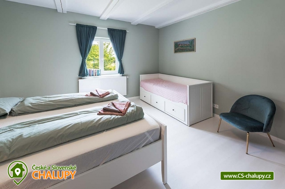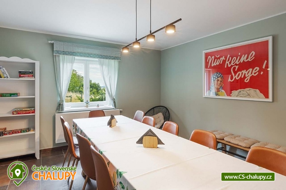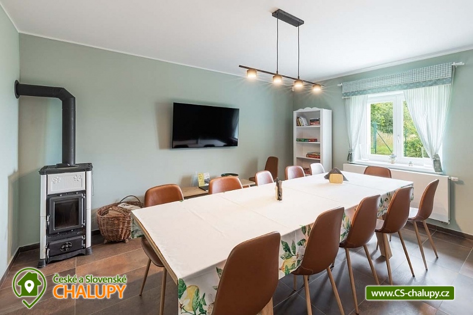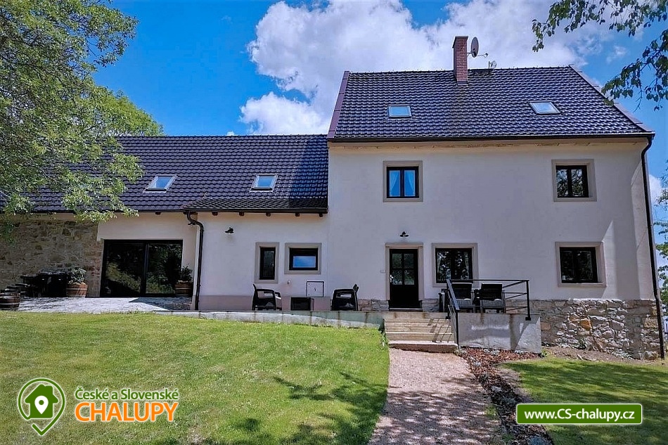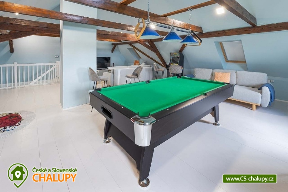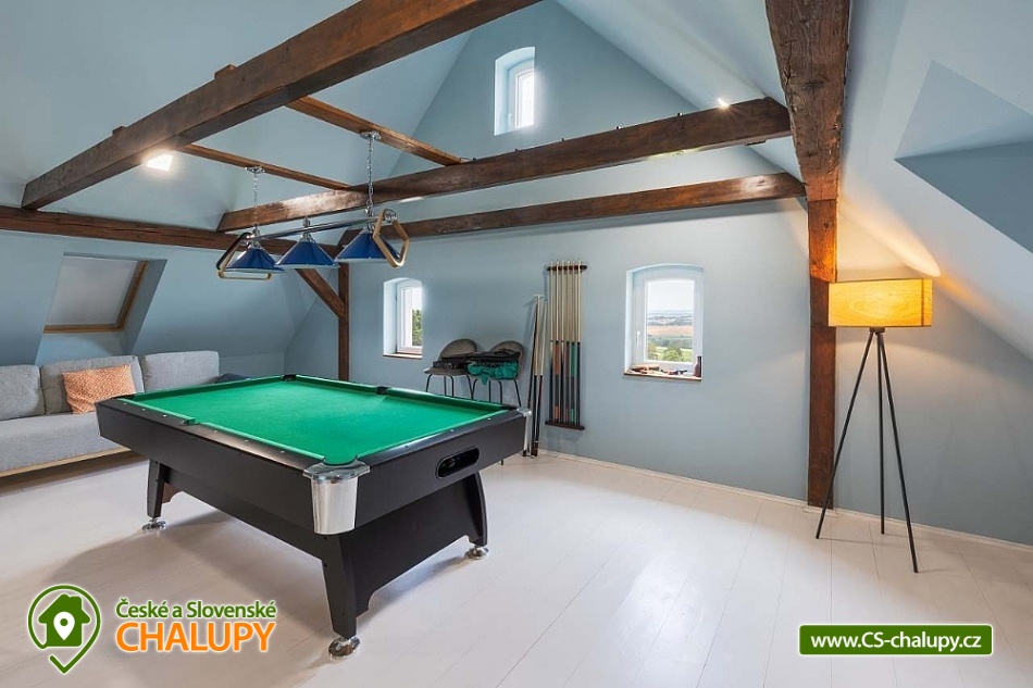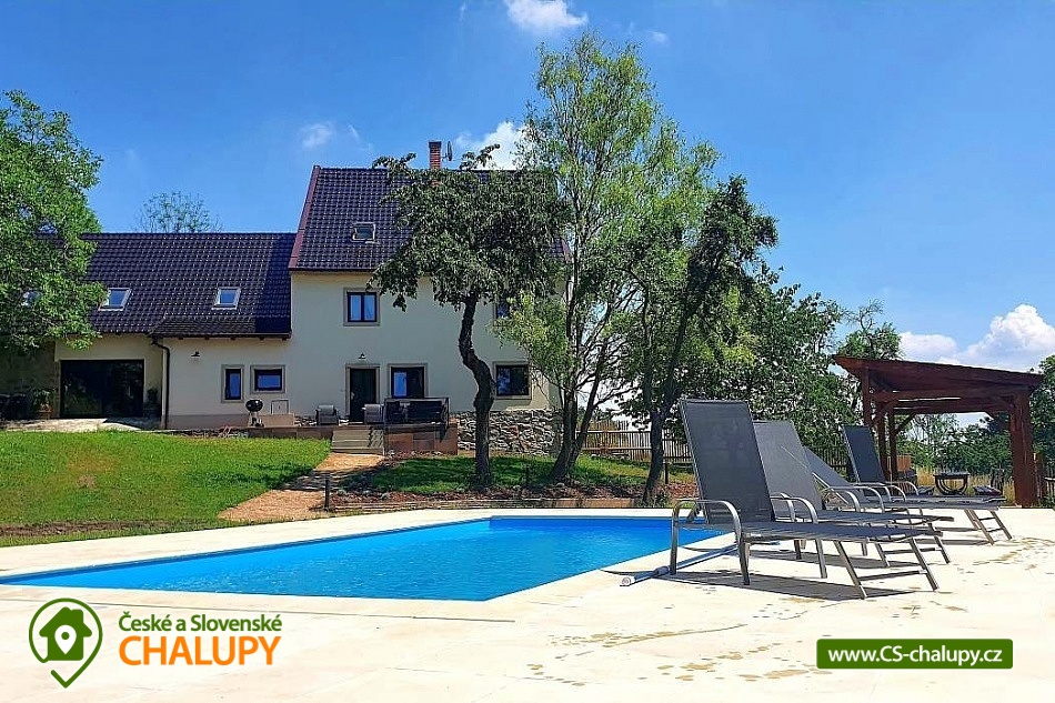 Chalupa s vyhřívaným venkovním bazénem a wellness (vířivka, posilovna a sauna) v CHKO České středohoří, obec Horní Chobolice. Objekt je ze severní části chráněn lesíkem a v jižní části pozemku je studánka obklopená keři. Pozemek díky tomu skýtá naprosté soukromí. Chalupa poskytuje ubytování pro až 14 osob v celkem 4 ložnicích. V přízemí vás uvítá prostorné zádveří se vstupem do krásné, plně vybavené kuchyně s výhledem do zahrady a na bazén. Na kuchyň navazuje veliká jídelna s krbovými kamny. V přízemí se také nachází 1.ložnice s manželskou postelí a rozkládací pohovkou pro 2 osoby. Jsou zde 2 elegantní koupelny, každá s WC a sprchovým koutem. První patro nabízí TV prostor s rozkládacím gaučem a 2 ložnice. První ložnice: 1 manželská postel s možností přistýlky v podobě rozkládací pohovky pro 2 osoby - po domluvě. Druhá ložnice: 1 manželská postel rovněž s možností přistýlky v podobě rozkládací pohovky pro 2 osoby - po domluvě, koupelna s WC a sprchovým koutem. Podkroví má velkorysý prostor a nabízí nejen nádherný výhled do okolí (hora Říp, Hazmburk), ale i kulečník, Arcade console, TV, PlayStation 5, a hračky. Prostě dokonalá herna pro děti i dospělé. V případě, že děti nebudou chtít toto úžasné místo opustit, mohou zde přespat na 2 rozkládacích gaučích (celkem 4 lůžka). V každé ložnici najdete vybavenou knihovnu. Vytápění zajišťuje tepelné čerpadlo a krbová kamna, ve wellness a v koupelnách podlahové vytápění. Parkování je možné přímo na oploceném objektu pro 4 auta, venku u objektu pro další 2 auta. Největší důraz jsme kladli na to, aby interiéry oplývaly moderním, ale zároveň útulným designem. Chalupa je ideální pro rodiny a skupiny přátel, kteří si přejí zažít luxusní odpočinek. Hostům jsou k dispozici vyhřívaný venkovní bazén, vířivka, posilovna, sauna i herna s kulečníkem. Na zahradě se nachází vyhřívaný bazén 8x4m, altánek, ohniště a zahradní nábytek. Nad zahradou je pak soukromý lesík. Celý areál je oplocen. Možnost domluvit snídaně a večerní degustace v dalším objektu (cca 200m od chalupy). Restaurace je v nedalekém Úštěku. Nejblíže chalupy je hora Sedlo, která je právem považována za chrám přírody. Pěšky jste pod jejím úpatím za 10 minut a na její vrcholek, který se tyčí v nadmořské výšce 726m, se podíváte za celkem akceptovatelnou hodinku. Po cestě nahoru potkáte tmavě šedou čedičovou horninu trachybazalt, která utváří místní skály. Sedlo je čtvrtou nejvyšší horou Českého středohoří a celý jeho vrchol o rozloze 42,2 ha je chráněn jako národní přírodní rezervace Sedlo v CHKO České středohoří. Ten výhled je k nezaplacení, to vám zaručujeme.