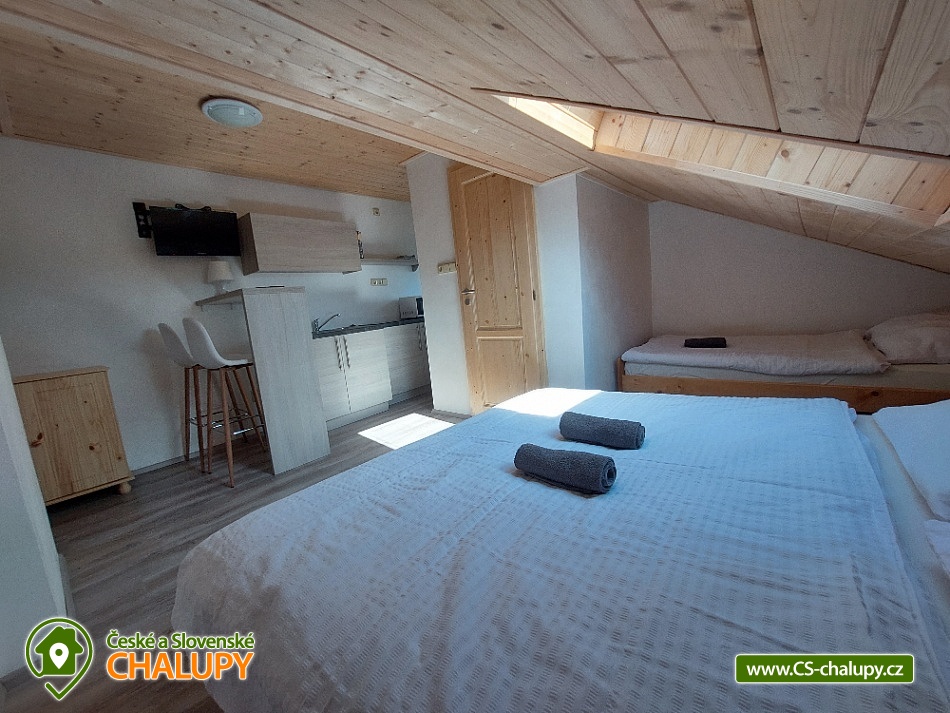 Chalupa s bazénem a wellness leží na hranici chráněné krajinné oblasti Železné hory a Žďárské vrchy na Vysočině. Ubytování s celkovou kapacitou až 36 lůžek v těchto 7 apartmánech: čtyři 2-lůžkové pokoje s manželskou postelí, dva 4-lůžkové pokoje s manželskou postelí a palandou. Celkem pět 2-lůžkových apartmánů (č. 1, 2, 3, 5 a 7) s manželskou postelí, jeden 4-lůžkový apartmán (č. 6) se dvěma manželskými postelemi, jeden 6-lůžkový apartmán (č. 4) s manželskou postelí a palandou + dvěma přistýlkami na pohovce. Pokoje jsou ideální pro ubytování větší skupiny hostů. Sdílejí mezi sebou útulnou společenskou místnost s televizí, gaučem, jídelním posezením a společenskými hrami. Plně vybavená kuchyň potěší milovníky kvalitní domácí stravy. Zařízená je elektrickým sporákem, elektrickou troubou, mikrovlnnou troubou, rychlovarnou konvicí a ledničkou. V každém pokoji najdete soukromou koupelnu se sprchovým koutem a toaletou. Apartmány č. 1 a 2 mezi sebou sdílejí společný kuchyňský kout na chodbě (mikrovlnná trouba, rychlovarná konvice, chladnička). Ostatní apartmány disponují vlastními kuchyňskými kouty (mikrovlnná trouba, rychlovarná konvice), využít můžete i společnou elektrickou plotýnku a ledničku. Apartmán č. 4 je největší, má vlastní obývací prostor s pohovkou (přistýlka), televizí a společenskými hrami. Pěkné koupelny se sprchovým koutem a toaletou jsou samozřejmostí. Vzácné společné chvíle strávíte ještě v prostorné společenské místnosti s barem, televizí, pohovkou, jídelním posezením a společenskými hrami (malý billiard, stolní fotbal, šipky). Dokonalý požitek si dopřejete i díky našemu wellnessu s vířivkou, masážní sprchou, finskou a infra saunou. Pomocí posilovacího stroje si zacvičíte, kola a lyže odložíte v úschovně. V případě potřeby Vám zajistíme také zasedací místnost. V celém objektu jsme zajistili bezplatné WiFi připojení na internet. Pěkné počasí Vás vyláká do naší krásné zelené zahrady. Během horkých letních dnů se osvěžíte ve venkovním bazénu, zahrajete si tenis či volejbal. Po sportovních aktivitách si můžete posedět u altánku a terase nebo na zahradní houpačce. Po večerech Vás zahřeje oheň z krbu, nad ohništěm opečete slaninu i špekáčky. Na Vaše ratolesti jsme samozřejmě nezapomněli. Dosytosti se vyřádí v dětském koutku nebo na hřišti s pískovištěm, houpačkou, prolézačkami a skluzavkou. Svá auta zaparkujete přímo u objektu. Fantastická poloha chalupy Vás vyžene na toulky po okolí. Romantické procházky, houbaření, turistika, cykloturistika, poznávání přírodních krás, atrakcí a památek, nudit se určitě nebudete! Doporučujeme návštěvu Zámku Chotěboř a Přibyslav, Chráněné krajinné oblasti Železné hory, Přírodní rezervace Polom, Štáflovej bašty a chalupy, Betléma Hlinsko i Modelového království Žďár nad Sázavou. V letních měsících se vykoupete v Břevnický nádrži, na Koupalištích Přibyslav, Přehradě Hamry, Koupališti Havlíčkův Brod, Vodní nádrži Pilská a jiných. Lyžaři si zase zamilují zasněžené svahy přilehlých lyžařských středisek - Ski areál Svatá Anna, Ski Hluboká, Hlinsko, Lyžařský areál Vysoká atd .. Pevně věříme, že pobyt na Chalupě si skutečně užijete, příjemně si odpočinete a opět se k nám s radostí vrátíte! Těšíme se na Vaši návštěvu!