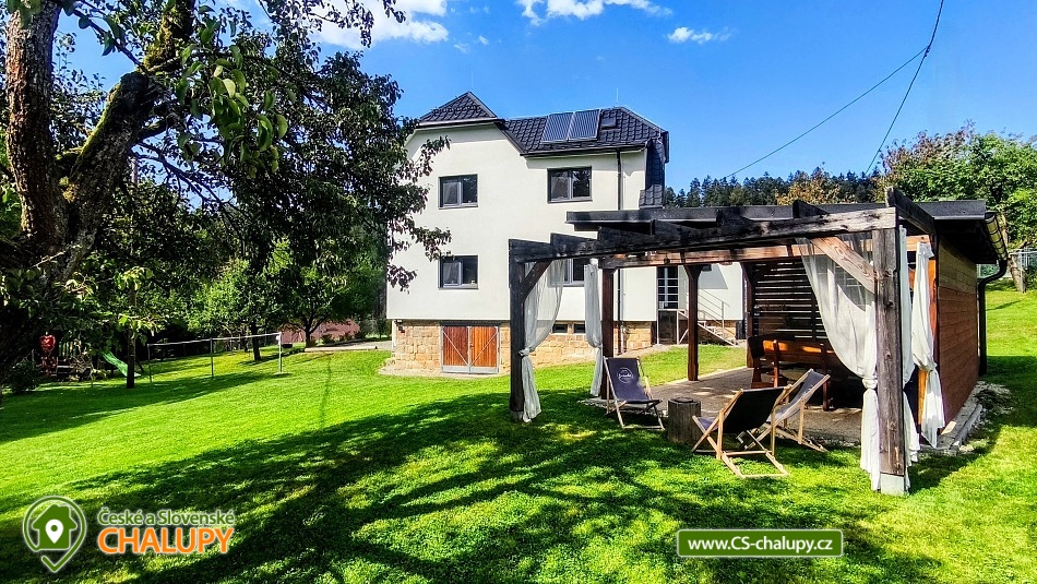 Chalupa s bazénem se nachází v horské obci Horní Bečva, která je turisticky velmi oblíbenou oblastí Beskyd. Chalupa v bezprostřední blízkosti přehrady (150 m) a okolních jehličnatých lesů, umístěna ve velké oplocené zahradě se sade. Na zahradě nadzemní bazén se slanou vodou. Chalupa disponuje společenskou místností, která je umístěna v přízemí. Obývací místnost je pohodlně propojena s prostornou kuchyní, kde najdete veškeré vybavení. Místnost má dva velké stoly s lavicemi a židlemi, pohovku, televizi s USB portem, WI-FI. Kuchyň je vybavena indukčním sporákem s odsavačem, troubou, myčkou, mikrovlnkou, lednicí, kávovarem na ESE pody, rychlovarnou konvicí. K dispozici je nádobí, hrnce, tyčový mixér, sendwičovač a ostatní kuchyňské potřeby. Vedle kuchyně se nachází komůrka s policemi pro uložení veškerých potravin. Dále je v přízemí koupelna se sprchovým koutem, umyvadlem a WC. Veranda v přízemí nabízí ještě jedno samostatné WC s umyvadlem. V přízemí je také jedna ložnice se 4 lůžky, tedy s manželkou postelí a poschoďovou postelí, skříní, stolkem a 2 stoličkami. V 1.patře se nachází další 3 čtyřlůžkové ložnice, vybavené stejně jako ložnice v přízemí. Také zde najdete jednu koupelnu se sprchovým koutem, umyvadlem a pračkou a další samostatné WC. Na chodbě je pro malé děti hrací minikoutek. Pro vaše nejmenší ratolesti je připravena dřevěná jídelní židlička, nočník, stolička, dětské talíře a další. V suterénu máme prostorný stojan na kola a lyže. Vytápění domu je zajištěno tepelným čerpadlem doplněným solárními panely určenými pro ohřev vody. Na zahradě najdete prostornou pergolu (6×4 m) s posezením. Pergola je vybavena lavicemi se stolem, grilem a elektrickou přípojkou. Opékat můžete také u ohniště. Na zahradě najdete koutek pro děti, kde je dřevěný domeček se skluzavkou, hračkami, pískovištěm a houpačkou. Dále venkovní badminton s raketami a houpací síť. Kouzelná příroda Beskyd nabízí vše pro tolik oblíbenou pěší turistiku. Malebné hory, lesy a údolí řeky Bečvy jsou ideálním místem pro výlety do okolí jak pro rodiny s dětmi, tak pro milovníky horské turistiky nebo sběratele hub. Vyhlídková stezka na Pustevnách se nachází cca 250 metrů od horní stanice lanovky směrem k vrcholu Tanečnica. Vrcholem stezky je 22 metrů vysoká věž, na které se můžete těšit také na skleněnou vyhlídku.