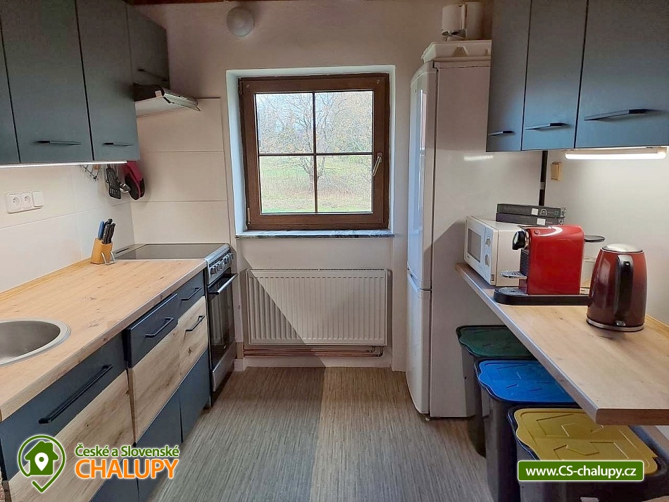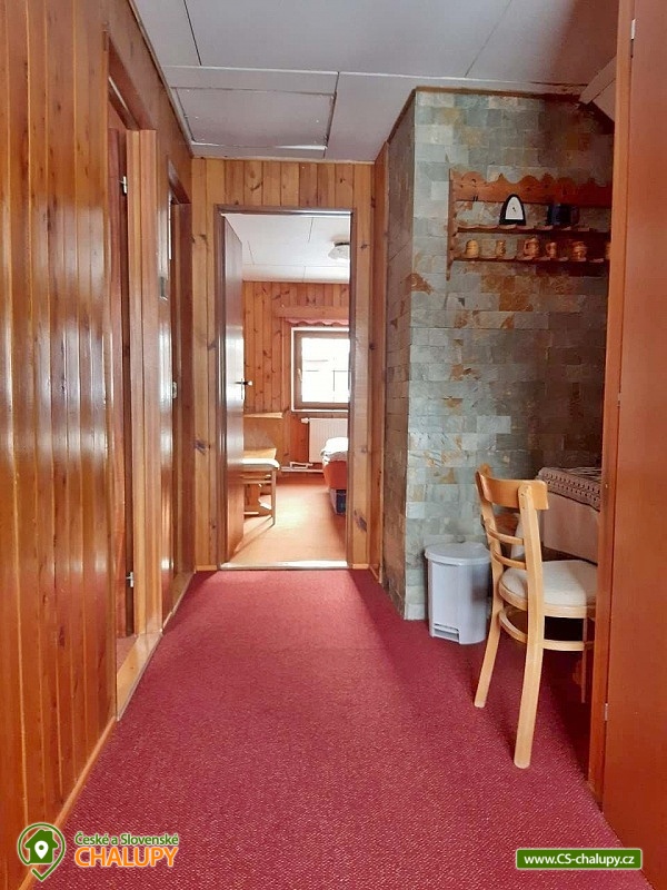 Chalupa s bazénem a saunou pod Červenohorským Sedlem, klidné místo pod hlavním hřebenem Jeseníků, v turistickém středisku u Bělé pod Pradědem. Chalupa nabízí ubytování pro 6-8 osob ve třech ložnicích (2x dvoulůžková ložnice a 1x čtyřlůžková ložnice - palanda a 2x jednolůžko). K dispozici je prostorná obývací místnost s pohovkou a křesly, krbem, TV, jídelním stolem a multifunkčním hracím stolem (kulečník, fotbálek, stolní hokej, šachy a další). V plně vybavené kuchyni najdete nádobí, lednici, mrazák, rychlovarnou konvici, sporák s pečící troubou, mikrovlnnou troubu, myčku a kávovar Nespesso. K dispozici je Wi-Fi připojení a také pračka se sušičkou, sauna, dětská postýlka, židlička, hračky pro děti a ve vstupní hale stolní tenis. Sociální zařízení zahrnuje koupelnu s umyvadlem, sprchovým koutem a WC a dvě další samostatné WC. Objekt má automatické ústřední topení na elektřinu. Parkování možné u objektu pro 3 auta. U chalupy je zastřešená terasa s posezením a na zahradě je venkovní bazén na solární ohřev, ohniště, venkovní krb a dětské hřiště se skluzavkou, pískovištěm, houpačkami a trampolínou. Okolí chalupy je ideálním místem pro relax, turistiku, cykloturistku, lyžování, běžkování a houbaření. Těšíme se na Vás u nás.