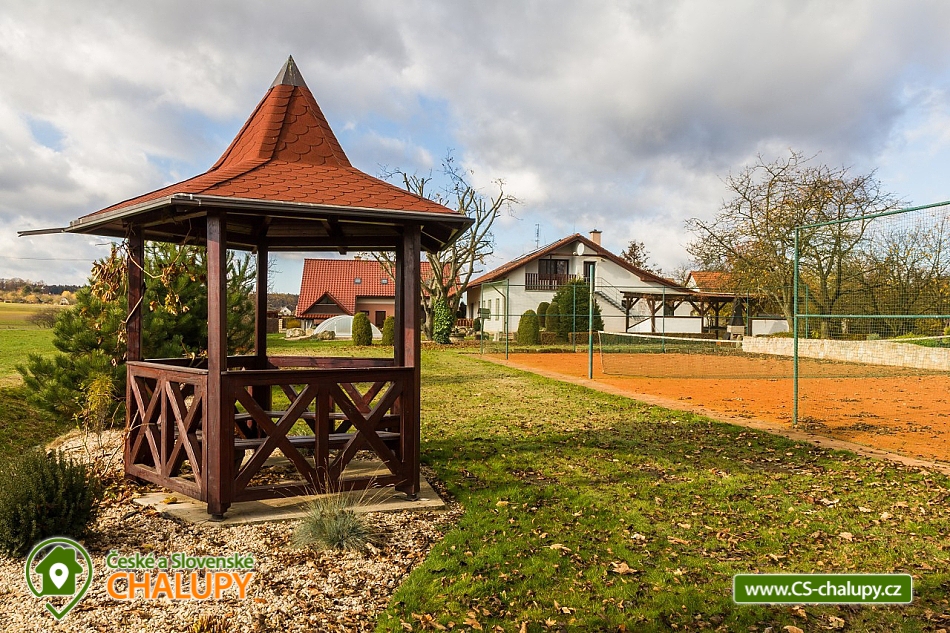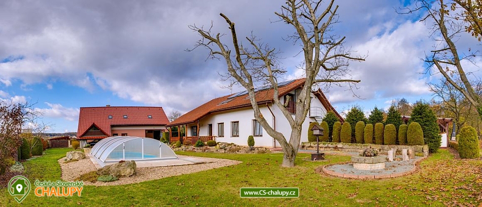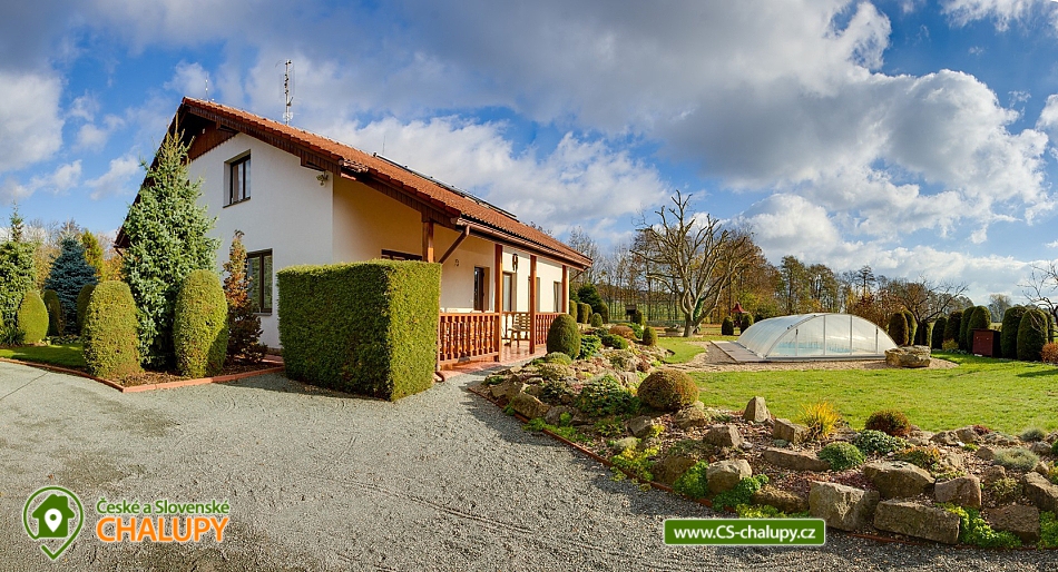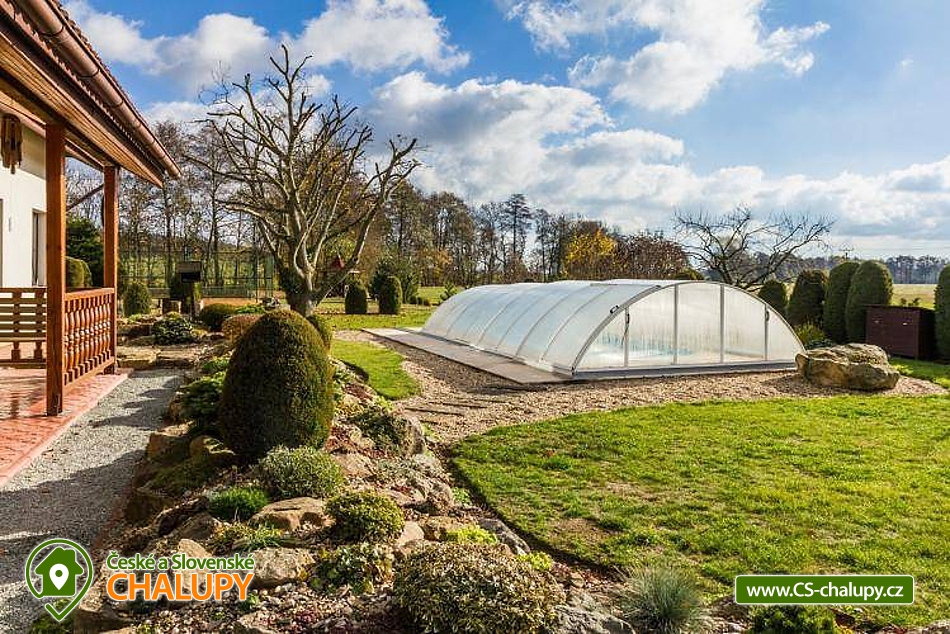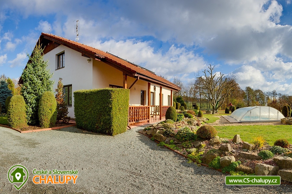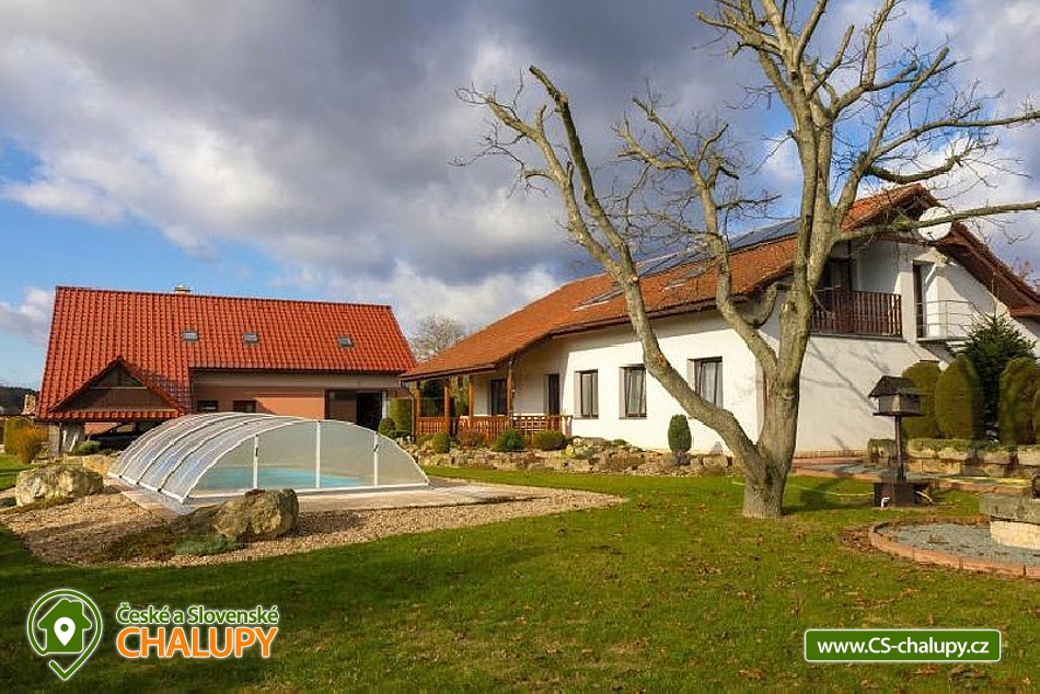 Chalupa s krytým vyhřívaným bazénem v lokalitě Český ráj a Podkrkonoší, poloha uprostřed přírody, obklopené lesy, loukami a poli. Celkem je k dispozici 8 lůžek (2x 4 lůžka), možné jsou 4 (2 + 2) přistýlky. Chalupa je zejména vhodná pro dvě rodiny s dětmi s nabídkou relaxačních a sportovních možností. Výhodou je ohřev bazénu s možností regulace teploty vody (25 - 35 stupňů) dle počasí a koupání již od měsíce květen až do měsíce září. U chalupy se nachází bazén se zastřešením, regulovaným ohřevem a osvětlením, tenisový kurt s altánem a stůl na stolní tenis. K dispozici je hostům i půjčovna jízdních kol. Pro děti se u objektu nachází pískoviště, houpačka, trampolína. Možnost zapůjčit si dětská jízdní kola. Velcí i malí se mohou pobavit u míčových a společenských her. Hostům je k dispozici zahradní gril, krb s udírnou, lávové kameny a nerezová lorna na opékání masa. Pokoje a vybavení objektu: K dispozici jsou celkem 2 ložnice po 4 lůžkách (s možností 2+2 přistýlky). Pro malé děti vám můžeme zapůjčit dětskou postýlku a židličku. Ke každé ložnici přináleží koupelna s WC. Parkování je zajištěné na oploceném pozemku, který poskytuje dostatek parkovacích míst. Společná kuchyně (varná deska, mikrovlnná trouba, rychlovarná konvice, kávovar a lednička). Obývací pokoj je vybaven televizí, satelitem, videopřehrávačem, DVD přehrávačem a možností připojení k internetu. Okolí chalupy nabízí řadu dalších relaxačních a odpočinkových možností, ale také přírodu vhodnou k procházkách - louky, skály a lesy. Nespočet pamětihodností a zajímavých lokalit (Zoo Safari Dvůr Králové, Český ráj - Prachovské skály, Hrad Pecka, v zimě lyžařský vlek nebo pouze 40 km vzdálené Krkonoše). V blízkém okolí je síť cyklotras a turistických stezek, aquapark v Jičíně anebo v Hradci Králové vzdáleném 25km. 5 km od penzionu se nachází krytý bazén v Hořicích a koupaliště v Miletíně. V blízkých Hořicích je k využití mnoho dalších sportovních možností - například sauna, fitness centrum, bowling, squash. V blízkosti objektu je možnost rybaření a projížďky na koních. Pro milovníky adrenalinu je možnost vyhlídkových letů.