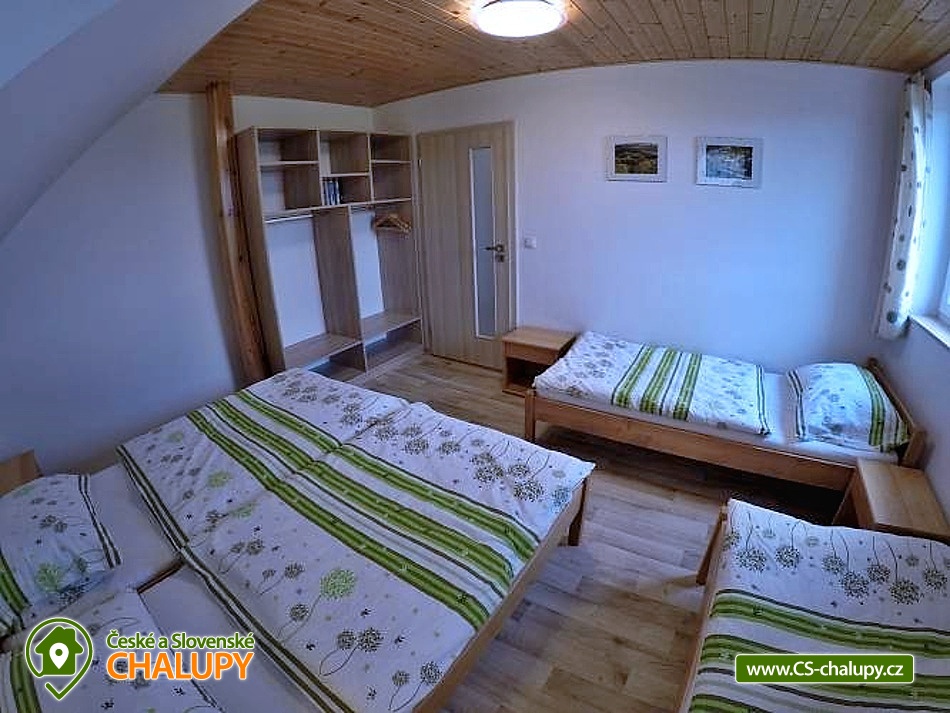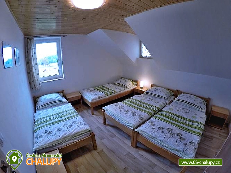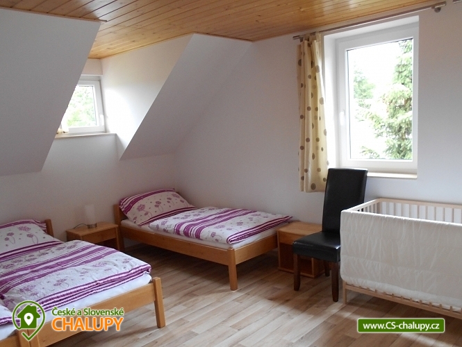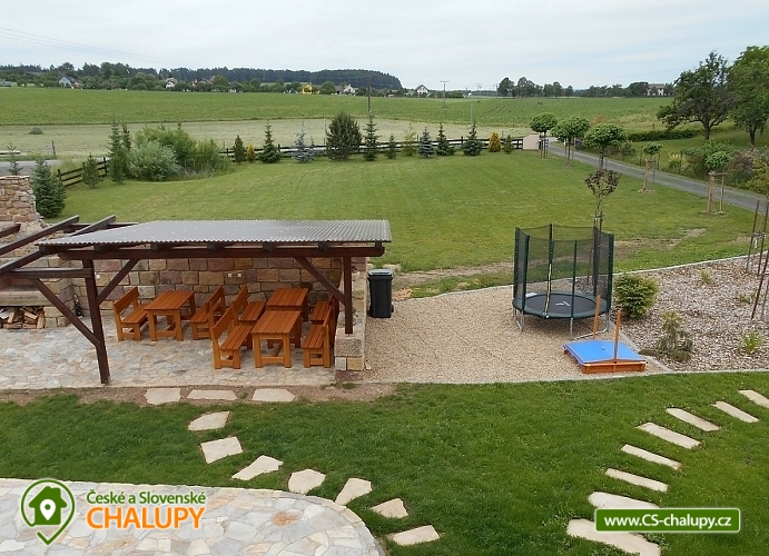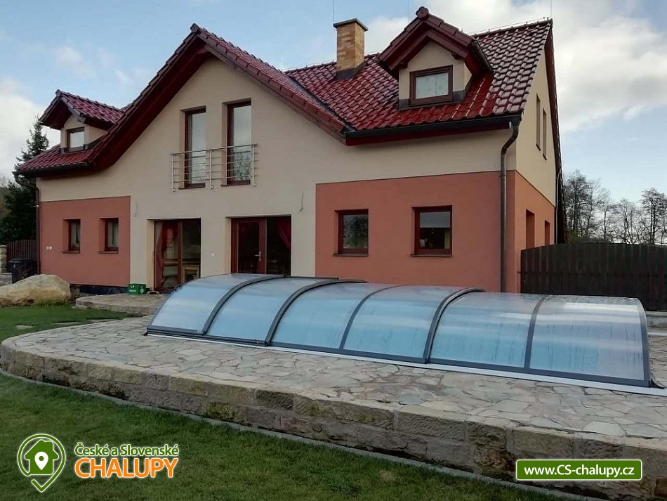 Chalupa s bazénem v lokalitě Český ráj (okres Jičín) a Podkrkonoší (Lázně Bělohrad). Kapacita chalupy je až 12 osob ve 4 ložnicích. Komfortní chalupa se pronajímá vždy jako celek v soukromí 1 skupině klientů. V létě jsou v okolí značené turistické trasy a cyklotrasy s atraktivními cíli (např. hrad Pecka 8 km), v zimě dostupná vyhlášená krkonošská lyžařská střediska. V přízemí chalupy jsou dvě větší místnosti a sociální zařízení. Jedna místnost slouží jako herna (kulečník, stolní fotbálek), druhá pro společná setkání a zábavu. V patře jsou celkem 4 ložnice a všechny zahrnují samostatná lůžka: k dispozici je 2x 2-lůžková ložnice a 2x 4-lůžková ložnice. Je tam také kuchyně s el. varnou deskou, horkovzdušnou troubou, mikrovlnnou troubou, ledničkou, toustovačem a varnou konvicí. V patře je též sociální zařízení, které zahrnuje 2x koupelnu se sprchovým koutem a 2x WC. K dispozici Wi-Fi internet. Vytápění je přímotopy a krbovými kamny. U chalupy je zapuštěný bazén (rozměr cca 3m x 5m), zahradní nábytek, pergola, venkovní krb, stolní tenis, trampolína, houpačka a pískoviště. Pozemek je částečně oplocen, parkování je možné přímo u objektu. Okolí chalupy nabízí řadu dalších relaxačních a odpočinkových možností, ale také přírodu vhodnou k procházkách - louky, skály a lesy. Nespočet pamětihodností a zajímavých lokalit (Zoo Safari Dvůr Králové, Český ráj - Prachovské skály, Hrad Pecka, v zimě lyžařský vlek nebo pouze 40 km vzdálené Krkonoše). V blízkém okolí je síť cyklotras a turistických stezek, aquapark v Jičíně anebo v Hradci Králové vzdáleném 25 km. 5 km od penzionu se nachází krytý bazén v Hořicích a koupaliště v Miletíně. V blízkých Hořicích je k využití mnoho dalších sportovních možností - například sauna, fitness centrum, bowling, squash. V blízkosti objektu je možnost rybaření a projížďky na koních. Pro milovníky adrenalinu je možnost vyhlídkových letů.