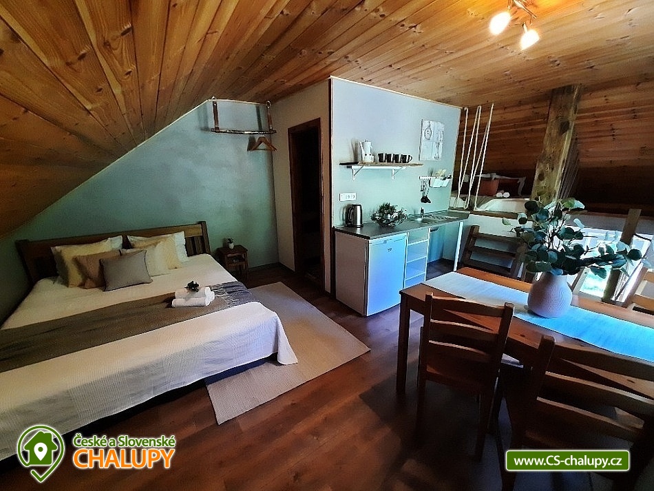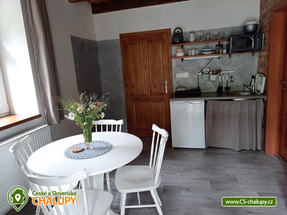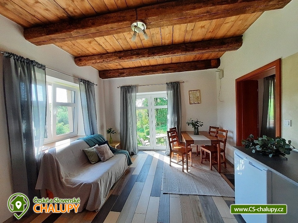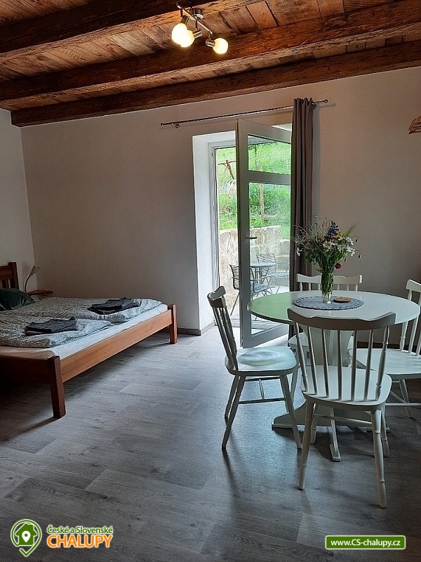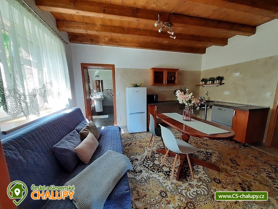 Chalupa s bazénem Turnovsko - ubytování Český ráj. Chalupa v nádherném Českém ráji pro až 18 osob. Možný je pronájem celého objektu 1 skupině osob v soukromí, případně i pronájem 3 apartmánů samostatně. V hlavní části budovy se nachází 3 apartmány. 1. apartmán (1+1) je pro čtyři osoby (+možné dítě do 4 let), 2. apartmán (1+kk) je pro dvě dospělé osoby (+možné dítě do 4 let), 3. apartmán (2+1) je až pro 8 osob. 4. apartmán po dohodě (užívá občas majitel). Možné je i ubytování v samostatné části budovy s vlastním odděleným vchodem v 1+kk až pro 3 osoby a dítě, zde je možné po dohodě zvíře. V první třech apartmánech není zvíře možné (z důvodu možných alergii hostů, kteří se zde ubytují). Všechny apartmány mají vlastní vybavený kuchyňský kout a vlastní koupelnu. Vytápění objektu je tepelným čerpadlem. Parkování přímo u chalupy. Na zahradě je menší hřiště, ohniště, posezení pod přístřeškem, v létě nadzemní bazén. V okolí se nachází velké množství značených turistických tras a cyklotras. K oblíbeným výletním cílům patří rozhledna Kozákov, hrad Valdštejn, Trosky, zámek Hrubá Skála, Malá Skála, zřícenina hradu Rodštejn. Okolí skýtá možností ke koupání například na koupalištích v Turnově, na Zrcadlové Koze v Jizeře v Bělé. Lyžaři jistě ocení blízkost lyžařského střediska Struhy 0,5 km, Kozákov 11 km, Ještěd 30 km, Rokytnice nad Jizerou 40 km. Cyklisté si mohou vybrat z mnoha cyklotras skrze celý Český Ráj s množstvím památek. Těšíme se na Vás u nás.