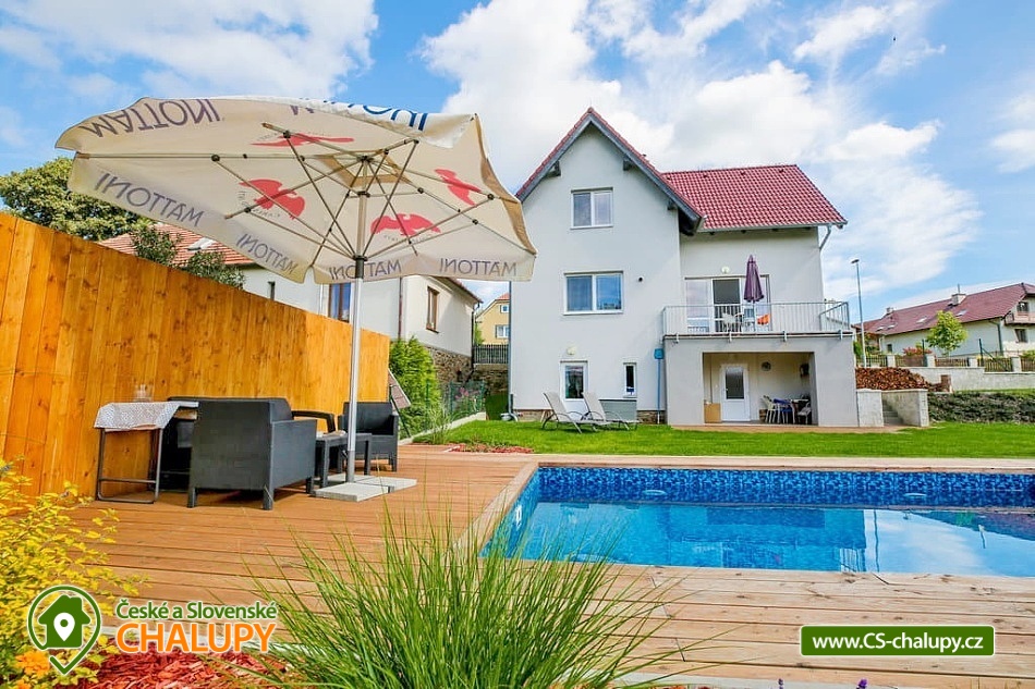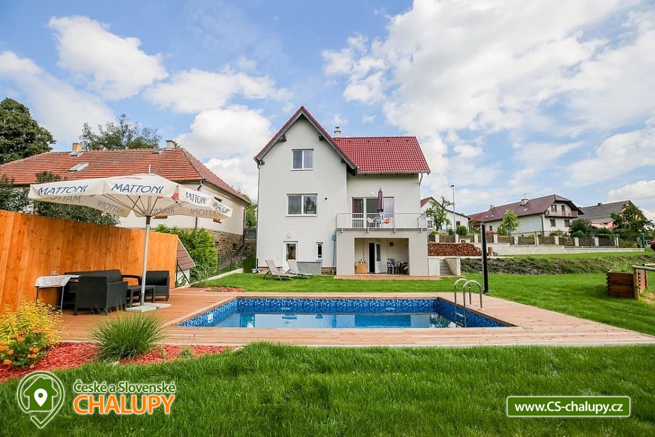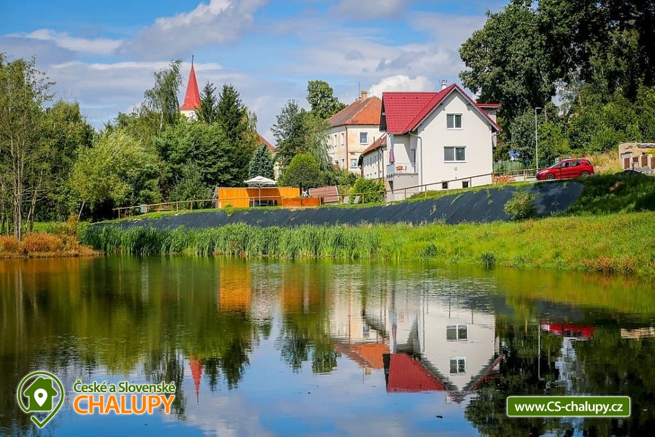 Chalupa s bazénem - Vysočina se nachází na rozmezí Jihočeského kraje a kraje Vysočina, poloha nedaleko Chýnovských jeskyní. Chalupa stojí na břehu obecního rybníka, kousek od lesa a nedaleko měst Tábor, Pelhřimov a Vlašim. Nabízí klidné ubytování s venkovním letním bazénem a výhledem na rybník. Kapacita chalupy je až 11 osob. K dispozici jsou dvě ložnice (1x pětilůžková a 1x šestilůžková), které se nacházejí v patře. Dále pak společenská místnost s krbem a kuchyňským koutem v suterénu a obývací pokoj s kuchyňským koutem, pohodlnou pohovkou a TV v přízemí chalupy. Kuchyňský kout je plně vybaven (nádobí, elektrická trouba, keramická varná deska, mikrovlnná trouba, rychlovarná konvice, lednice, mrazák, topinkovač, toustovač a myčka nádobí). Sociální zařízení zahrnuje jednu koupelnu se sprchovým koutem, toaletou, pračkou a další dvě samostatné toalety v přízemí a suterénu objektu. K dispozici Wi-Fi připojení. K chalupě náleží udržovaný travnatý pozemek s venkovním bazénem, lehátky, ohniště a gril. Další posezení si můžete dopřát na balkoně nebo terase s výhledem na rybník. Celý objekt je vytápěn podlahovým topením, v suterénu jsou krbová kamna. Parkování možné přímo u objektu pro 5 aut a k dispozici jsou také stojany na kola. Okolí láká například k turistice, cykloturistice a houbaření. Tipy na výlety: hrad Kámen, Chýnovská jeskyně, zřícenina hradu Šelmberk a hradu Choustník, zámek Červená Řečice, rozhledna Kovářka, ZOO Tábor. Mezi možnosti koupání patří například: rybník Valcha - Cetoraz, koupaliště Černovice- Klínot, Černý rybník, koupaliště Mladá Vožice, Knížecí rybník, rybník Fejfar, Hejlovský rybník, Koupaliště Pohoda, přehrada Trnávka, rybník Stráž, koupaliště Tábor, vodní nádrž Jordán, bazén Tábor, atd. V zimě si můžete zalyžovat ve skiareálu Monínec, Horní Kouty - Radvánov, lyžařský vlek Křešín. Těšíme se na Vás u nás.