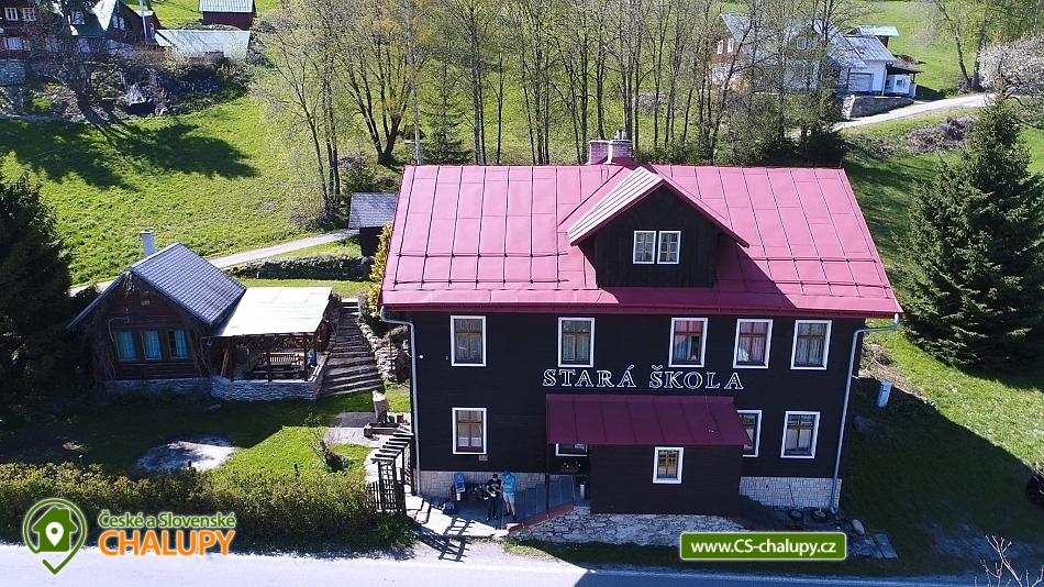 Chalupa Stará škola se nachází v malebné obci Strážné nedaleko místního náměstí v nadmořské výšce 800 m na pomezí Krkonošského národního parku. V chalupě je Vám k dispozici komfortní ubytování s celkovou kapacitou 28 lůžek v celkem 8 pokojích s vlastním sociálním zařízením a WC (1x dvoulůžkový, 2x třílůžkový a 5x čtyřlůžkový). Po celou dobu pobytu je Vám volně k dispozici velká jídelna s kuchyní a krbem. V plně vybavené kuchyni naleznete dvě lednice s mrazákem, myčku, plynový sporák, mikrovlnku, varnou konvici, mixer, toustovač. Dále je Vám k dispozici bar, společenská místnost s kulečníkem, šipkami a finskou saunou. Myslíme i na ty nejmenší hosty, takže je v chalupě k dispozici dětská postýlka a jídelní židlička. Samozřejmostí je WiFi připojení. U chalupy je možné parkovat až 15 aut. Minimální délka pobytu v období sezóny léto (červenec-srpen) je 7 dní, přičemž nástupním dnem je sobota 16:00, ukončení pobytu je rovněž v sobotu v 10:00. V mimosezónních měsících (květen, červen, září, říjen) je možné objednávat i prodloužené víkendové pobyty s minimálním počtem nocí 3 (nástupní den čtvrtek 16:00, odjezd neděle 10:00). Okolí a zážitky: Chalupa se nachází v krásné přírodě a je skvělým místem pro turistiku a cykloturistiku. Krkonošská města a obce nabízí široké množství aktivit a služeb, které zaručeně oceníte s rodinou i partou přátel. Krkonoše jsou protkány tisícovkou pěších tras, které vám umožní poznat zajímavá místa s nezapomenutelnými výhledy, jako je například Stezka korunami stromů. Cyklostezky mají různou obtížnost, jsou dobře značeny a vybaveny orientačními mapami a odpočinkovými místy. Nenechte se odradit velkým převýšením a náročností tras. Určitě lze vybrat i takové, které odpovídají vašim představám a fyzickým možnostem. Těším se na Vaši návštěvu! Milan, majitel Chalupy Stará Škola.