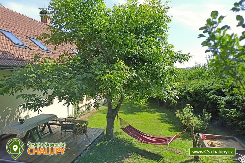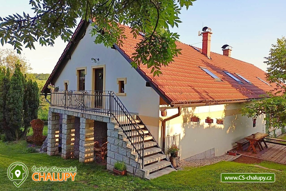 Chalupa s bazénem - Český ráj - se nachází na polosamotě u lesa, v obci Holenice u města Jičín, Hrubé Skály a obce Troskovice. Těšit se můžete na klidné prostředí a krásné výhledy na okolní louky a pastviny. Chalupa nabízí ubytování pro 9 osob. Majitelé jsou součástí objektu. Pro hosty je k dispozici prostorný apartmán (110m²) s vlastním vstupem, terasou a se třemi pokoji. Apartmán lze pronajmout jako celek nebo každý pokoj samostatně. Celkem je k dispozici: třílůžkový pokoj Tábor (1x manželská postel, 1x přistýlka vhodná svou velikostí pro dítě a dětská cestovní postýlka), dvoulůžkový pokoj Trosky (1x manželská postel) a čtyřlůžkový pokoj Kozákov (1x manželská postel, 1x rozkládací postel pro dvě osoby a po domluvě dětská postýlka). Větší soukromí pro pokoje Trosky a Kozákov lze zajistit uzavřením dveří v chodbě vedoucí do obývacího pokoje. Interiér pokojů tvoří restaurovaný nábytek doplněným o nové prvky. Pro všechny ubytované je k dispozici společný obývací pokoj se sedací soupravou, krbovými kamny, třemi jídelními stoly (sezení 2 + 2 + 4) a plně vybavenou, moderní kuchyní (velká lednice, mrazák, elektrický sporák s troubou, myčka, rychlovarná konvice, mikrovlnka a veškeré vybavení pro vaření včetně nádobí od značky Tescoma). V krabicích na lednici najdete fén, utěrky, houbičky apod. K zapůjčení jsou deskové hry, kostky, stavebnice, knihy pro velké i malé, petangue, kroket, badminton, slackline, sítě, houpačky apod. U kamen si lze pro lepší atmosféru rozsvítit hvězdičky. Sociální zařízení: Pokoj Tábor má vlastní koupelnu se sprchovým koutem, WC a umyvadlem. Pokoje Trosky a Kozákov sdílí společnou koupelnu se sprchovým koutem, WC a dvojumyvadlem. Dále je k dispozici jedno samostatné WC. V koupelnách jsou k zapůjčení ručníky. K dispozici je pračka. Vytápění je řešeno ústředním topením. V koupelnách jsou žebříky na elektřinu a v obývacím pokoji krbová kamna. Pro menší děti je připravená židlička ke stolu, nástavec na WC, stupátko k umyvadlu a nočník. V celém objektu je k dispozici WIFI připojení na internet a připojení RJ 45. Venku mohou všichni hosté posedět na terase pod ořechem, u ohniště nebo u studánky. K dispozici je gril. Z lavičky v nejvyšším místě zahrady se můžete kochat výhledem na dominantu Českého ráje - hrad Trosky. V letních měsících osvěží venkovní bazén nebo hadice. Děti ocení pískoviště. Dále je součástí zahrady sad s ovocnými stromy, malý lesík pro tajné hry dětí a vrbová chýše. V sousedství se mohou děti povozit na koních a prohlédnout si minizoo. Parkovat lze přímo u objektu. V okolí chalupy možnost turistiky, cykloturistiky, koupání, houbaření, rybaření, lyžování a běžkování. Nedaleko jsou tenisové kurty, stolní tenis, plážový volejbal, fitness, bowling, minigolf, jízdárna a wellness. Mezi možnosti koupání patří např.: koupaliště Lomnice nad Popelkou, Jinolické rybníky, Roudenský rybník, Rybník Nebákov, rybník Věžák, rybník Bažantník, koupaliště Sedmihorky, koupaliště Sklář - Ostružno , koupaliště Chuchelna, koupaliště Kníže - Jičín, Aqua Centrum Jičín, koupaliště Sobotka atd. V zimním období je k dispozici běžkařský areál Lomnice nad Popelkou nebo Skiareál Máchovka. K výletům v okolí láká hrad Trosky, Zvonice s obrácenými zvony Rovensko pod Troskami, Rozhledna Kozákov, Tábor s rozhlednou, Allainovu věž, Prachovské skály, Borecké skály, Klokočské skály, Hrubé skály, hrad Valdštejn, zámek Hrubá Skála a Frýdštejnem s Pantheonem nebo historická centra měst Jičín a Turnov. Těšíme se na Vás u nás.