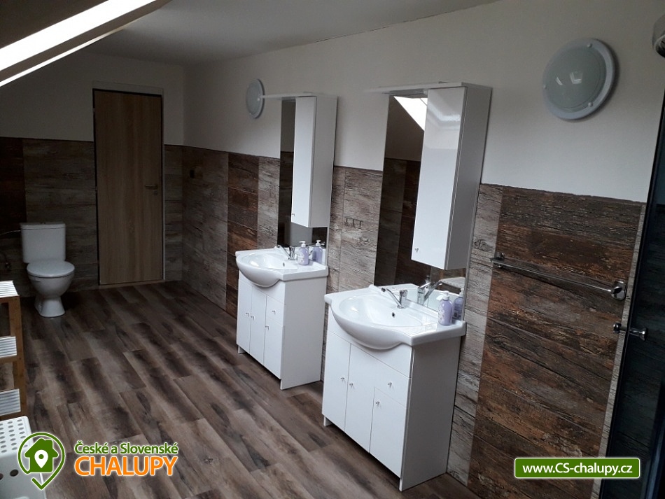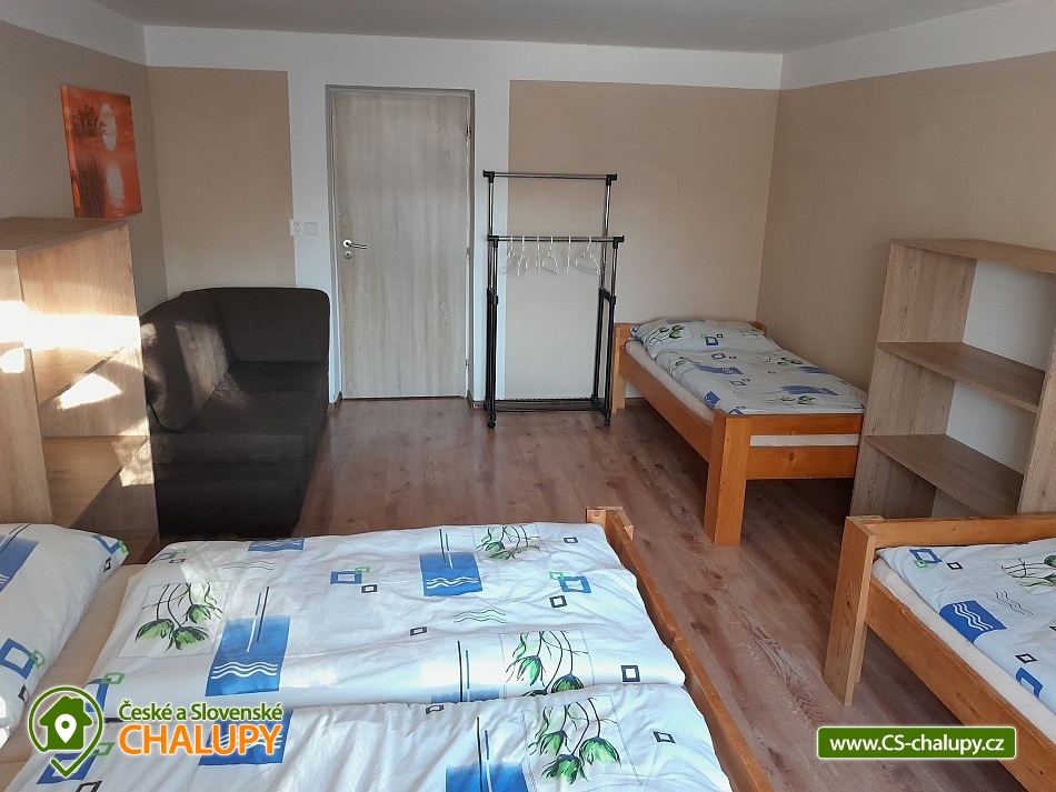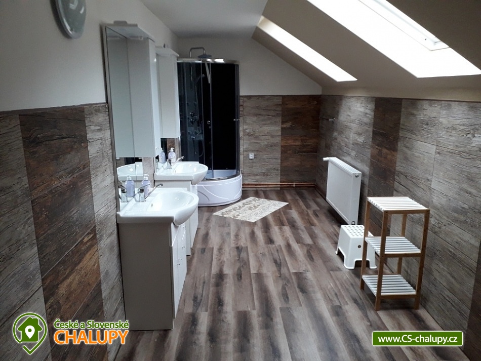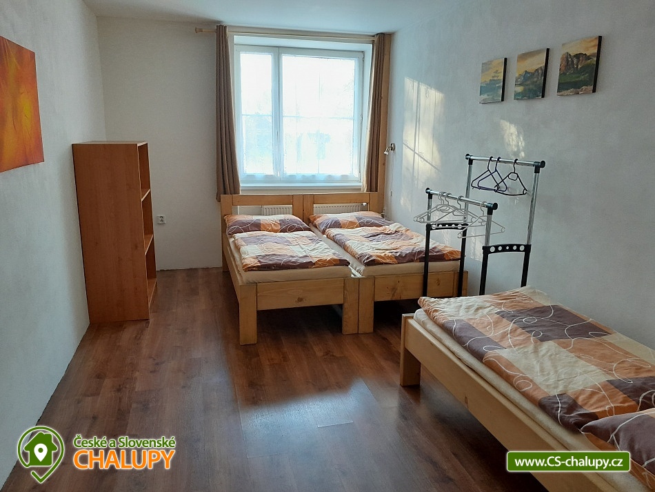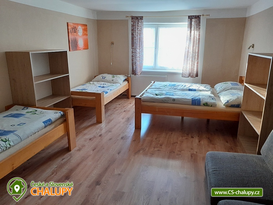 Chalupa s bazénem - Hrubý Jeseník. Prostorná chalupa pro až 24 osob nabízí příjemné ubytování v řídké zástavbě horské vesničky Nové Losiny v nádherné krajině Hrubého Jeseníku a je výborným výchozím bodem pro objevování krás Jeseníků. V chalupě je 7 ložnic: čtyři ložnice 3-lůžkové a dvě ložnice 4-lůžkové a jedna 2-lůžková, k dispozici jsou i 2 přistýlky. 4 ložnice jsou k dispozici v patře se společným obývacím prostorem, kuchyní, jídelnou, lodžií a dvěma koupelnami s WC. 3. ložnice a třetí koupelna s WC jsou v přízemí. V chalupě je plně vybavená kuchyně. K dispozici jsou 2 lednice s mrazákem, 2 malé lednice, sklokeramický sporák s troubou, myčka, mikrovlnka a rychlovarná konvice, Smart televize a druhá TV, WIFI, zastřešená terasa a INFRASAUNA , velká herna a elektrický krb (efekt plamenů a může i hřát). Bazén, Trampolína, Kulečník, Pingpongový stůl, Skluzavka a Šipky, dětská postýlka, jídelní stolička, nočník, sušák na prádlo. Výhodou je celoročně prosluněné místo s prostornou zahradou a protékajícím potokem. Zahrada přímo sousedí s lesem, spousta možností aktivních procházek či lenošení. Na zahradě je krb, bazén, trampolína, pingpongový stůl, spousta hrací plochy a zastřešené posezení. Na naši chalupě bydlíte vždy sami bez přítomnosti majitele. Dostanete se k nám autem, vlakem i autobusem. Vytápění zajišťuje bezobslužně plynový kotel. Parkování přímo u chalupy pro 6 aut. Chalupa leží v blízkosti mnoha turistických cílů, velkých i menších lyžařských středisek, ty nabízí celoroční využití lanovek k turistice nebo sjezdům na kolech a koloběžkách, inline dráha, horské minikáry, bobové dráhy, hřiště a další. Kam na výlet: Termály a Lázně Velké Losiny, Jeseník a Karlova Studánka. Areál Kocián - Dětské hřiště, Skatepark, Minigolf, Rybářská bašta, rybolov - Loučná. Horské minikáry - Ramzová, Loučná. Bikepark, discgolf - Kouty. Wellness centrum, hrad Kolštejn - Branná. Bobová dráha - Petříkov, Dolní Morava. Ruční papírna - kde si můžete vyrobit vlastní papír - Velké Losiny. Možnosti koupání v okolí: termální koupaliště Velké Losiny, Hynčice pod Sušinou - rybník Úžas, koupaliště Rapotín, Jeseník, bazén Jeseník - Priessnitz, lom Žulová a další. Blízké SKIAREÁLY: Do 5 km - Přemyslov, Branná, Františkov. Do 10 km - Kouty, Ramzová, Loučná, Ostružná, Petříkov. Do 25 km - Dolní Morava, Kraličák, Červenohorské Sedlo, Stříbrnice, Filipovice, Kunčice, Paprsek a další.