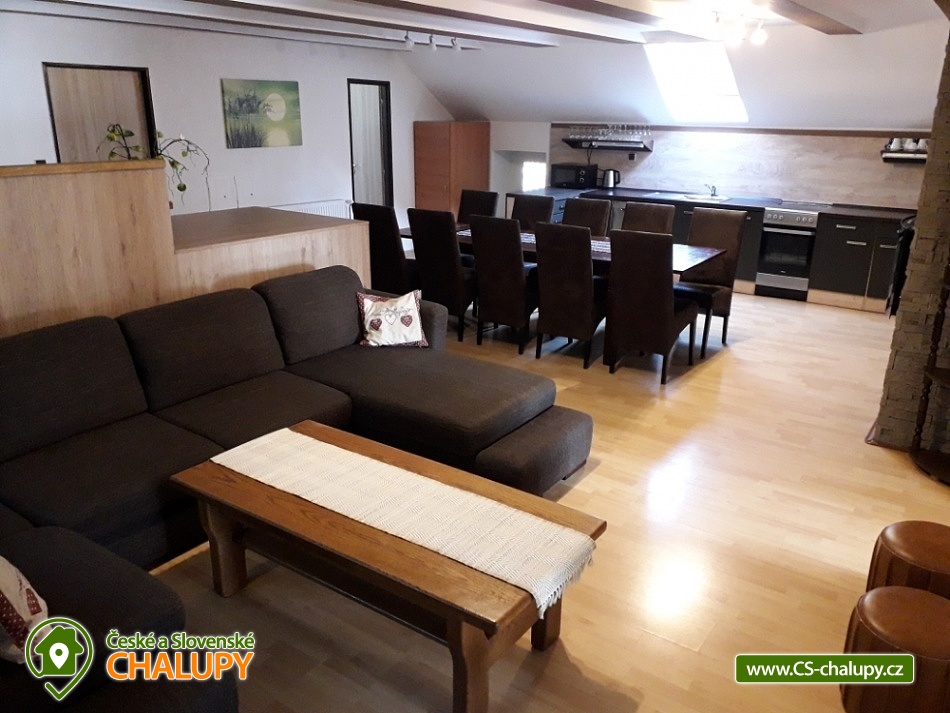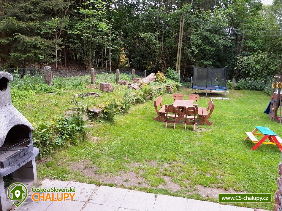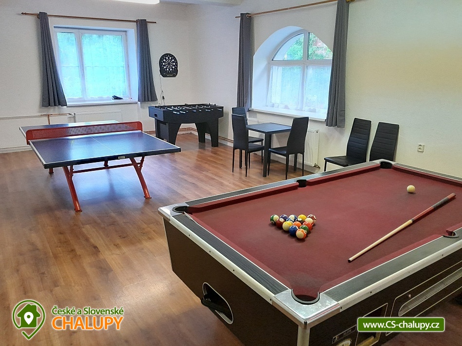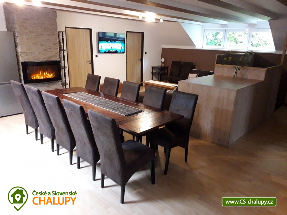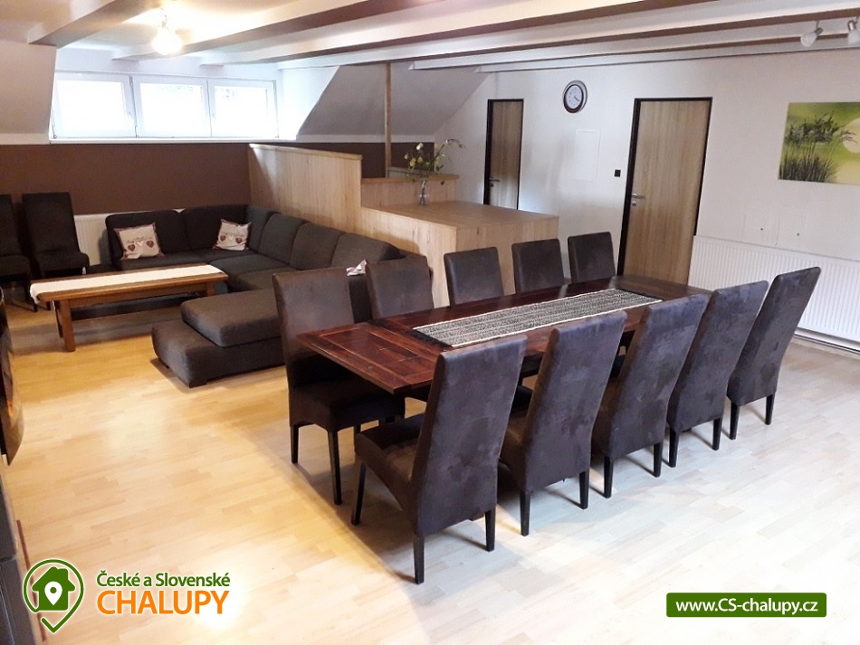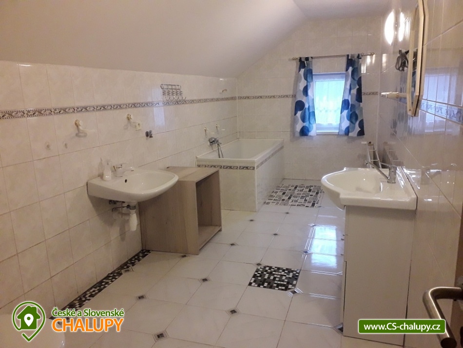 Chalupa s bazénem - Hrubý Jeseník. Prostorná chalupa pro až 24 osob nabízí příjemné ubytování v řídké zástavbě horské vesničky Nové Losiny v nádherné krajině Hrubého Jeseníku a je výborným výchozím bodem pro objevování krás Jeseníků. V chalupě je 7 ložnic: čtyři ložnice 3-lůžkové a dvě ložnice 4-lůžkové a jedna 2-lůžková, k dispozici jsou i 2 přistýlky. 4 ložnice jsou k dispozici v patře se společným obývacím prostorem, kuchyní, jídelnou, lodžií a dvěma koupelnami s WC. 3. ložnice a třetí koupelna s WC jsou v přízemí. V chalupě je plně vybavená kuchyně. K dispozici jsou 2 lednice s mrazákem, 2 malé lednice, sklokeramický sporák s troubou, myčka, mikrovlnka a rychlovarná konvice, Smart televize a druhá TV, WIFI, zastřešená terasa a INFRASAUNA , velká herna a elektrický krb (efekt plamenů a může i hřát). Bazén, Trampolína, Kulečník, Pingpongový stůl, Skluzavka a Šipky, dětská postýlka, jídelní stolička, nočník, sušák na prádlo. Výhodou je celoročně prosluněné místo s prostornou zahradou a protékajícím potokem. Zahrada přímo sousedí s lesem, spousta možností aktivních procházek či lenošení. Na zahradě je krb, bazén, trampolína, pingpongový stůl, spousta hrací plochy a zastřešené posezení. Na naši chalupě bydlíte vždy sami bez přítomnosti majitele. Dostanete se k nám autem, vlakem i autobusem. Vytápění zajišťuje bezobslužně plynový kotel. Parkování přímo u chalupy pro 6 aut. Chalupa leží v blízkosti mnoha turistických cílů, velkých i menších lyžařských středisek, ty nabízí celoroční využití lanovek k turistice nebo sjezdům na kolech a koloběžkách, inline dráha, horské minikáry, bobové dráhy, hřiště a další. Kam na výlet: Termály a Lázně Velké Losiny, Jeseník a Karlova Studánka. Areál Kocián - Dětské hřiště, Skatepark, Minigolf, Rybářská bašta, rybolov - Loučná. Horské minikáry - Ramzová, Loučná. Bikepark, discgolf - Kouty. Wellness centrum, hrad Kolštejn - Branná. Bobová dráha - Petříkov, Dolní Morava. Ruční papírna - kde si můžete vyrobit vlastní papír - Velké Losiny. Možnosti koupání v okolí: termální koupaliště Velké Losiny, Hynčice pod Sušinou - rybník Úžas, koupaliště Rapotín, Jeseník, bazén Jeseník - Priessnitz, lom Žulová a další. Blízké SKIAREÁLY: Do 5 km - Přemyslov, Branná, Františkov. Do 10 km - Kouty, Ramzová, Loučná, Ostružná, Petříkov. Do 25 km - Dolní Morava, Kraličák, Červenohorské Sedlo, Stříbrnice, Filipovice, Kunčice, Paprsek a další.