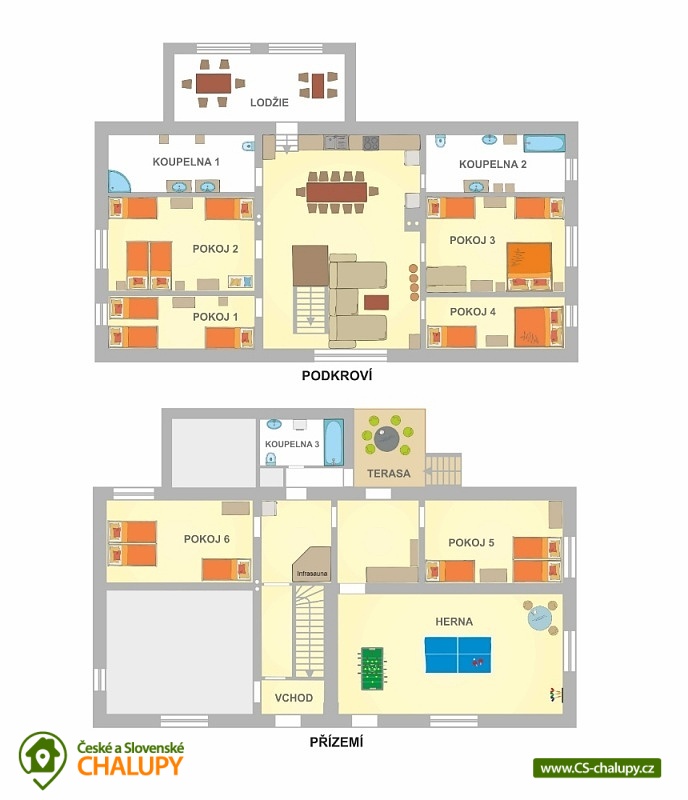 - 7 ložnic: 2x 4, 2x 3+1, 2x 3, 1x 2