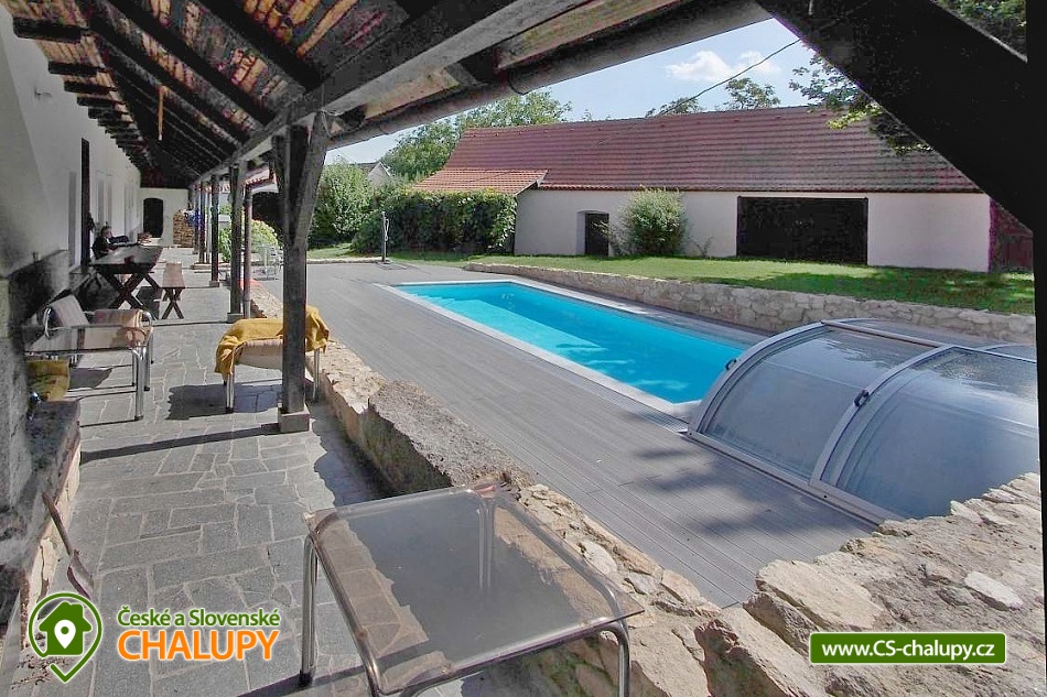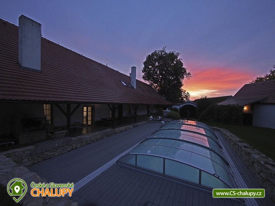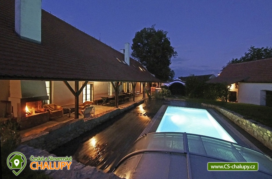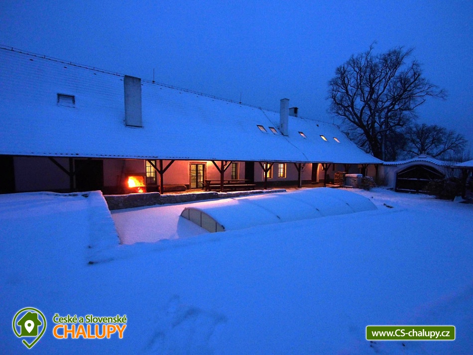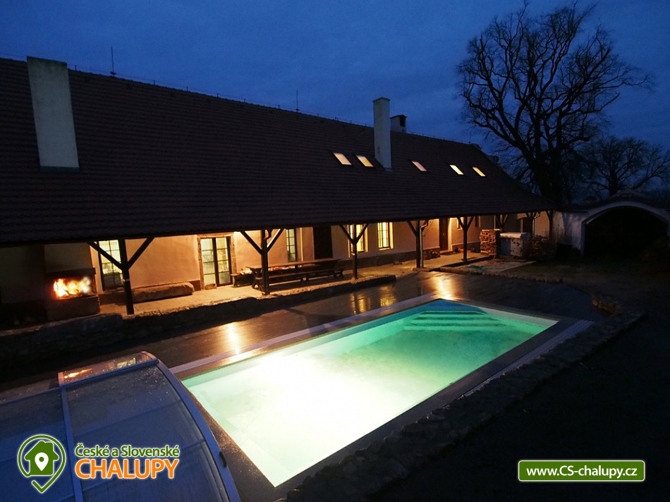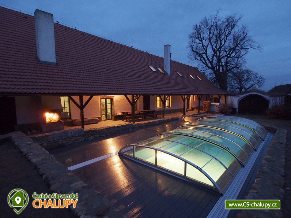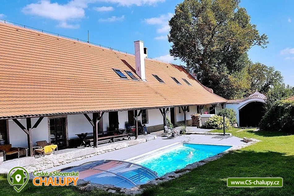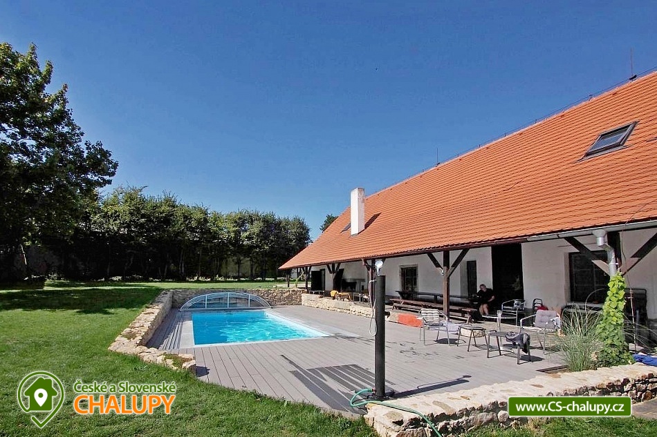 Jihočeská chalupa s bazénem se slanou vodou (červen-září) a infrasaunou je nádherná stavba jihočeského selského baroka s výhledem na místní kapličku a krajinu s poli a lesy. Poloha nedaleko přehrady Orlík a města Písek. Chalupa je velmi dobře přístupná i v zimě, i když má charakter polosamoty. V chalupě jste vítáni celoročně, kapacitně je přizpůsobena pro pobyt až 15 hostů v 6-ti ložnicích. Přízemí chalupy sestává ze společenské místnosti s krbem, krbovými kamny, jídelním posezením a televizí.. Připravena je tu pro Vás zařízená kuchyň se sklokeramickou varnou deskou, elektrickou troubou, mikrovlnnou troubou, rychlovarnou konvicí, ledničkou s mrazákem a myčkou nádobí. V přízemí si můžete odpočinout ve 2-lůžkové a 4-lůžkové ložnici. Součástí přízemí je také koupelna se sprchovým koutem, pračkou a navíc i infrasaunou pro dvě osoby. Nachází se zde také jedna samostatná toaleta. Na patře chalupy si dopřejete příjemný spánek ve třech 2-lůžkových ložnicích a jedné 3-lůžkové ložnici. Pro Váš maximální komfort je na patře chalupy k dispozici další koupelna se sprchovým koutem a toaletou. Ve všech prostorách ubytování je zajištěno bezplatné WiFi připojení na internet. Velkou výhodou chalupy je venkovní bazén (8x3,5x1,5m) se slanou vodou a zamykatelným posuvným zastřešením. Bazén je v provozu od června do září. S blízkými si můžete grilovat v krbu, posedět na terase či využít velkou společenskou místnost (70m2) s dalším proskleným krbem. Na zaparkování aut Vám poslouží oplocený prostor přímo u chalupy. Klidné prostředí, pole, louky, lesy i rybníky. Takové je okolí chalupy, které Vám nabízí vytouženou dovolenou daleko od hluku velkých měst. Váš volný čas si můžete zkrátit výletem k Vodní nádrži Orlík na řece Vltava, kde je kromě rybolovu, možné i plavání i výlety s lodní dopravou. V okolních Píseckých horách si naplánujte cyklovýlet na vrchol Velkého a Malého Mehelníka. Pokud přece zatoužíte po návštěvě města, ve městě Písek se projděte historickými uličkami nebo si dopřejete chutnou kávu v některé z útulných místních kavárniček. Těšíme se na Vás u nás.