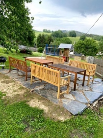 Chalupa s bazénem - Králický Sněžník - Kunčice - Staré Město. Užijte si wellness dovolenou v podhůří Králického Sněžníku. Chalupa je vhodná pro rodiny s dětmi nebo skupinu přátel, která chce strávit dovolenou se vším komfortem a soukromím. Chalupu lze pronajmout jako celek jedné skupině klientů. Chalupa je maximálně pro 23 osob - 15 lůžek a 8 přistýlek. Přistýlky nejsou započítány v celkové ceně. Každý apartmán má plně vybavený kuchyňský kout, ložnici (kromě apartmánu 4) a obývací část s jídelním stolem. Apartmány mají vlastní koupelnu se sprchou a wc, k dispozici máte ručníky, osušky, fén a toaletní potřeby. Rozkládací sedačku v obývací části je možné použít jako přistýlku pro 1 - 2 osoby. Najdete u nás venkovní vyhřívaný bazén, venkovní vířivou vanu, finskou saunu, infrasaunu, velkou oplocenou zahradu, dětské hřiště, venkovní posezení, ohniště, gril, lyžárnu / kolárnu, vnitřní posezení se šipkami a malým pingpongovým stolem. Od jara do podzimu posezení ve stodole s hernou - billiard, stolní fotbálek, air hokej (nelze využít přes zimu). Parkování přímo u chalupy. Apartmány jsou vytápěné elektrickými přímotopy. Chalupa se nachází u lyžařské sjezdovky. V okolí chalupy je udržovaná louka, na které se v letním období pasou koně. Kunčice jsou malou horskou vesnicí rozkládající se na úpatí masivu Kralického Sněžníku a Rychlebských hor nabízející podmínky pro zimní sporty, cykloturistiku, pěší turistiku ale i relaxaci a odpočinek. Chalupa se nachází u sjezdovky. Těšíme se na Vás. V blízkosti doporučujeme navštívit velkou zajímavost: přečerpávací vodní elektrárna Dlouhé stráně, jež je jedním z divů, protože se jedná se o nejvýkonnější vodní elektrárnu v Česku uvnitř chráněné krajinné oblasti. Dominantou Staroměstska je Kralický Sněžník (1424 m), na jehož vrcholu kdysi stávala rozhledna. Blízká lyžařská střediska v okolí: Skitech Kunčice, Stříbrnice - Návrší, Hynčice - Kraličák, Paprsek, Branná, Jonas park Ostružná, Petříkov, Na Hájovně Branná, Petříkov, X-park Františkov, Zetocha Petříkov, Malá Morava - Vysoká a Ski klub Ramzová pod Klínem. Další možnosti koupání mimo náš bazén: Hynčice pod Sušinou - rybník Úžas, lom Žulová - Brankopy, koupaliště Králíky, Arcibiskupský lom, lom Vycpálek, lom Žulová, termální koupaliště Velké Losiny, Velké Losiny - termály, bazén Domašov - Bělá pod Pradědem, bazén Jeseník - Priessnitz, lom Rampa, koupaliště Jeseník, lom Vaněk, koupaliště Rapotín, bazén Mezilesí.
