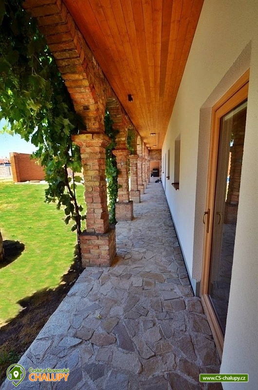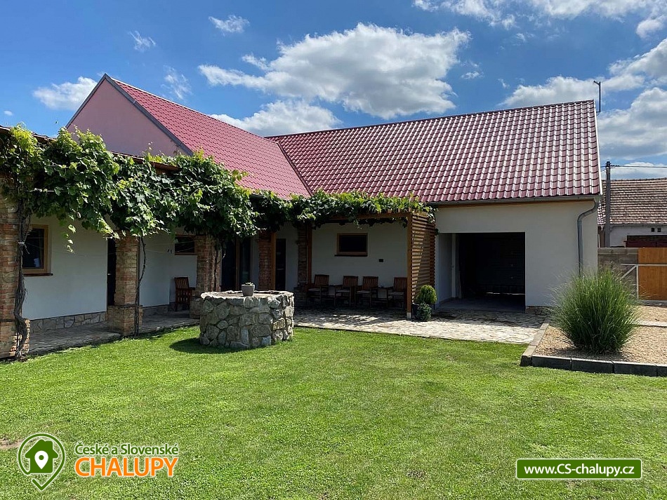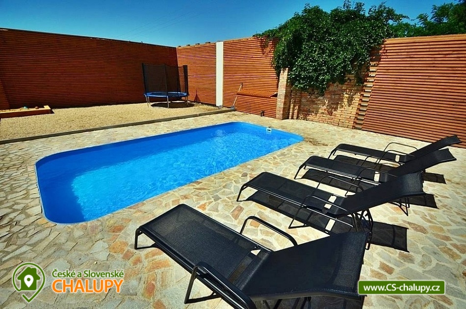 Chalupa s bazénem na rozhraní Znojemska a Mikulovska u CHKO Pálava. Chalupa k pronájmu zahrnuje 4 apartmány (objekt se pronajímá jako celek 1 skupině klientů v soukromí) s celkovou kapacitou až 18 osob (Apartmány kapacita 4 + 4 + 4 + 6 osob). Na své si zde přijdou příznivci relaxu, odpočinku, turistiky po malebné okolní přírodě a místních památkách ale také milovníci cyklistiky, sportu či rybaření. Kapacita ubytování celého objektu činí 10 lůžek a 8 přistýlek. Apartmán 1: dvoulůžková manželská postel, dvě přistýlky na rozkládací pohovce. Apartmán 2: dvoulůžková manželská postel, dvě přistýlky na rozkládací pohovce. Apartmán 3: obsahuje dvě ložnice: ložnice 1 - dvoulůžková manželská postel, dvě přistýlky na rozkládací pohovce a ložnice 2 - dvoulůžková manželská postel, dvě přistýlky na rozkládací pohovce. Apartmán 4: dvoulůžková manželská postel. Každý apartmán disponuje vlastní koupelnou obsahující sprchový kout, umyvadlovou skříň, WC a topný žebřík. Všechny ložnice jsou vytápěny nástěnnými otopnými tělesy. Chalupa disponuje společenskou místností s plně vybavenou kuchyní, společným posezením a velkoplošným televizorem. V uzavřeném areálu se nachází venkovní bazén a přilehlá zastřešená pergola s posezením u zahradního grilu. Pro nejmenší areál nabízí dětské hřiště. Internetové připojení WiFi. Parkování vozidel a kol je zajištěno uvnitř areálu. Veškeré další sportovní rekreační a sportovní využití je možné v nedalekém Znojmě či Mikulově (sportovní hala, squash, tenis, bowling). Oblast je napojena na spleť cyklotras Znojemska, Mikulovska i stezek do Rakouska. Koupání mimo areál je možné v nedalekém aquaparku Moravia Pasohlávky, Novomlýnských nádržích, Laa an der Phaya či koupališti Březí a Hrušovany nad Jevišovkou. Rybaření je možné na rameni řeky Dyje (nutnost rybářského lístku). Doporučené výlety v nejbližší okolí: Znojmo, Mikulov, CHKO Pálava, Novomlýnské nádrže, Dolní Věstonice, Lednice, Valtice a Jižní Morava.