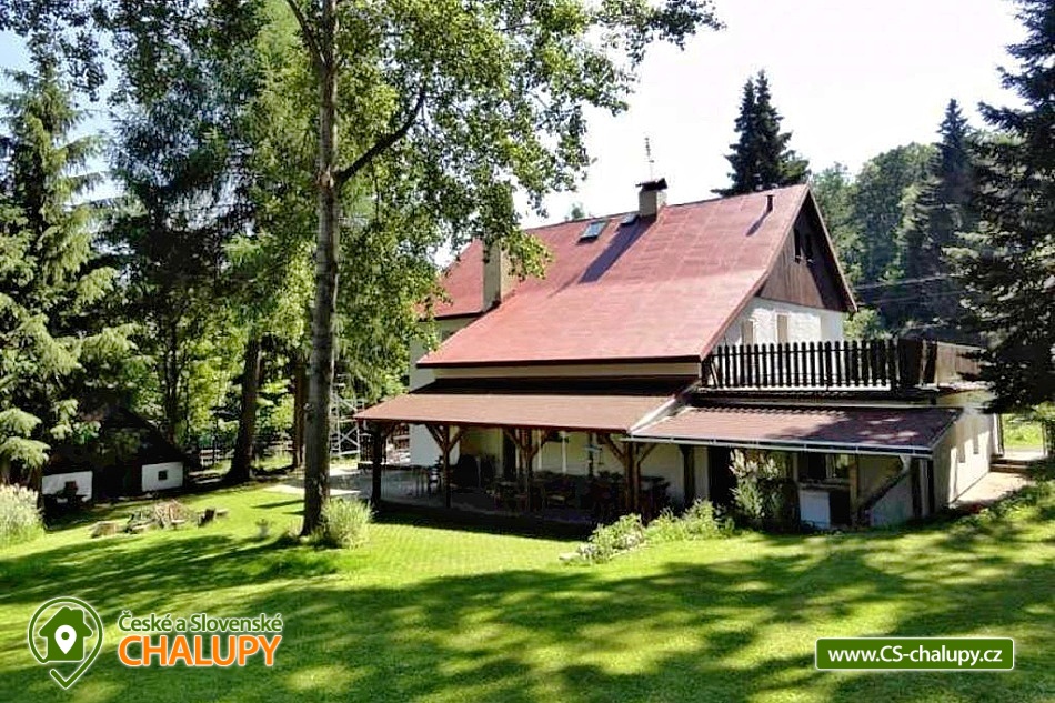 Pronájem chalupy s bazénem pod vrchem Plešivec - Krušné hory, chalupa v obci Merklín - část obce Lípa. Tichá lokalita a blízkost lesa Vám zaručí příjemně strávenou dovolenou v přírodě. Ubytování je vhodné pro rodiny s dětmi, skupiny přátel a příznivce turistiky. Chalupa k pronajmutí poskytuje ubytování pro až 21 osob v 8 ložnicích. Hned u vstupu Vás na přízemí přivítají dvě společenské místnosti. V každé se ohřejete u ohně praskajícího v krbu a prolenošíte si na pohodlných gaučových soupravách, například při sledování televize. K dispozici jsou i dvě plně vybavené kuchyně. Při přípravě jídla Vám v každé poslouží elektrický sporák, lednice, mikrovlnná trouba, rychlovarná konvice a myčka nádobí. Noční část se nachází na patře a sestává z osmi útulně zařízených 2-3 lůžkových ložnic. Mysleli jsme i na Vaše dětičky, na které již v dětském koutku čekají hezké hračky. Pro starší je připraven rotoped. Osvěžení si dopřejete v jedné z pěti koupelen s WC. V každé je sprchový kout, dvě z nich jsou navíc vybaveny i vanou. Posedět při sklenici vínka si můžete na venkovním posezení na kryté terase. Pečené masíčko si připravíte na ohništi nebo grilu. V horkých letních dnech naleznete osvěžení ve dvou venkovních bazénech. Děti se vyřádí na trampolíně nebo houpačkách. Rozsáhlý pozemek Vám nabízí prostor na hraní míčových her. Odreagovat se můžete i při hraní kulečníku. Novinkou pro naše hosty je infra-sauna, ve které příjemně zrelaxujete. Samozřejmostí je WiFi připojení na internet. Pro ještě větší komfort máme pro naše hosty k dispozici i pračku. Parkování je zajištěno na oploceném parkovišti. V okolí najdete turistické i sportovní vyžití v každém ročním období. Vydejte se na Naučnou stezku Bijadla a prohlédněte si expozici o přírodě, myslivosti i starých řemeslech. Součástí areálu jsou výběhy s jeleny, muflony a jinou lesní zvěří. Nádherné výhledy se Vám naskytnou z Rozhledny na Plešivci. Adrenalinové dobrodružství zažijete v Lanovém parku Plešivec.
