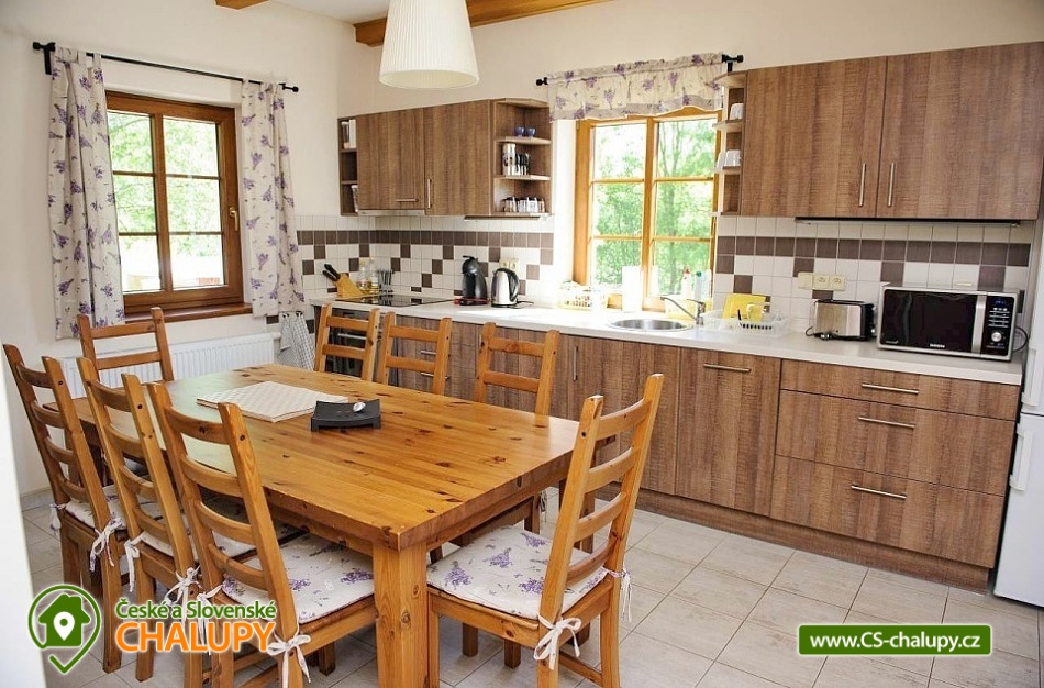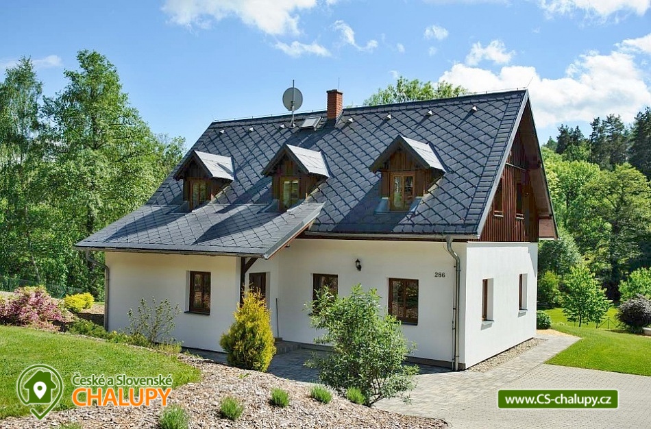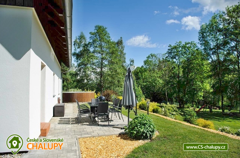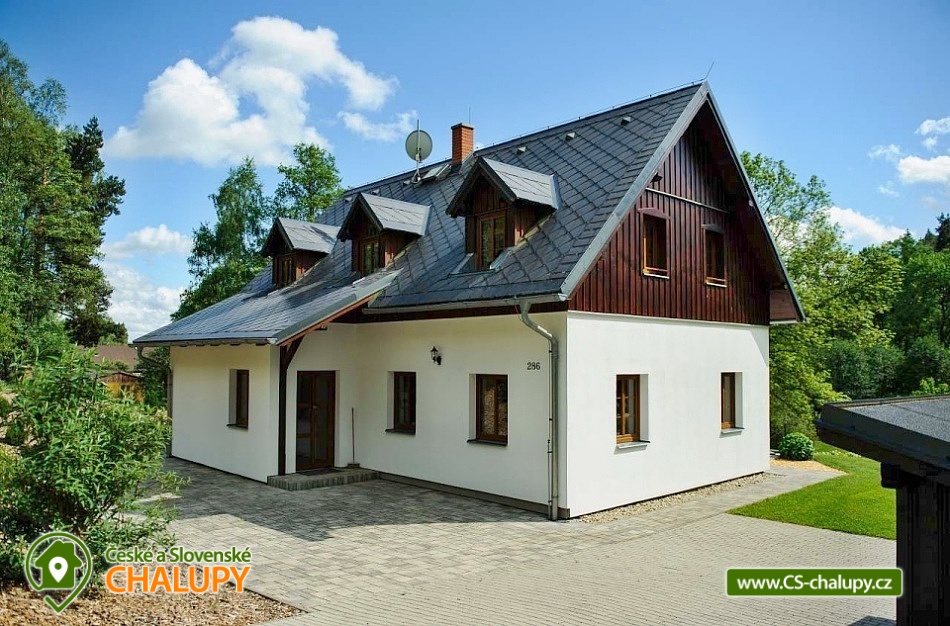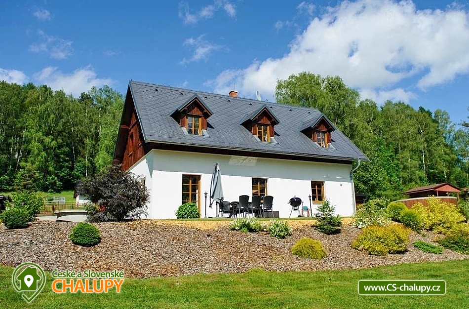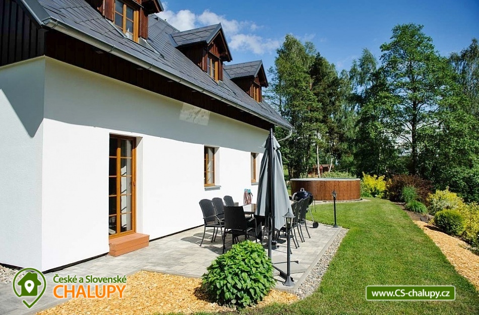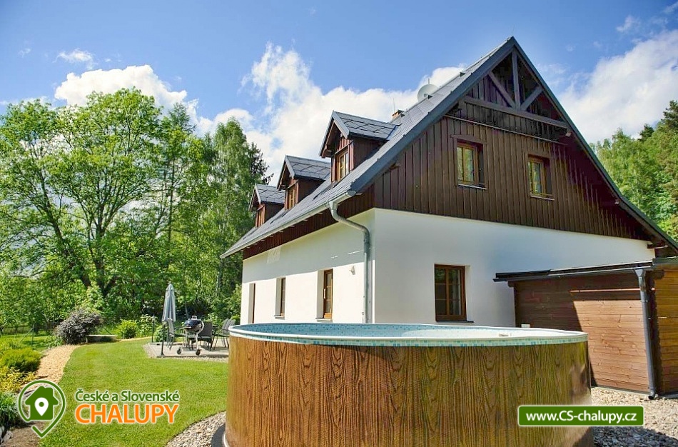 Chalupa s bazénem pod Ještědem nedaleko Ranče Malevil a Jablonného v Podještědí. U chalupy lze zavítat do resortu Malevil s 18 - ti jamkovým golfovým hřištěm, tenisovým kurtem, squashem, bowlingem, lanovým centrem, restaurací, wellness, saunou, mini ZOO a jízdárnou. Chalupa poskytuje ubytování pro až 8 osob, celkem jsou k dispozici dvě dvoulůžkové ložnice (1x dvoulůžko) a jedna čtyřlůžková (2x dvoulůžko). Všechny ložnice jsou umístěné v podkroví. K zapůjčení je dětská postýlka. Po domluvě lze zajistit dvě přistýlky řešené nafukovací postelí Intex. V obývacím pokoji je k dispozici sedací souprava 3+2+1, konferenční stolek, úložné prostory - komody, TV a SAT. Součástí chalupy je plně vybavená kuchyň (varná deska, trouba, mikrovlnná trouba, rychlovarná konvice, hrnec na vaření rýže, tyčový mixér, robot na míchání těst, lednice s mrazákem, kapslové espreso NESCAFE, nádobí - hrnce, teflonové pánve, talíře misky, atd.) a jídelní stůl s 8 židlemi. V celém objektu k dispozici WIFI připojení na internet. Sociální zařízení zahrnuje jednu přízemí koupelnu se sprchovým koutem, WC, umyvadlem se skříňkou a vysokou koupelnovou skříní. Dále druhou koupelnu v podkroví s vanou, umyvadlem se skříňkou a vysokou koupelnová skříní a jedno samostatné WC. K dispozici je také pračka, žehlička, žehlící prkno a sušák na prádlo. Vytápění je teplovodní, řešené radiátory na elektrokotel. Chalupa je postavená na oploceném pozemku o rozloze 3500 m². U chalupy lze posedět na venkovní terase s grilem a zahradním nábytkem. K dispozici je také venkovní ohniště. Pro letní radovánky lze využívat nadzemní bazén o průměru 3,66 m s pískovou filtrací (v provozu od prvního týdne v červenci). Pro nejmenší je na prostorné zahradě k dispozici trampolína a dětské hřiště. Využívat lze také zahradní domek pro uskladnění kol a lyží. Parkovat lze přímo u objektu. V okolí chalupy možnost turistiky, cykloturistiky, koupání, houbaření, rybaření a lyžování. V blízkosti je také jízdárna, tenisové kurty a golf. Mezi možnosti koupání patří např.: přehrada Naděje, lom Kristýna, aquapark Großschönau - Trixi Park, Radvanecký rybník, Jezírko u Svoru, vodní nádrž Horka - Stráž pod Ralskem, Lesenská přehrada, Kytlice - Lesní rybník, rybník Mašiňák, koupaliště Jiřetín pod Jedlovou, Červený rybník, Aquapark Babylon Liberec, bazén Česká lípa atd. K výletům v okolí láká Vyhlídková věž Hvozd, Luž, Popova skála, Sloní skály Jítrava, Národní park Česko - saské Švýcarsko, hrad Oybin - Německo, Skalní hrad sloup v Čechách, lesní divadlo Sloup v Čechách, zámek Lemberk, zámek Grabštejn, zámek Zákupy, zámek Frýdlant, Motýlí dům Jonsdorf - Německo, Ještěd, ZOO Liberec, Botanická zahrada Liberec a mnoho dalších. Těšíme se na Vás u nás.