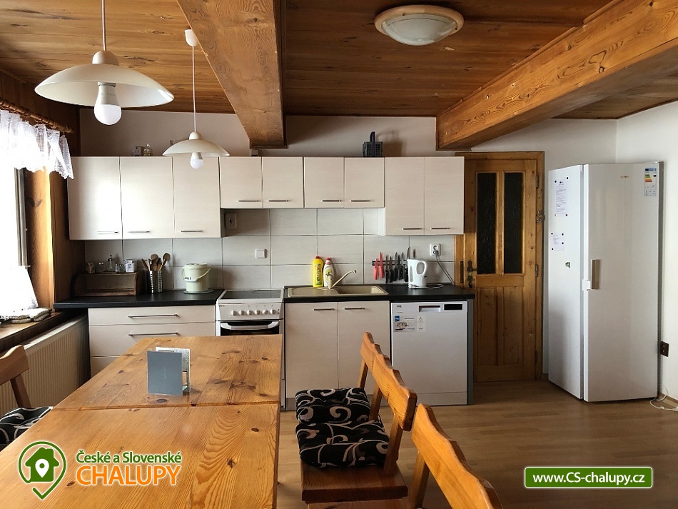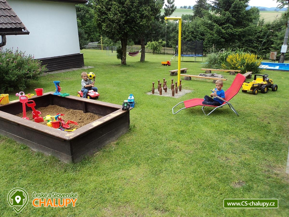 Rodinná chalupa s letním bazénem nedaleko hory Praděd a Rešovských vodopádů - prožijte svou zaslouženou dovolenou v klidné podhorské vesničce Rudná pod Pradědem. Chalupa k pronajmutí poskytuje ubytování pro až 10 osob ve 3 ložnicích. K dispozici budete mít velkou, oplocenou zahradu s krytým posezením, grilem a ohništěm. Děti i hraví dospěláci si užijí jak spoustu hraček a stolních her uvnitř chaloupky, tak venkovní trampolínu, skluzavku, houpačky, hřiště, ruské kuželky, pískoviště... ). V letních měsících je napuštěn bazén a pro nejmenší nafukovací brouzdaliště. V chaloupce najdete 2 samostatné podkrovní ložnice po čtyřech lůžkách, velký obývací pokoj (s možností dalších 2 lůžek), vybavenou kuchyň, herní koutek pro děti, koupelnu se sprchovým koutem a samostatné WC. Sociální zařízení: V chaloupce najdete jednu koupelnu a samostatné WC. Vytápění: Celá chaloupka je vytápěna centrálně kotlem na dřevo, obsluhovaným majiteli. Zimy se bát rozhodně nemusíte. Parkování: Objekt je dostupný celoročně. K chalupě je přístup po udržované silnici. Příjezdovou cestu i parkoviště pro 5 vozidel přímo u chalupy v zimě pravidelně udržujeme pro Váš bezproblémový příjezd. V CHALOUPCE NAJDETE: Kompletně vybavenou kuchyň. Kvalitní zdravotní matrace. Dětské postýlky včetně ložního prádla. WiFi. Stolní i venkovní hry, dětské hračky. CHALOUPKA DÁLE NABÍZÍ: Venkovní posezení s grilem, velké ohniště, dětské hřiště s brankami a sítí pro míčové hry, pískoviště, trampolínu, houpačky a ruské kuželky. Vedle chaloupky se pasou sousedovy ovečky. Krmelec u kterého můžete sledovat zvěř (srnky, lišky, veverky). Místo pro úschovu kol a lyží. Výlety: Praděd, Vodopády Bílé Opavy, Rešovské vodopády, Přírodní rezervace Rejvíz, Šerák, Přečerpávací vodní elektrárna Dlouhé Stráně. Sjezdové lyžování: Praděd, Malá Morávka - Karlov, SKI Annaberg Andělská Hora, Vrbno pod Pradědem, Dolní Moravice. Běžecké lyžování: celé okolí. Lázně: Karlova Studánka, Lázně Losiny, Lázně Jeseník. Welness: Karlova Studánka a Bruntál.