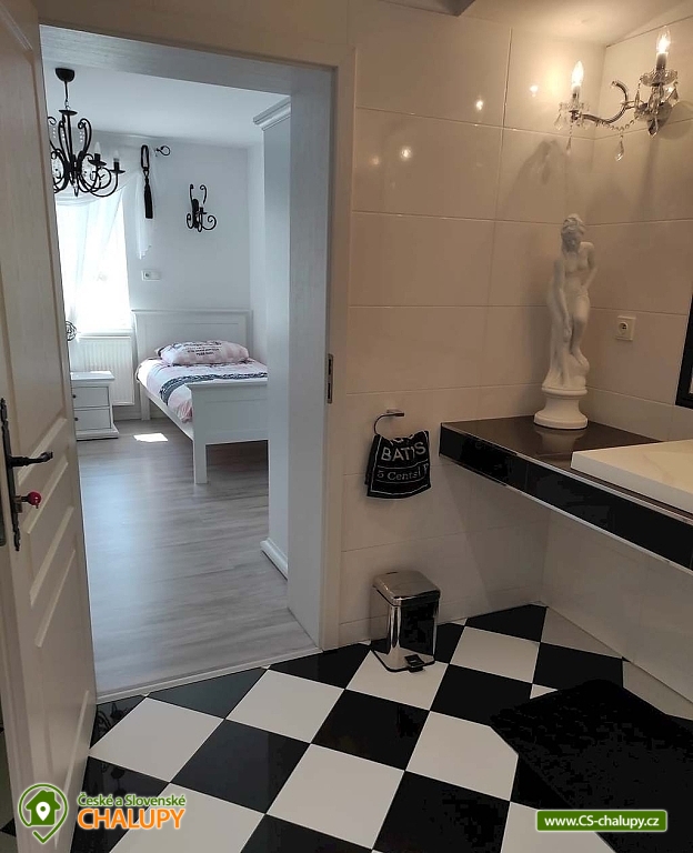 Chalupa s bazénem u Rychlebských stezek v Jeseníkách. Komfortní rekreační chalupa s bazénem, saunou a plážovým volejbalem zahrnuje kapacitu 16 lůžek + část Stodola 7 lůžek. Objekt nabízí nejen bikerům i jejich rodinám veškerý komfort poblíž Rychlebských cyklostezek, rybníků a zatopených lomů v Jeseníkách. Chalupa k pronajmutí poskytuje ubytování pro až 23 osob v 8 ložnicích. CHALUPA - nabízí obývací místnost s krbem a posezením. K přípravě jídel můžete využít kompletně zařízenou kuchyň. Pohodlí během spánku zajišťují tři 2-lůžkové pokoje, jeden 3-lůžkový pokoj (dětský pokoj pro 2 s přistýlkou, vhodný i pro dospělé) a prostorný podkrovní mezonetový Lovecký apartmán, jehož kapacita je připravena pro až 7 osob. V apartmánu je navíc terasa s posezením i kuchyňský koutek. Samozřejmě součástí každého jednoho pokoje je koupelna se sprchovým koutem (případně vanou) a toaletou. STODOLA - přijedete-li jako vícečetná skupinka hostů, můžete si pronajmout i Stodolu (Stodolu nelze pronajmout samostatně bez Chalupy). V přízemí se nachází plně zařízená kuchyň s obývací místností a polohovací sedačkou. Přímo v prostorách stodoly máme k dispozici dva 2-lůžkové pokoje a jeden 3-lůžkový pokoj. Dva z pokojů mají vlastní koupelnu se sprchovým koutem a toaletou přímo na pokoji, jeden má jen toaletu. Nejen rodiny s dětmi ocení možnosti využívání všech vnějších aktivit. Výborně padne posezení pod pergolou s možností grilování nebo vaření kotlíkového guláše. Velká kuchyň v přízemí chalupy: velká lednice, myčka nádobí, indukční varná deska, trouba, mikrovlnná trouba, varná konvice, Kávovar na překapávanou kávu, Presovač Krups (na kapsle Dolce Gusto), tyčový mixér, topinkovač, toustovač, vaflovač. Kuchyňka v Loveckém apartmá: varná deska, malá lednice, varná konvice, kávovar na překapávanou kávu, dále na chodbě před Loveckým apartmá je kávovar Krups Dolce Gusto na kapsle a další varná konvice. Vybavení Stodoly: Velká lednice, myčka nádobí, mikrovlnná trouba, malá trouba, rýžovar, kávovar na překapávanou kávu, kávovar Krups Dolce Gusto na kapsle, polohovací sedací souprava, v pokoji Bella polohovací postel s ovládáním. Dětičky si mohou zahrát na bohatě vybaveném dětském hřišti, případně si v případě nepříznivého počasí hrát v dětském koutku na zahradě nebo zašívárně ve sklepě s kulečníkem a dalšími hrami. Jsme baby friendly a máme tak k dispozici také dětskou postýlku a jídelní židli. Venku si můžete zahrát plážový volejbal či badminton. K dispozici je také trampolína a venkovní stolní tenis. Po náročném dni dobře padne odpočinek ve venkovním krytém bazénu (koupání obvykle od května do konce září) nebo ohřátí se v infrasauně. Večery můžete trávit u ohýnku v lesíku přímo na zahradě. Nechybí u nás ani úschovna kol s držáky na kola. V celém domě jsou na oknech sítě proti hmyzu. V rámci našeho ubytování je samozřejmostí bezplatné WiFi internetové připojení. Parkování vozidel je také možné přímo u objektu. Jelikož se nacházíme v lokalitě poblíž Rychlebských stezek (dům leží 1,5 km od jejich základny), naše ubytování vyhledávají především cyklisté. Vykoupat se můžete i v zatopených lomech nebo rybnících. Kromě cyklistiky, turistiky, plavání a houbaření můžete také absolvovat jízdu na koních. Nechybí ani tenis, hledání křišťálů, rybaření, lezení po skalách nebo výlety do Polska. Bouldering - lezení po skalách: Smolný Vrch, Princovy Skály v Žulové - na obrázku, Píšťala, Borový Vrch, Řeznické Skály, 7 skal, Žulový Vrch, Venušiny Misky, Sokolí Skály, Kraví Skály, Šafářova Skála. V zimě můžete využít okolní ski areály, kde si dokonale zalyžujete na upravovaných sjezdovkách. Těšíme se na Vás u nás.