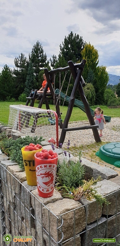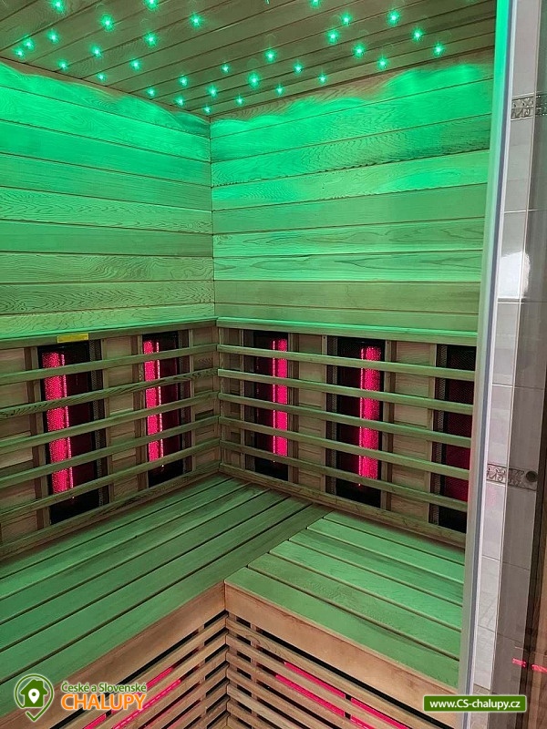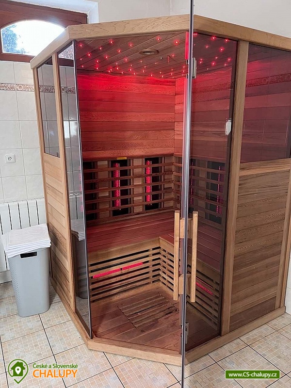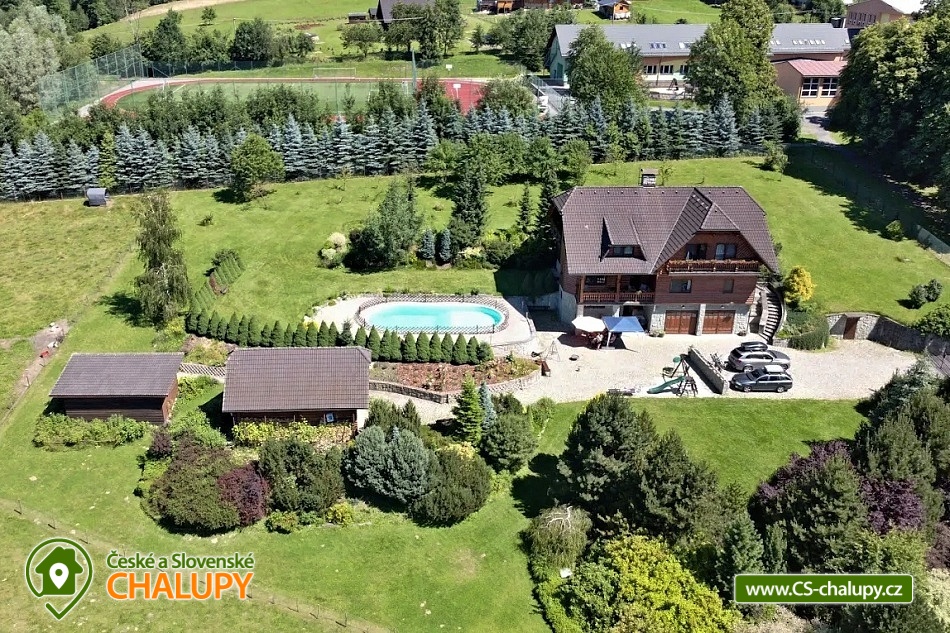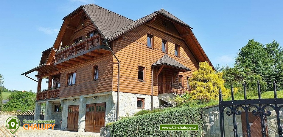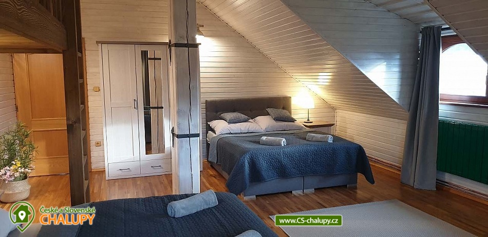 Srubová chalupa s venkovním bazénem a wellness se nachází u Rytířské stezka na Rozhlednu na Velké Čantoryji, poloha v obci Nýdek, místo je obklopené horským masivem Slezských Beskyd. Těšit se můžete na venkovní bazén, koupací sud nebo saunu a také na rozlehlou zahradu plnou zeleně s překrásnými výhledy na okolní hory. Tato komfortně vybavená, prostorná chalupa nabízí ubytování pro až 18 osob v 5 ložnicích. V přízemí se nachází první třílůžková ložnice (1x dvoulůžko a 1x jednolůžko) a v podkroví jsou další čtyři ložnice - šestilůžková (2x dvoulůžko a 2x jednolůžko), čtyřlůžková (2x dvoulůžko), třílůžková (1x dvoulůžko a 1x jednolůžko) a dvoulůžková (1x dvoulůžko). Dětská postýlka je k zapůjčení. V přízemí ke společným chvílím slouží prostorná hala, v jejímž středu dominují krbová kamna. Součástí haly je sedací souprava, 65" smart TV, velký jídelní stůl se židlemi a plně vybavená kuchyň (myčka, plynový vařič, elektrická trouba, mikrovlnná trouba, lednice s mrazákem, varná konvice a kávovar). V suterénu se nachází infra sauna s fullspektrálními zářiči nebo místnost, kde lze hrát stolní tenis a fotbálek. Po domluvě lze zapůjčit plynový gril, kotlík s topeništěm a výčepní zařízení (za poplatek). V suterénu je také garáž. V celém objektu je k dispozici WIFI připojení na internet. Sociální zařízení zahrnuje v podkroví jednu koupelnu se sprchovým koutem a vanou, a samostatné WC. V přízemí je umístěná koupelna se sprchovým koutem a samostatné WC a v suterénu je k dispozici sprchový kout, vana a WC. Vytápění je řešeno plynovým kotlem s rozvodem do radiátorů ve všech pokojích, v sociálních zařízeních, v suterénu i v hale. V hale jsou také k dispozici velká stylová a výhřevná krbová kamna na dřevo. Chalupu obklopuje oplocená travnatá zahrada. Venku lze posedět na terase nebo u ohniště. Ochladit se lze ve venkovním bazénu (12x6 m) nebo relaxovat v koupacím sudu s hydro masáží Whirlpool, Jacuzzi a LED RGB osvětlením. Děti ocení dětské hřiště se skluzavkou, houpačkami a pískovištěm. K dispozici jsou také venkovní hry (petanque, badmintonu a kroket). Po domluvě je možné zapůjčit elektrokola nebo zajistit párty stan. Za plotem lze využít umělé travnaté hřiště s brankami, koši a s tartanovým okruhem, a také hřiště pro work - out. Parkovat lze přímo u objektu. V okolí chalupy možnost turistiky, cykloturistiky, koupání, houbaření, běžkování a lyžování. Součástí obce je také fotbalové hřiště, tenisový a volejbalový kurt. Nedaleko se nachází jízdárna, golfové hřiště a bowling či wellness. Mezi možnosti koupání patří např.: bazén Bystřice, bazén Třinec, koupaliště Třinec, koupaliště Jablunkov nebo Aquapark Wisla v Polsku. V zimě jsou k dispozici blízká lyžařská střediska: Hrádek, Ustroň - Czantoria a Javorový vrch. K výletům v okolí láká Rytířská stezka na Rozhlednu na Velké Čantoryji, Lanová dráha na Javorový vrch, Sportovní areál Bystřice, Prales Mionší Dolní Lomná nebo Jablunkov - Muzeum Trojmezí. Těšíme se na Vás u nás.