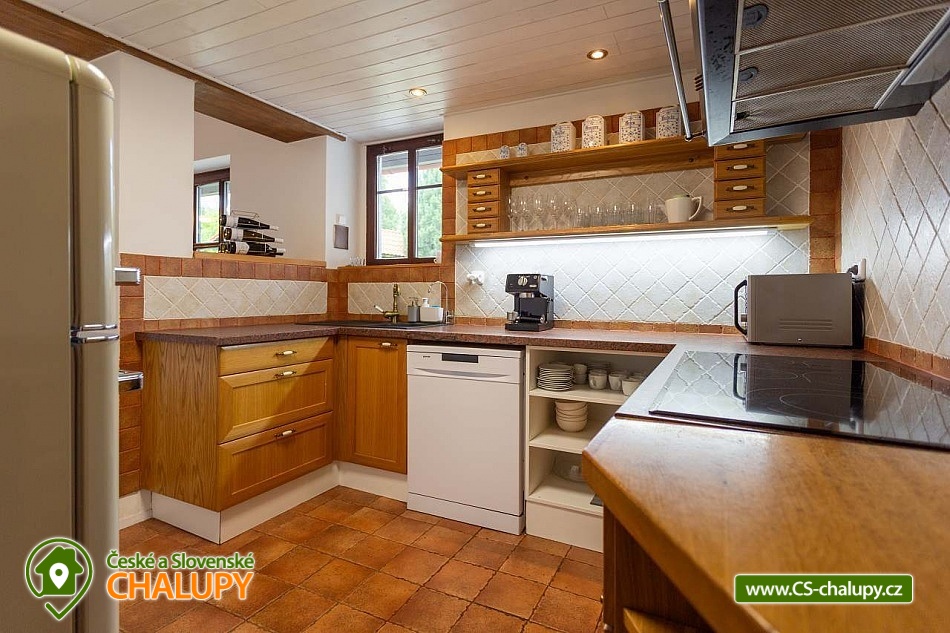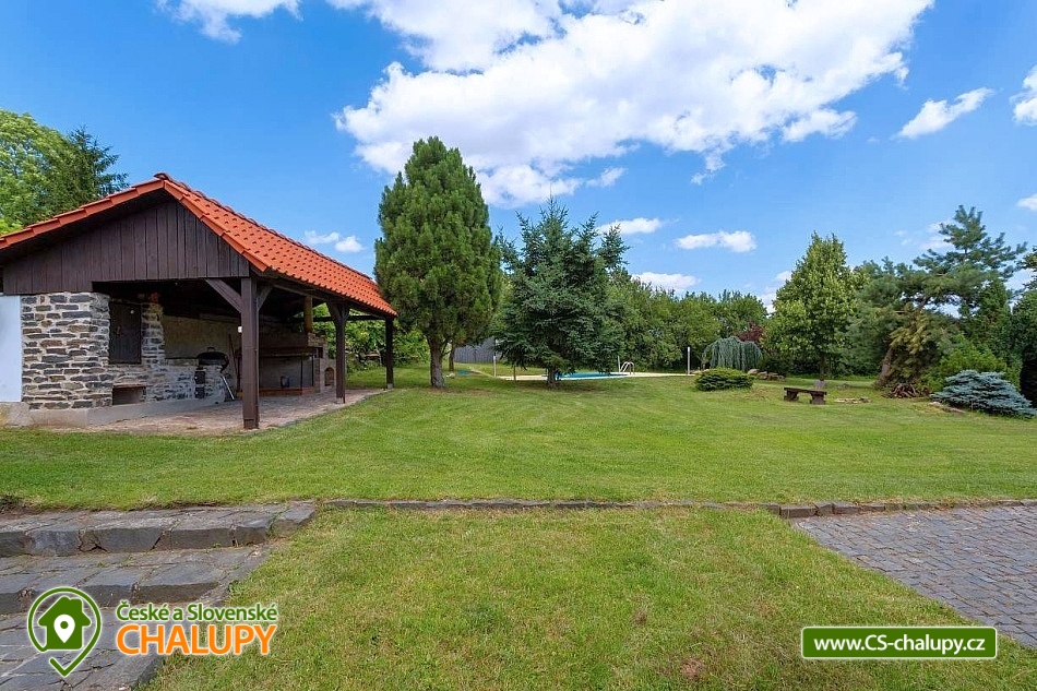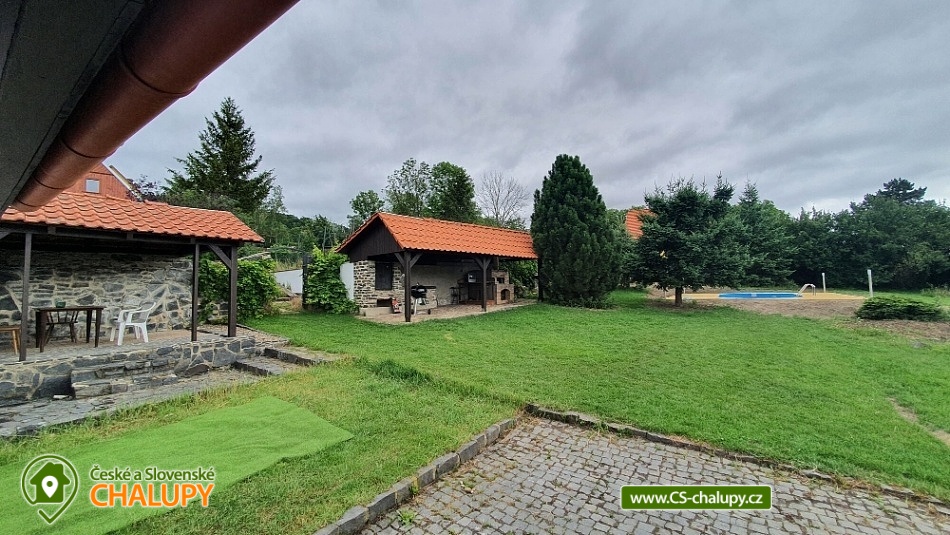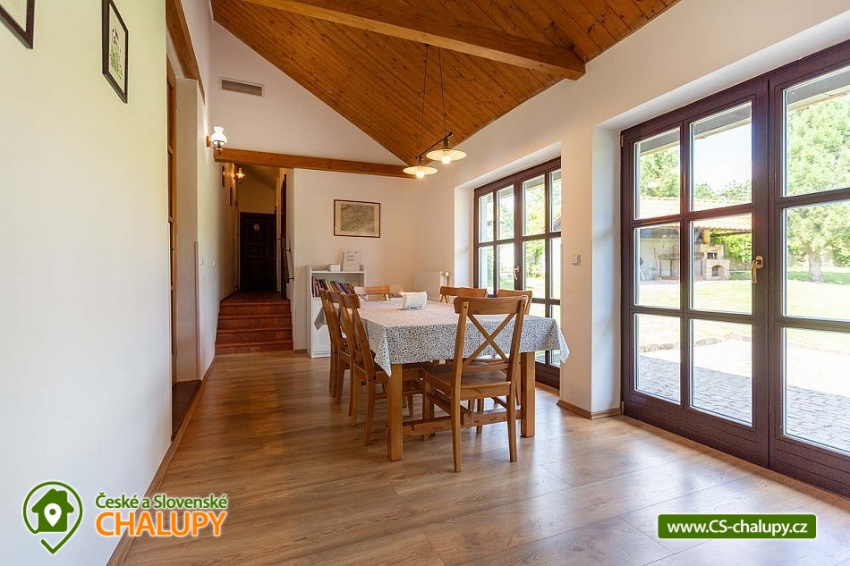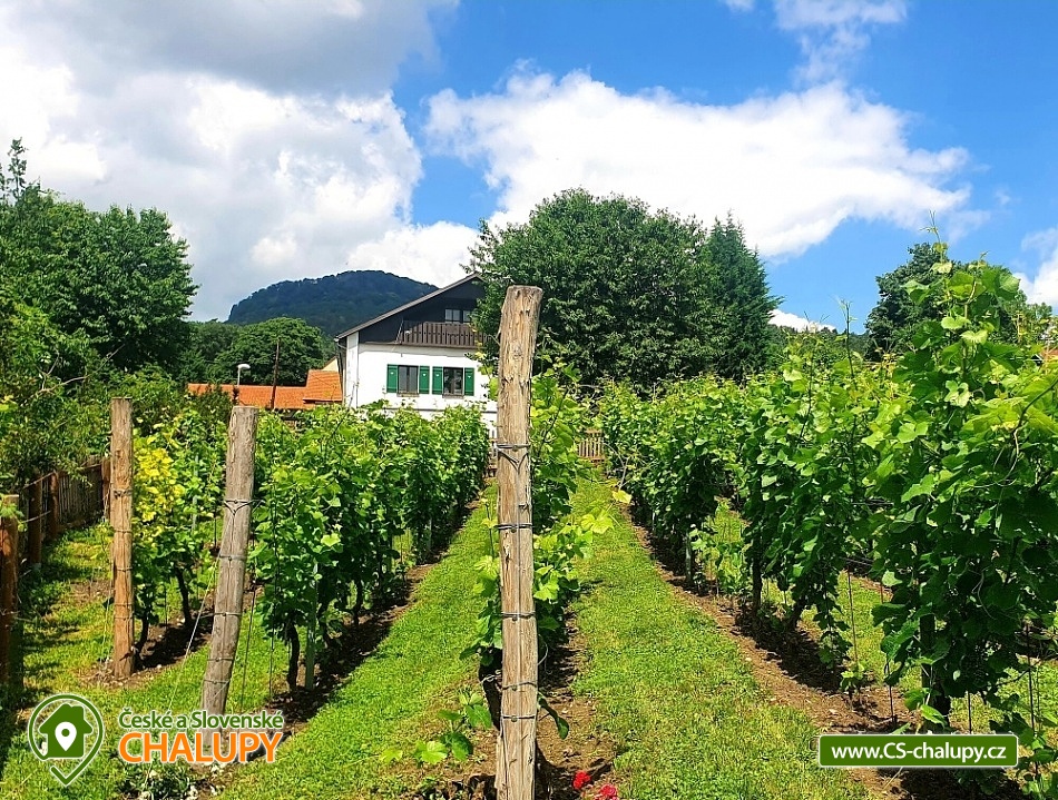 Chalupa s bazénem pod horou Sedlo v CHKO České středohoří - obec Horní Chobolice. Nabízíme pronájem chalupy pro až 8 osob ve 3 ložnicích. Okolí chalupy tvoří velké oplocené travnaté hřiště, 2 altánky s udírnou a grilem a bazén 6x3 m. Pozemek je kompletně oplocen a nesdílíte ho s nikým dalším. Chalupa sousedí s vinicí a nachází se v blízkosti lesa. Do chalupy se vchází malou chodbou do obývacího prostoru s kachlovými kamny, velkou pohovkou a TV se satelitem. Dále se zde nachází koupelna se sprchovým koutem, samostatné WC a prostorná komora. Další místnost v přízemí je jídelna s kuchyňským koutem a velkými francouzskými okny do soukromé vzrostlé zahrady. Kompletně zařízená kuchyň je vybavená 4-plotýnkovou sklokeramickou el. deskou, mikrovlnnou troubou s grilem a horkým vzduchem, varnou konvicí, toustovačem, lednicí s mrazákem, myčkou. Malé schodiště vede do ložnice s manželskou postelí a soukromou koupelnou s vanou. Dětsky pokoj pak nabízí 4 místa na dvou pohodlných rozkládacích gaučích. Přes točité schody se vchází do půdního prostoru, kde se nachází druhá ložnice s manželskou postelí a TV se satelitem. Pokoj doplňuje soukromý balkon s výhledem na vinici. Vytápění zajišťuje tepelné čerpadlo a krbová kamna. Parkování je možné přímo u objektu na oploceném parkovišti pro 2 auta, před chalupou pro další 1 auto. Naše chalupa se nabízí hlavně pro rodiny s dětmi a pro milovníky turistiky, cyklistiky, přírody, památek i dobrého vína, které vyrábí přímo naše vinařství. V blízkosti zámek Ploskovice, historické město Úštěk, jezero Chmelař, hrad Helfenburk, národní muzeum v přírodě Zubrnice, město Litoměřice. Hora Sedlo v nadmořské výšce 726 m je čtvrtou nejvyšší horou Českého středohoří a celý jeho vrchol o rozloze 42,2 ha je chráněn jako národní přírodní rezervace Sedlo v CHKO České středohoří. Důvodem této ochrany jsou zbytky původních listnatých lesů se vzácnou květenou. Ten výhled je k nezaplacení, to vám zaručujeme.