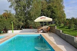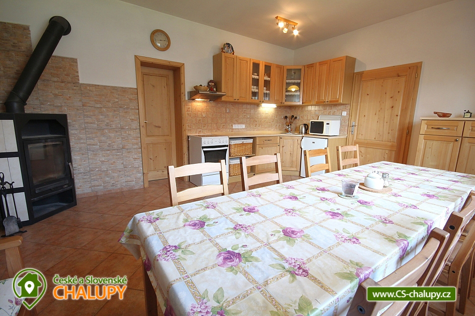 Chalupa s bazénem k pronajmutí v obci Střeleč - Český ráj. Chalupa k pronajmutí poskytuje ubytování pro až 15 osob ve 4 ložnicích. Chalupa s velkou stylovou společenskou místností, vhodnou pro větší skupiny, se nachází v centrální části geoparku UNESCO Český ráj, nedaleko Prachovských skal, na dohled hradní zříceniny Trosky. Uvnitř chalupy jsou celkem tři apartmány, objekt se vždy pronajímá jako celek 1 skupině klientů. V přízemí je světnice zahrnující plně vybavenou kuchyni (el. sporák se sklokeramickou deskou, lednice, mikrovlnná trouba, varná konvice) s krbovými kamny a jídelnou. V přízemí dále obývací pokoj (zde možnost 2 přistýlek na rozkládacím lůžku), samostatný 4 lůžkový apartmán (ložnice s dvoulůžkem a palandou) a sociální zařízení, které zahrnuje koupelnu se sprchovým koutem, umyvadlo a WC. V patře jsou dva 4-lůžkové apartmány s vlastními kuchyňskými kouty (varná deska, lednice, mikrovlnná trouba, varná konvice) a posezením. V první apartmánu dvoulůžko a 2 samostatná lůžka, ve druhém apartmánu dvoulůžko, palanda a možnost 1 přistýlky na standardním lůžku. V tomto podlaží jsou 2 koupelny se sprchovým koutem, umyvadlem a WC. Během pobytu je plně k dispozici stylová a prostorná společenská místnost s posezením a stoly pro 15 osob. Vytápění je zajištěno elektrickými přímotopy a krbovými kamny na tuhá paliva. U chalupy je stodola, která slouží k uskladnění dřeva a velký travnatý pozemek s možností venkovního i zastřešeného posezení. Parkování u objektu. Možnosti koupání: vodní nádrž Jahodnice, Jinolické rybníky, koupaliště Ostružno - Sklář, koupaliště Sobotka, koupaliště Jičín - Kníže, Aqua Centrum Jičín, koupaliště Sedmihorky a koupaliště Kacanovy. V okolí chalupy doporučujeme pískovcové skály a rozsáhlá skalní města, která bývají doplněna řadou jeskyní a skalních bran. Za zmínku stojí např. skalní města Apolena, Prachovské skály, Hruboskalsko nebo Kozákov. Mezi další zajímavá místa patří zřícenina hradu Trosky, kde se dosud dochovaly dvě hlavní věže zvané Bába a Panna, hrad Valdštejn, Sychrov nebo Hrubý Rohozec. Za návštěvu stojí i lázně Sedmihorky, Bozkovské dolomitové jeskyně nebo ZOO a botanická zahrada v Liberci. Těšíme se na Vás u nás.