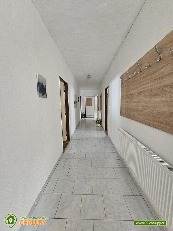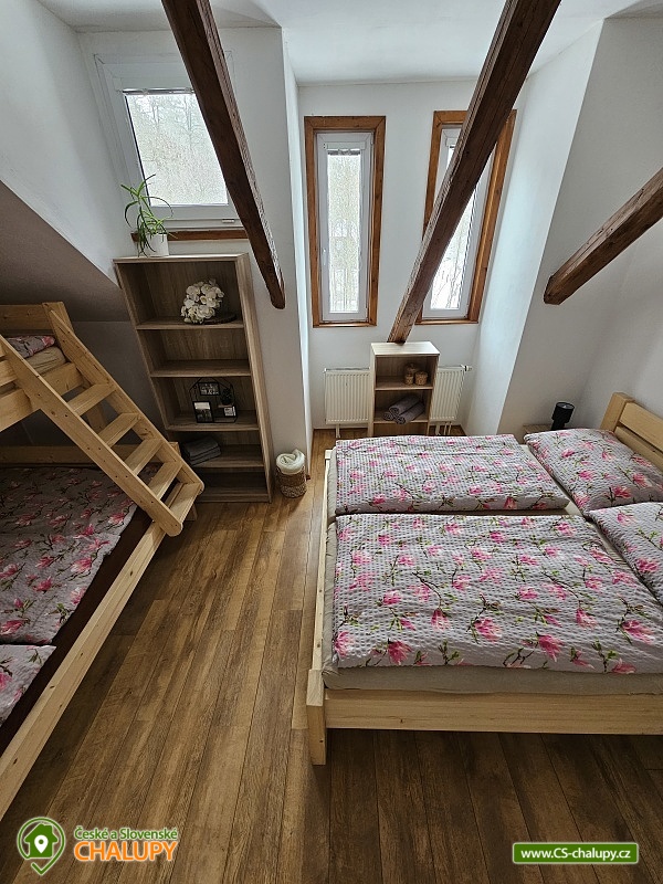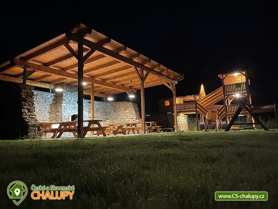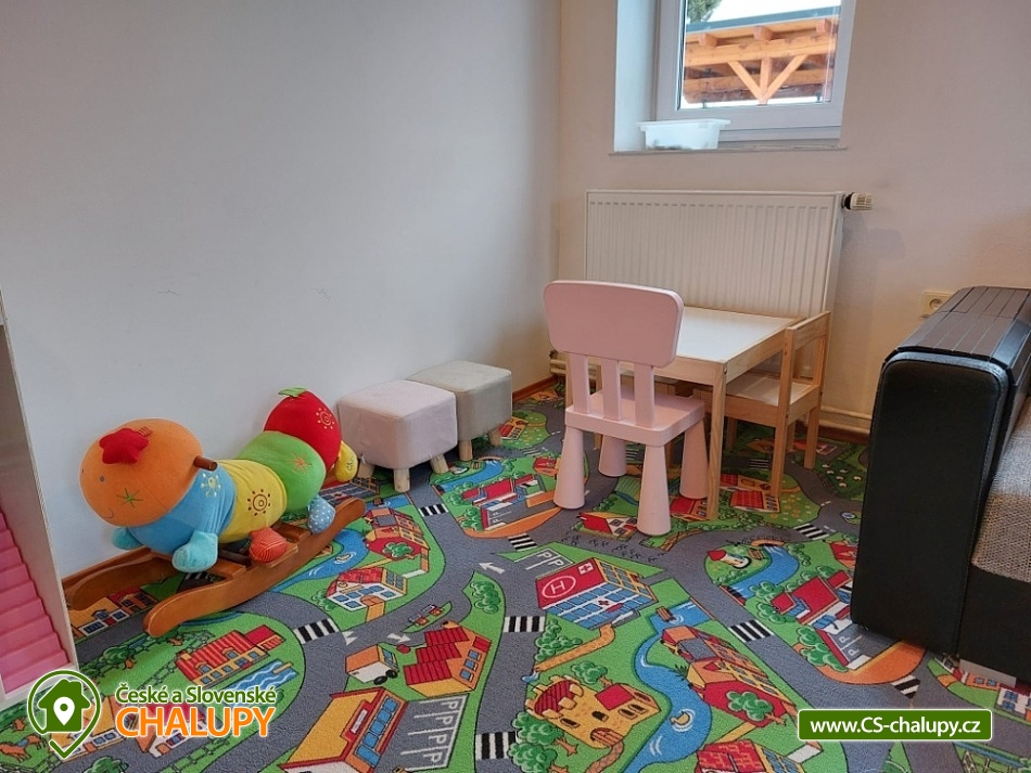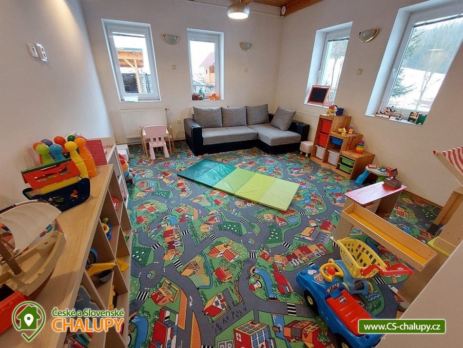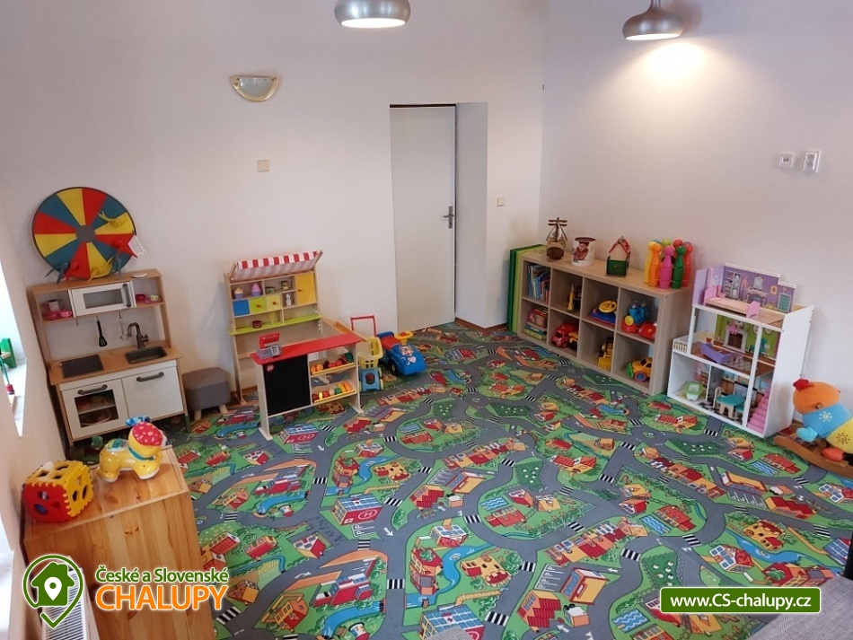 Chalupa s vyhřívaným bazénem a wellness na pomezí Jeseníků a Orlických hor, poloha nedaleko rozhledny Suchý Vrch a areálu Buková Hora na Dolní Moravě. Chalupa nabízí 10 neprůchozích pokojů, max kapacita až 44 osob, každý pokoj s vlastním sociálním zařízením. K posezení slouží velká společenská místnost s barem, plně vybavenou kuchyň, dětskou hernu, ping-pong a stolní fotbálek. Připojení na Wi-Fi je samozřejmostí. Kolem chalupy je rozlehlá oplocená zahrada s velkou pergolou s posezením, grilem a ohništěm. Pro děti je na zahradě k dispozici domeček, který je večer osvětlený, s prolézačkami, tunelem, skluzavkou, houpačkami, lezeckou stěnou a pískovištěm. Děti si mohou zaskákat na velké trampolíně, v letních měsících se pak osvěžit ve vyhřívaném bazénu se zastřešením a slanou vodou. K dispozici jsou také branky na fotbal. V zimních měsících je pak pro vás na ohřátí připravený dřevem vyhřívaný sud s vířivkou pro 6 až 8 osob a wellness místnost se saunou či ochlazovací kádí. Myslíme i na ty nejmenší - Abychom Vám pobyt s rodinou co nejvíce zpříjemnili, jsou Vám k dispozici dětské jídelní židličky, dětské jídelní soupravy, dětská cestovní postýlka (povlečení vlastní), dětská prkénka a nočníky a v neposlední řadě také plně vybavená dětská herna. K dispozici jsou branky na fotbal, stolní fotbálek či venkovní hřiště s domečkem. Samozřejmě zde nechybí ani pračka, která je Vám k dispozici. Ještě lepší relaxaci na vaší dovolené Vám zpříjemní koupací sud s vířivkou. Sud je vyhřívaný dřevem a je osvětlený. Je vybaven držáky na nápoje. Zálibu v něm určitě najdou i Vaše malé ratolesti. V přízemí chaty je pro Vás připravena vybavená společenská místnost. Najdete zde místo k odpočinku u TV, či posezení u stolů a baru. Nachystána je zde pro Vás pípa, kávovar a výrobník ledu. Dětská herna je umístěna ve vedlejší místnosti k dispozici zde děti mají kuchyňku, obchůdek, stolek se židličkami, dětský stan, tunel, žíněnku, terč na suchý zip, knihy, hračky, atd.. Pro starší pak máme připraven stolní fotbálek, ping-pong a stolní hry. Kuchyně v přízemí je pro Vás vybavena dvěma velkými multifunkčními sporáky, dvěma myčkama, čtyřmi lednicemi s mražákem a velkou vitrínovou lednicí či mikrovlnkou.. K dispozici jsou všechny typy a velikosti hrnců, plechy, pekáče do trouby atd. Nově máme také pizza pec. Těšíme se na Vás u nás.