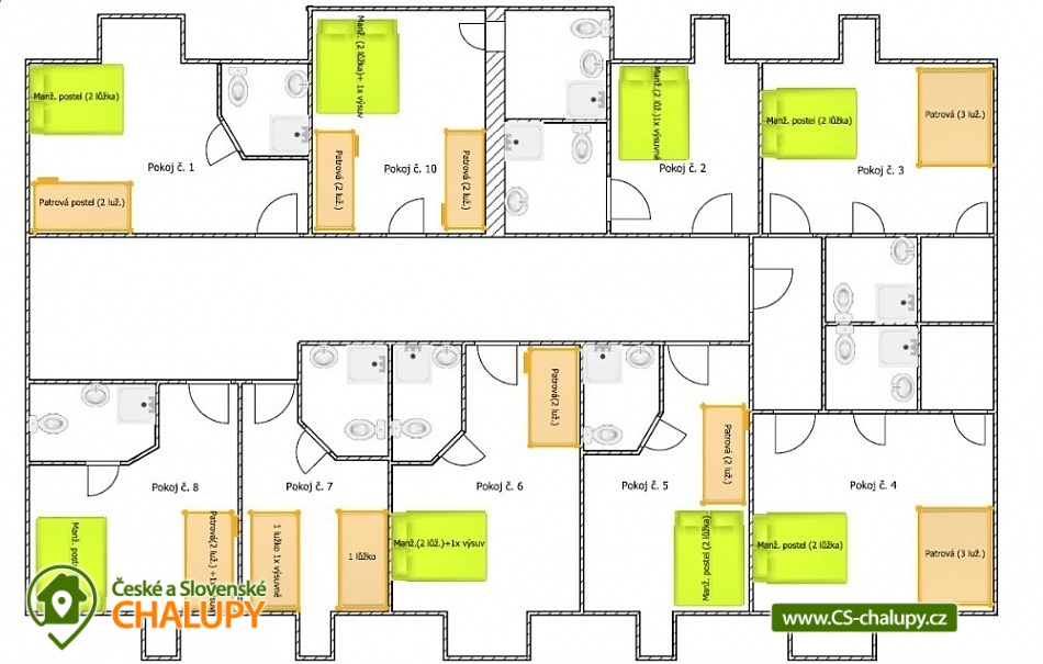 - 10 ložnic: 1x 6, 2x 5, 3x 4, 2x 4+1, 2x 2+1