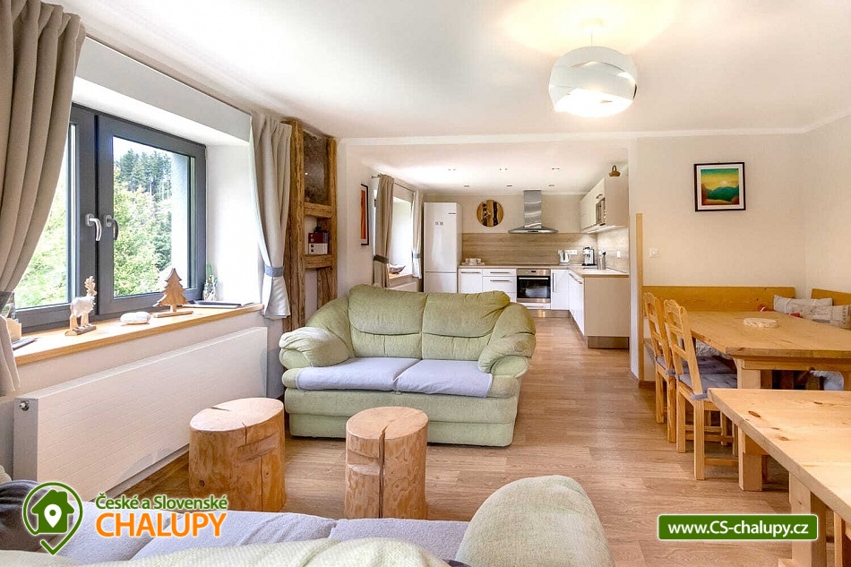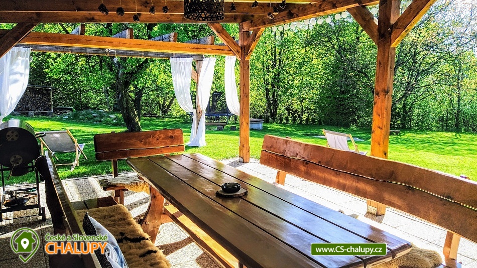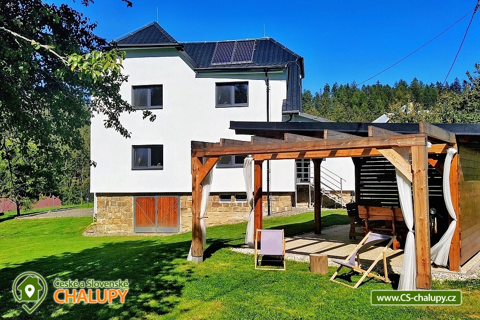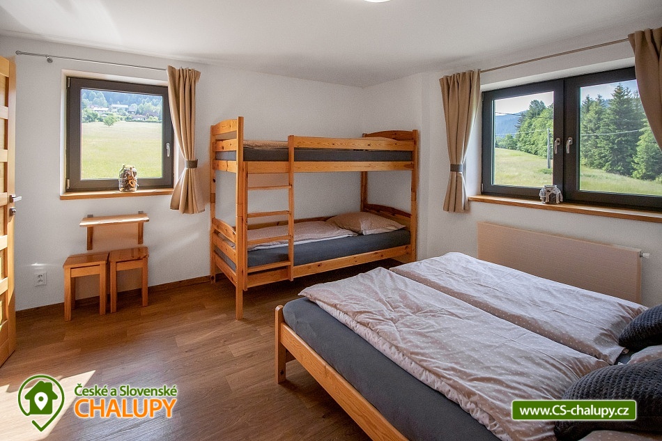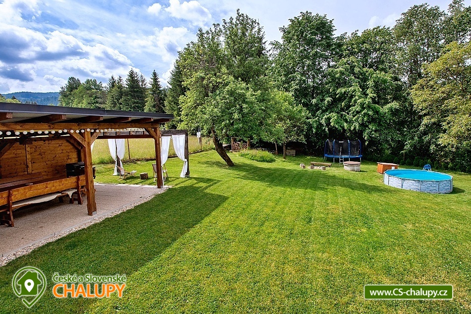 Chalupa s bazénem v blízkosti přehrady na Rožnovské Bečvě, poloha nedaleko areálu Rališka v Beskydech. Kapacita chalupy je až 16 osob ve 4 ložnicích. Na zahradě letní nadzemní bazén se slanou vodou. Chalupa disponuje společenskou místností, která je umístěna v přízemí. Obývací místnost je pohodlně propojena s prostornou kuchyní, kde najdete veškeré vybavení. Místnost má dva velké stoly s lavicemi a židlemi, pohovku, televizi s USB portem, WI-FI. Kuchyň je vybavena indukčním sporákem s odsavačem, troubou, myčkou, mikrovlnkou, lednicí, kávovarem na ESE pody, rychlovarnou konvicí. K dispozici je nádobí, hrnce, tyčový mixér, sendwičovač a ostatní kuchyňské potřeby. Vedle kuchyně se nachází komůrka s policemi pro uložení veškerých potravin. Dále je v přízemí koupelna se sprchovým koutem, umyvadlem a WC. Veranda v přízemí nabízí ještě jedno samostatné WC s umyvadlem. V přízemí je také jedna ložnice se 4 lůžky, tedy s manželkou postelí a poschoďovou postelí, skříní, stolkem a 2 stoličkami. V 1.patře se nachází další 3 čtyřlůžkové ložnice, vybavené stejně jako ložnice v přízemí. Také zde najdete jednu koupelnu se sprchovým koutem, umyvadlem a pračkou a další samostatné WC. Na chodbě je pro malé děti hrací minikoutek. Pro vaše nejmenší ratolesti je připravena dřevěná jídelní židlička, nočník, stolička, dětské talíře a další. V suterénu máme prostorný stojan na kola a lyže. Vytápění domu je zajištěno tepelným čerpadlem doplněným solárními panely určenými pro ohřev vody. Na zahradě najdete prostornou pergolu (6×4 m) s posezením. Pergola je vybavena lavicemi se stolem, grilem a elektrickou přípojkou. Opékat můžete také u ohniště. Na zahradě najdete koutek pro děti, kde je dřevěný domeček se skluzavkou, hračkami, pískovištěm a houpačkou. Dále venkovní badminton s raketami a houpací síť. Kouzelná příroda Beskyd nabízí vše pro tolik oblíbenou pěší turistiku. Malebné hory, lesy a údolí řeky Bečvy jsou ideálním místem pro výlety do okolí jak pro rodiny s dětmi, tak pro milovníky horské turistiky nebo sběratele hub. Vyhlídková stezka na Pustevnách se nachází cca 250 metrů od horní stanice lanovky směrem k vrcholu Tanečnica. Vrcholem stezky je 22 metrů vysoká věž, na které se můžete těšit také na skleněnou vyhlídku.
