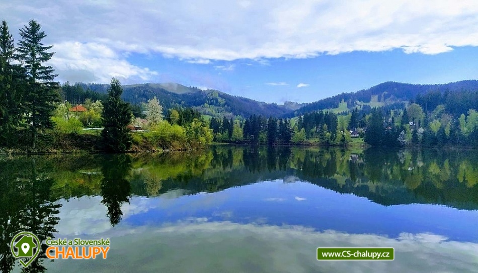 „Chalupa s bazénem u přehrady - Rožnovská Bečva - CHKO Beskydy.“